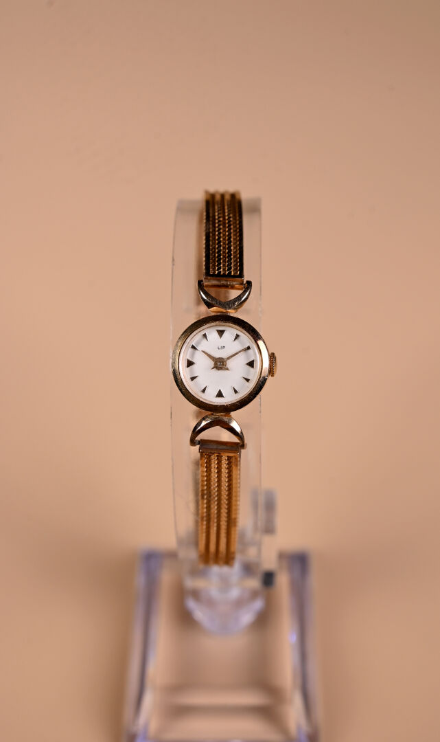 LIP. Montre bracelet de dame tout or jaune 18K 750/1000e, cadran signé (usures et rayures). Poids brut. : 19,60 g.