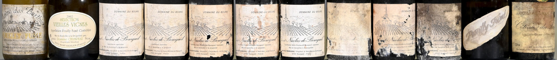8 bouteilles, Saint-Nicolas-de-Bourgueil, Domaine du Bourg, 1983 (2), 1985 (3) et millésime ? (2). En l’état.