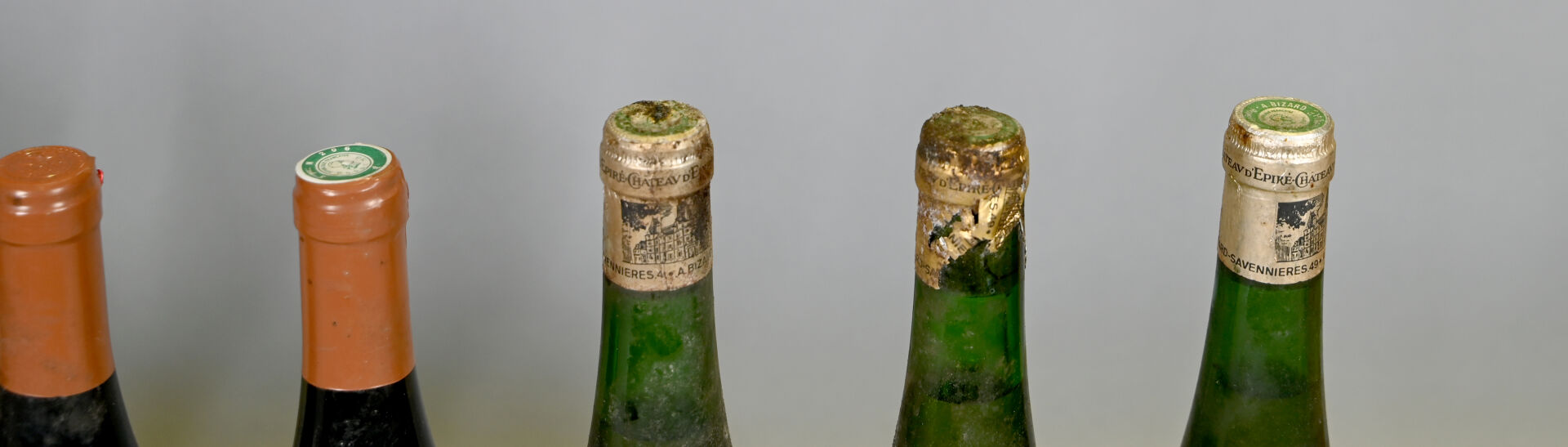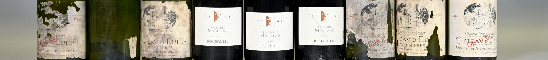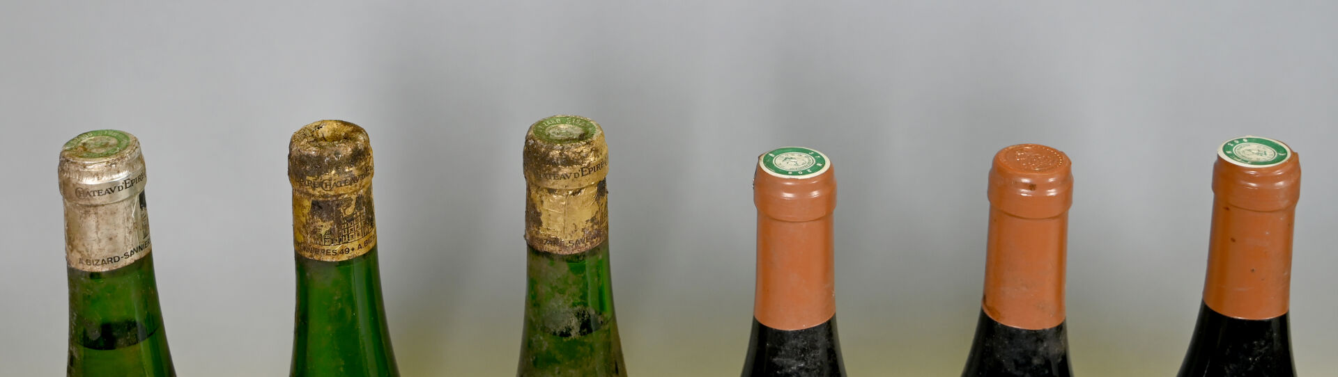 6 bouteilles, Savennières, Château d’Epiré, 1984 (dont une bouteille supposée de ce domaine et dont trois bouteilles au moins sont Demi-Sec). En l’état.