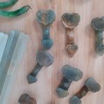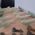 Lot comprenant 10 boucles d’oreilles en métal et jadeite, 18 baguettes en albatre, 12 repose-couverts en jadeite, 12 bijoux et objets dont en jadeite ou corail rouge et 12 figurines représentant un oiseau dont en jadeite.
