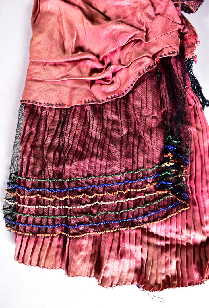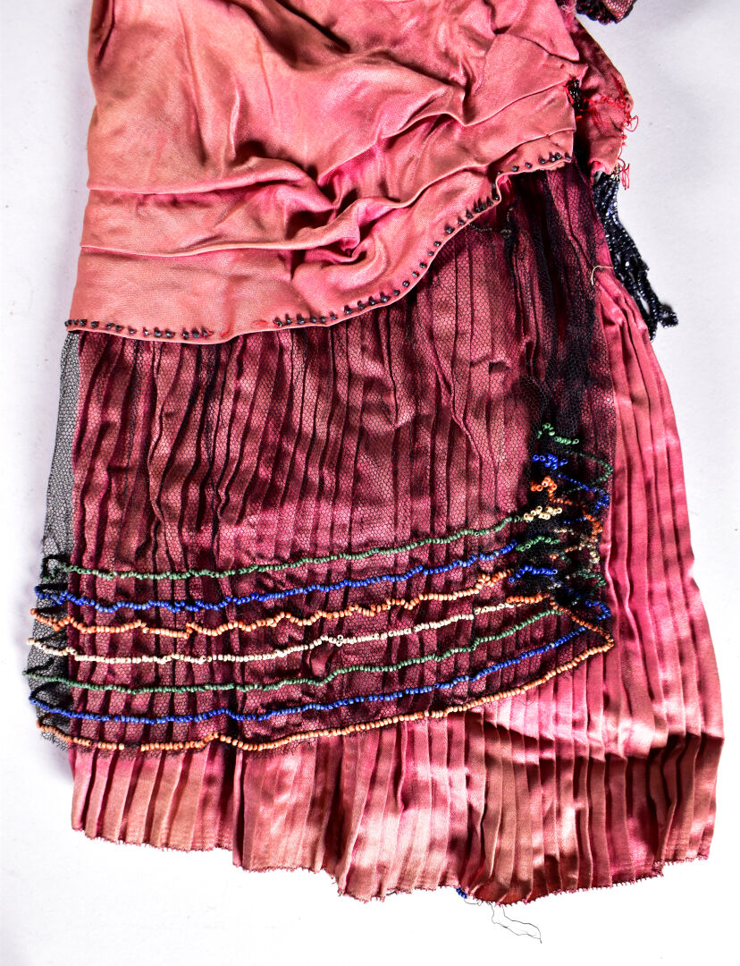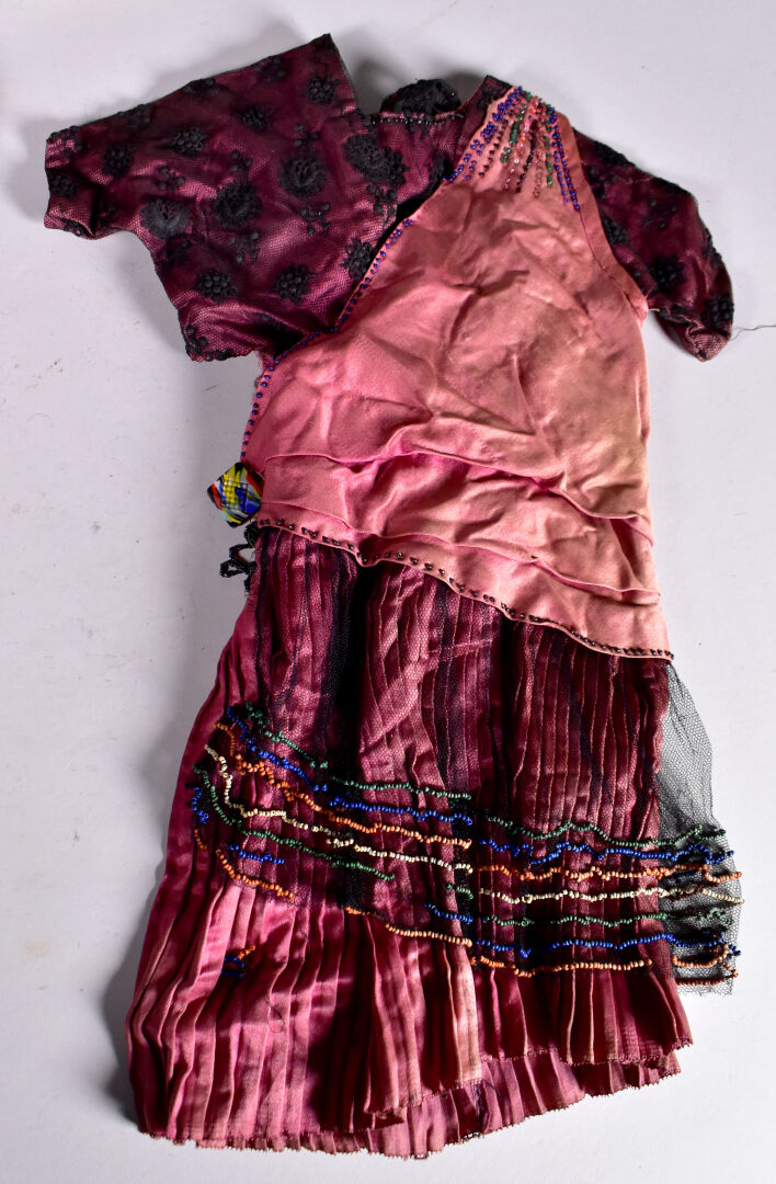 Lot comprenant 2 perruques poupées ancienne et une robe ancienne des années 1920