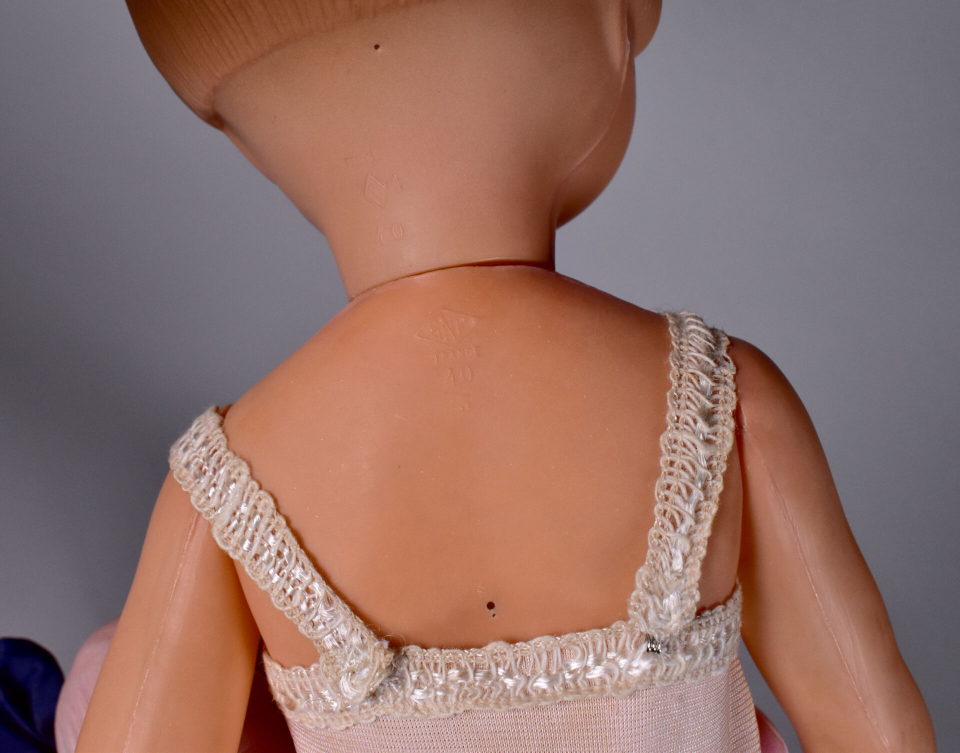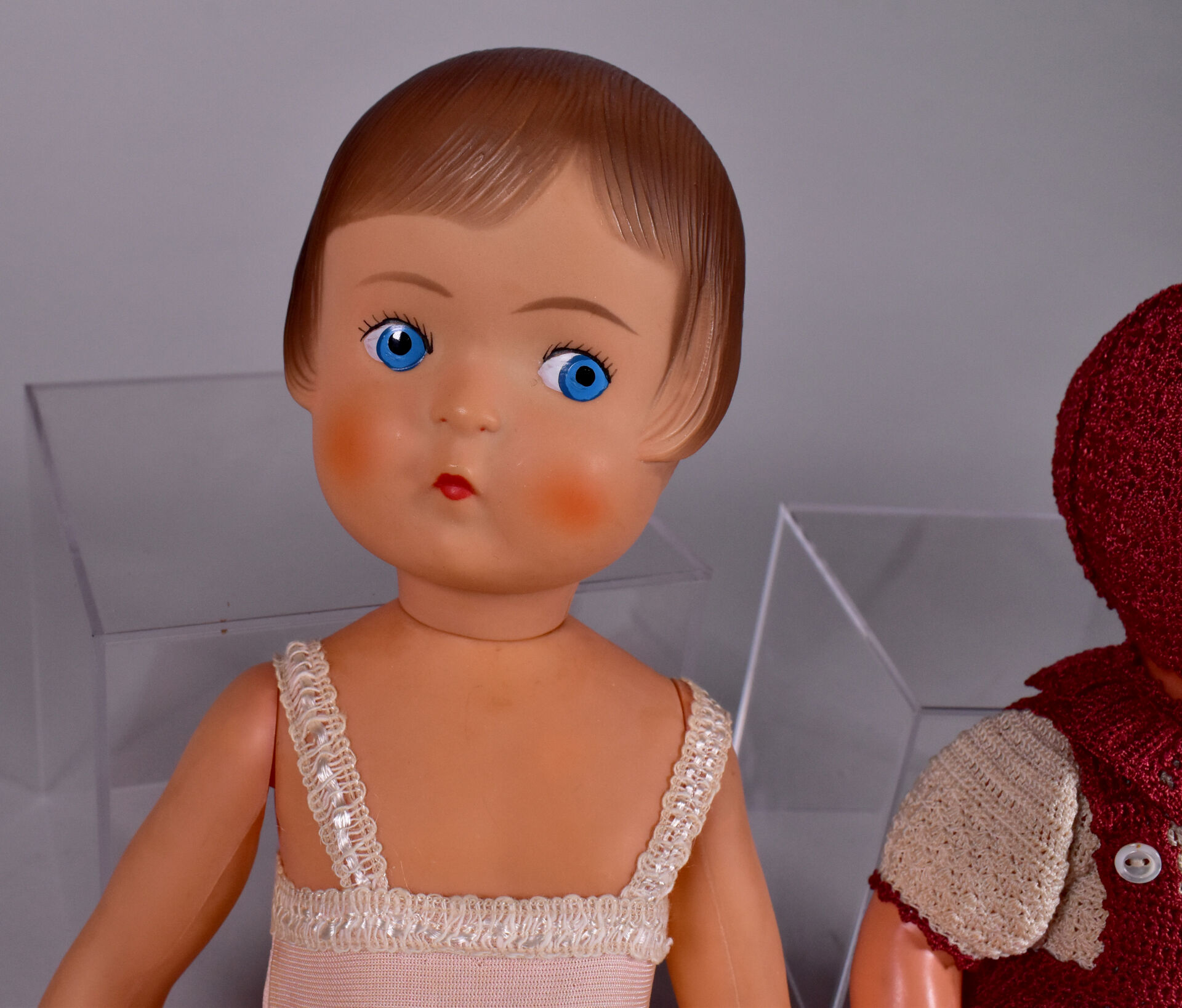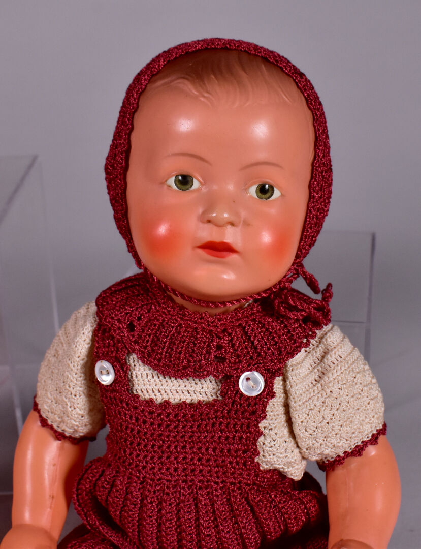 Lot comprenant deux celluloïds anciens : Dominique SIC 40 cm très bel état, Jacky SNF joli costume au crochet 30cm bel état