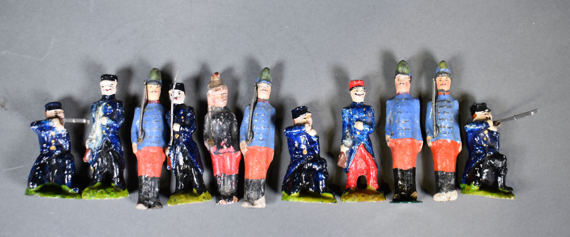 Lot de 11 figurines en composition Française SFBJ, en état d’usage et avec trace de repeints.