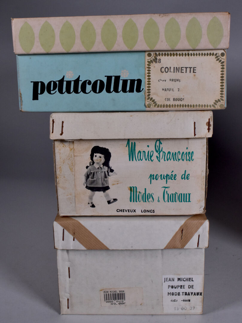 Lot de 3 boites de poupées vide dont Marie Françoise, Jean Michel et petit collin