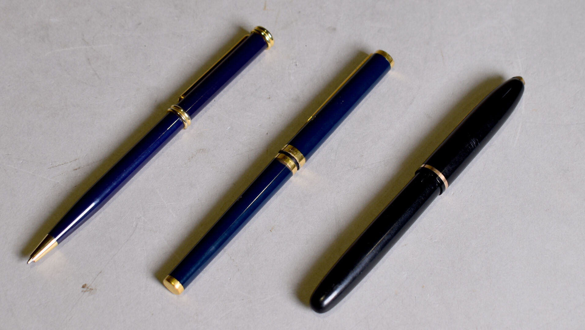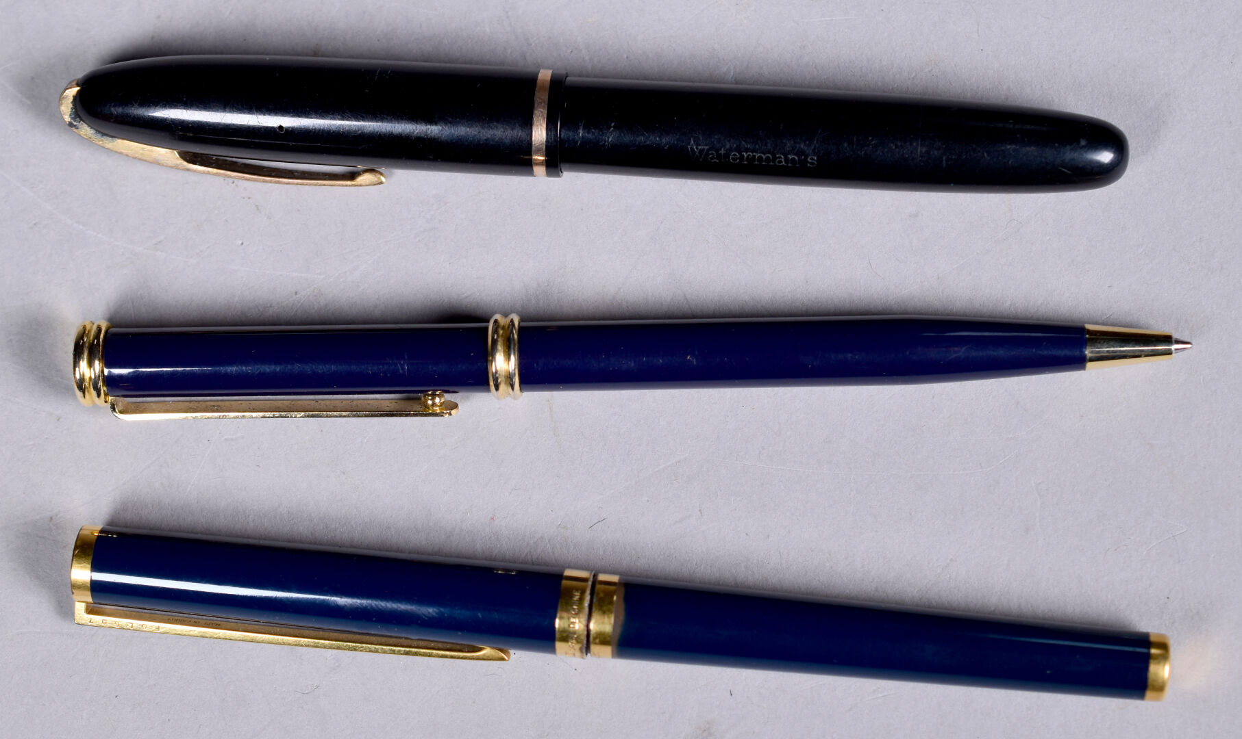 Lot de 3 stylos dont 2 plumes (WATERMANN et DUPONT laque de Chine – plume or 18K 750/1.000) et 1 bille CARVEN. Poids brut : 26g.