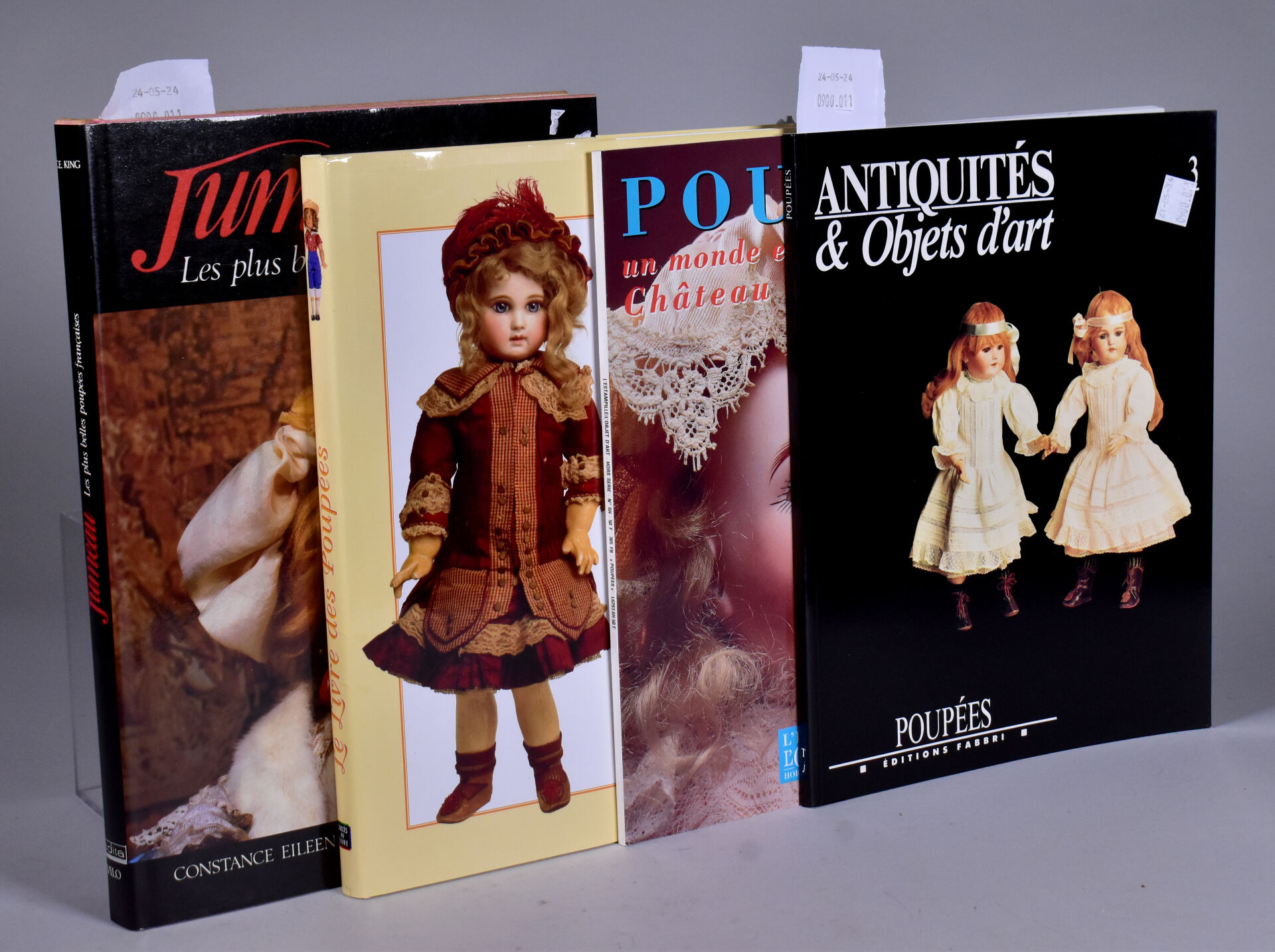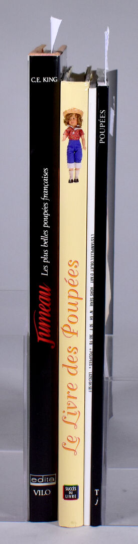 Lot de 4 volumes sur les poupées dont : le livre des poupées de Caroline Good Fellow, jumeau les plus belles poupées françaises Constance King, poupée un monde extraordinaire au château de la poupée, et objets d’art poupée édition Fabri