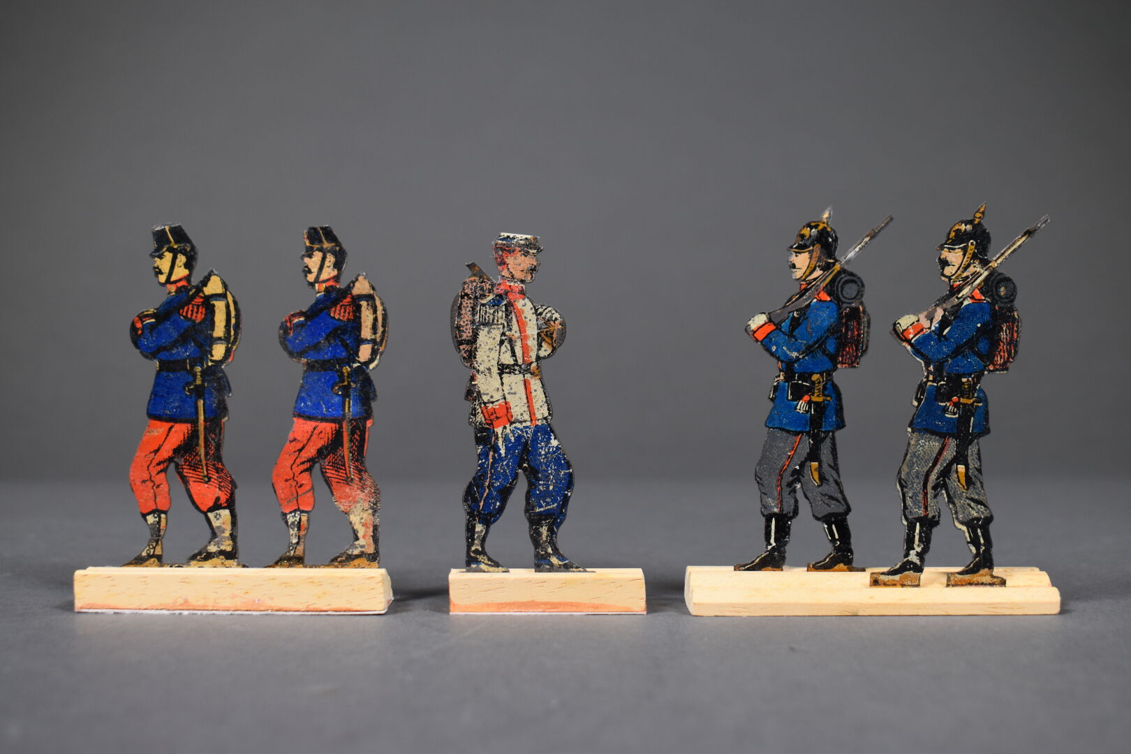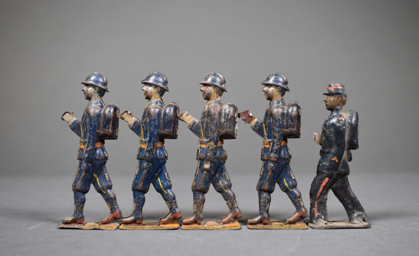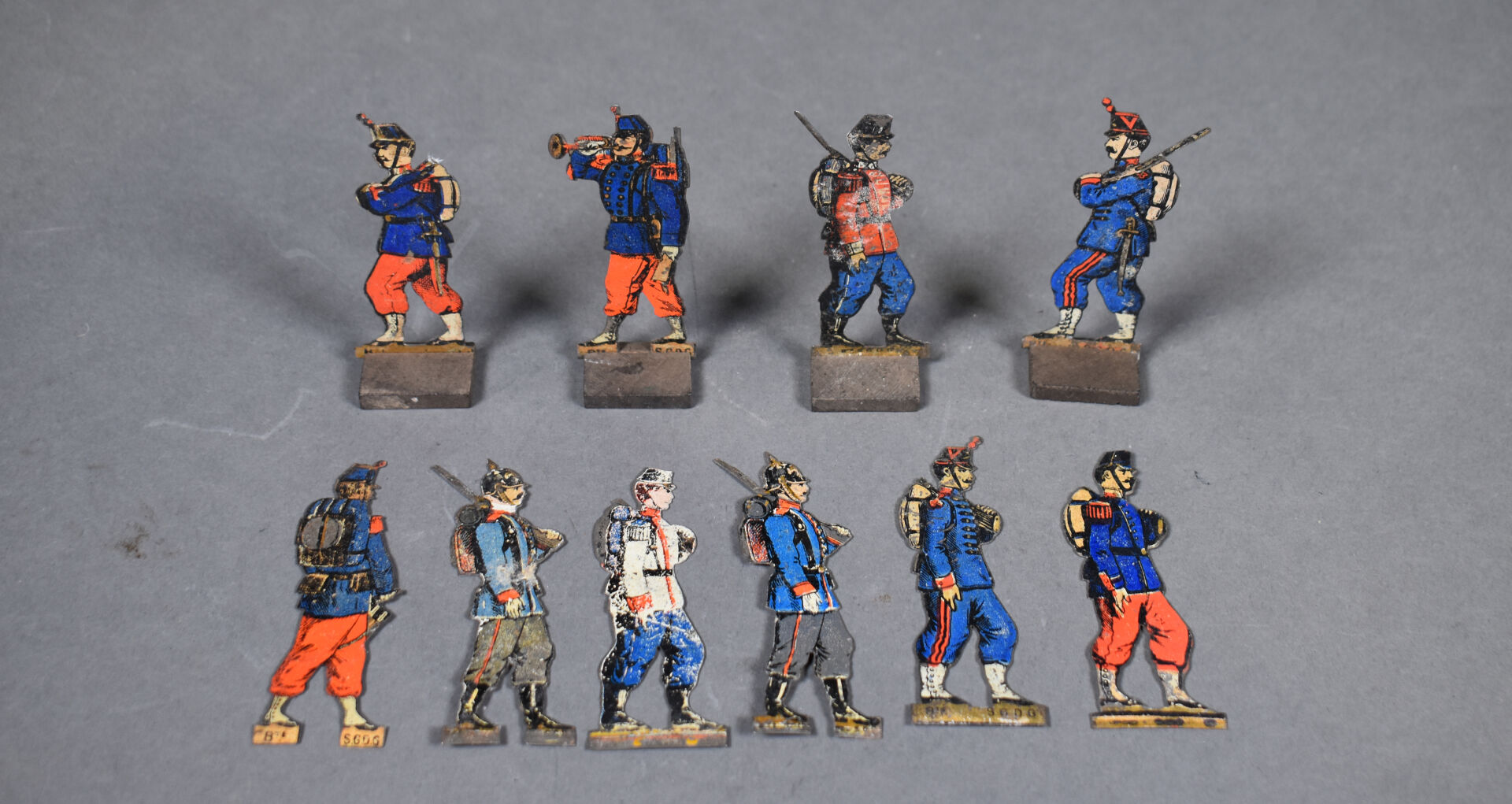 Lot de figurines en tôle plates où demi ronde-bosse de fabrication française dont potier CR etc. 27 pièces dont 3 repeintes.
