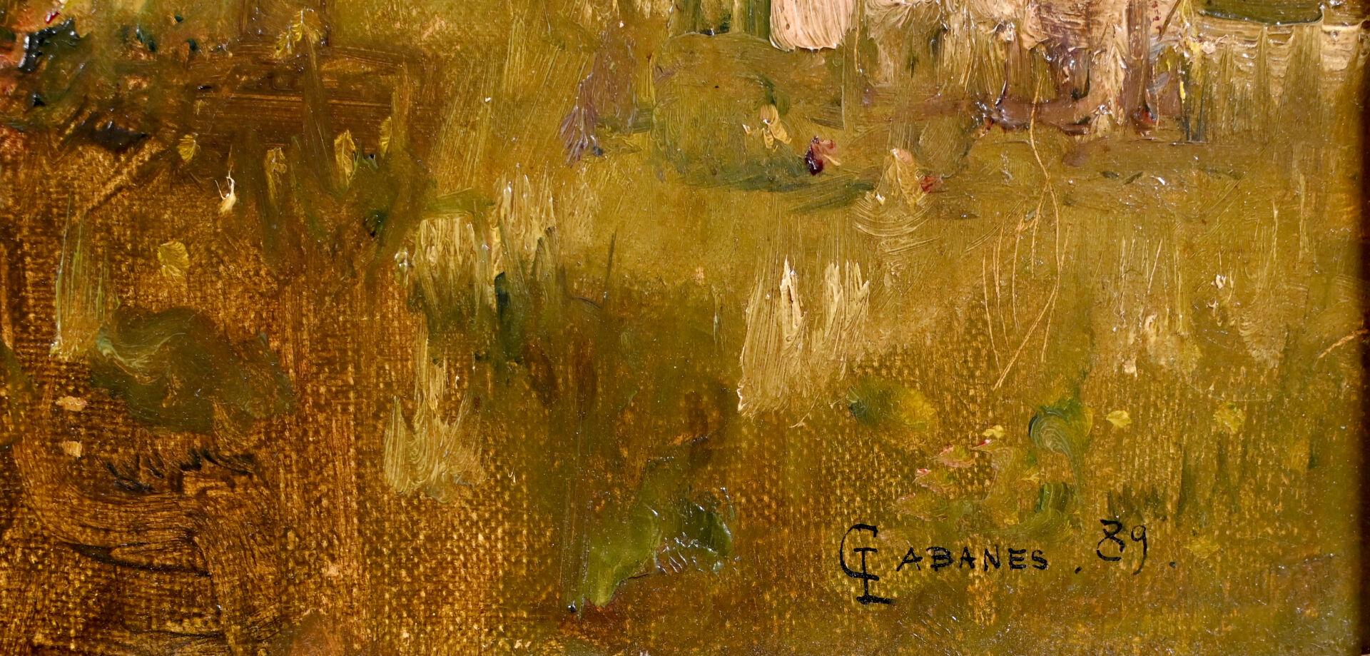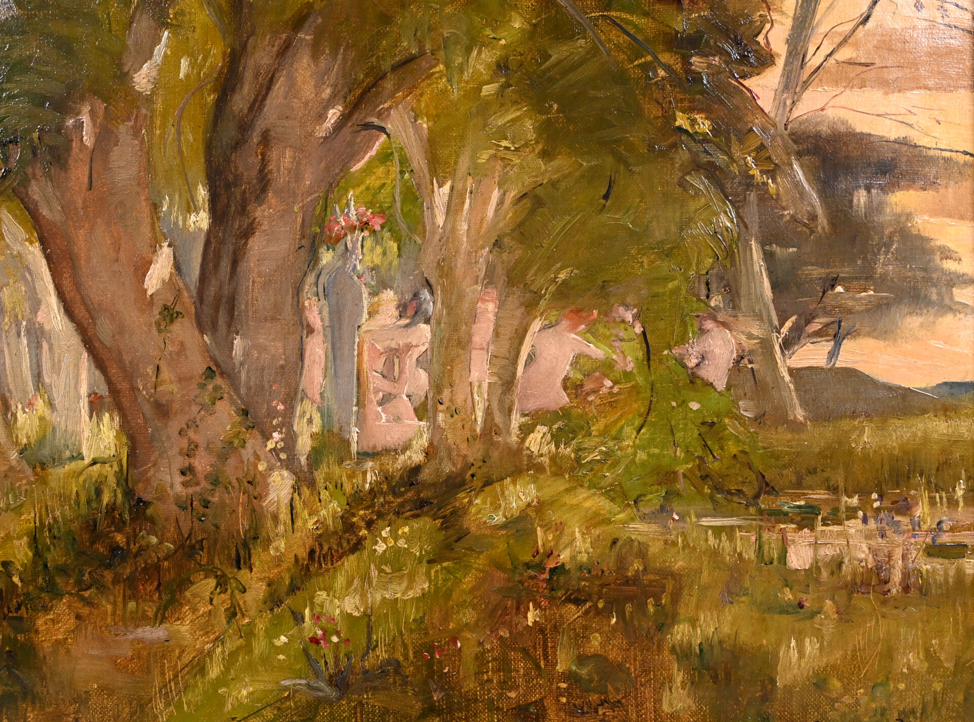 Louis François CABANES (1867-1947). Bacchanale dans les bois. Huile sur toile signée et datée 1889 en bas à droite. 41 x 32,5 cm.