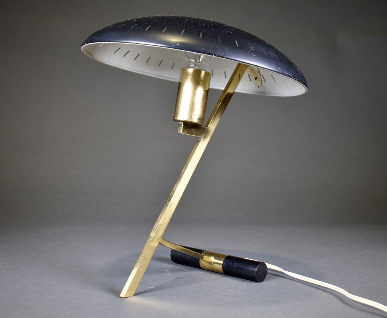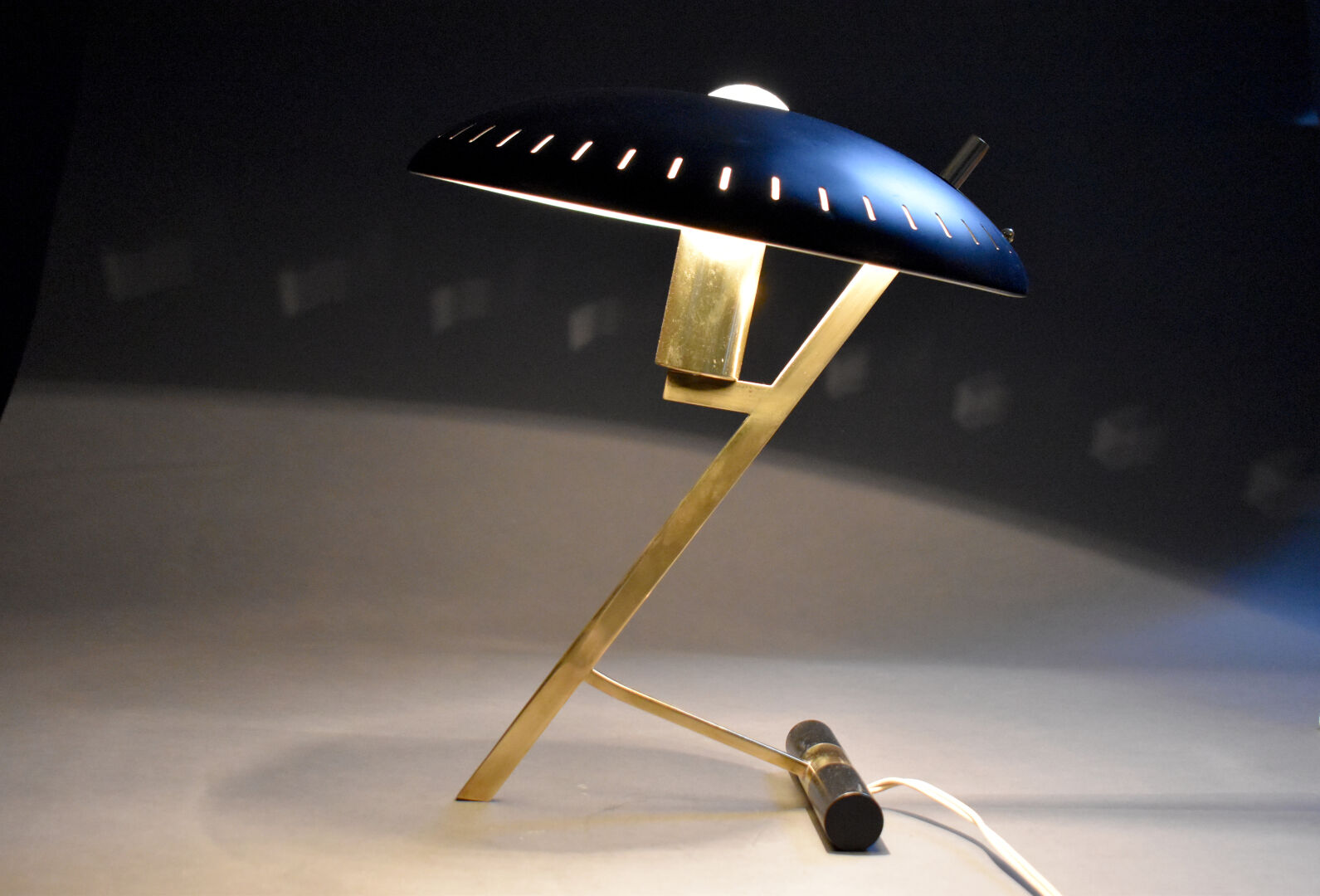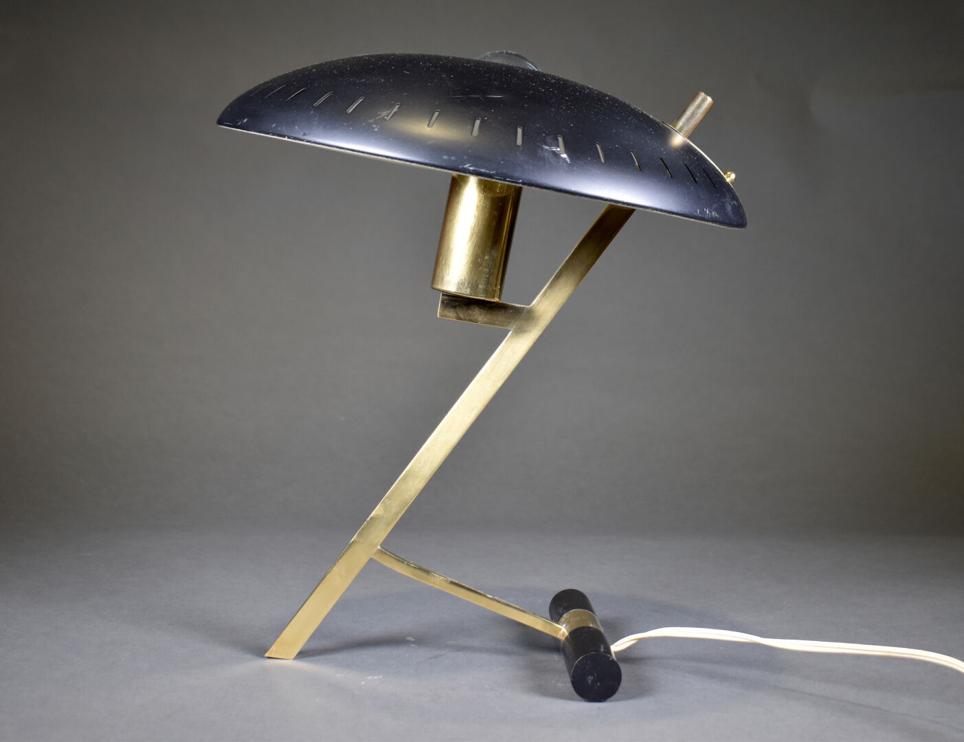 Louis KALFF (1897-1976) pour PHILIPS éditeur. Lampe à poser modèle « Z » en laiton et métal laqué noir (quelques frottements et un petit choc). Haut. : 39 cm.