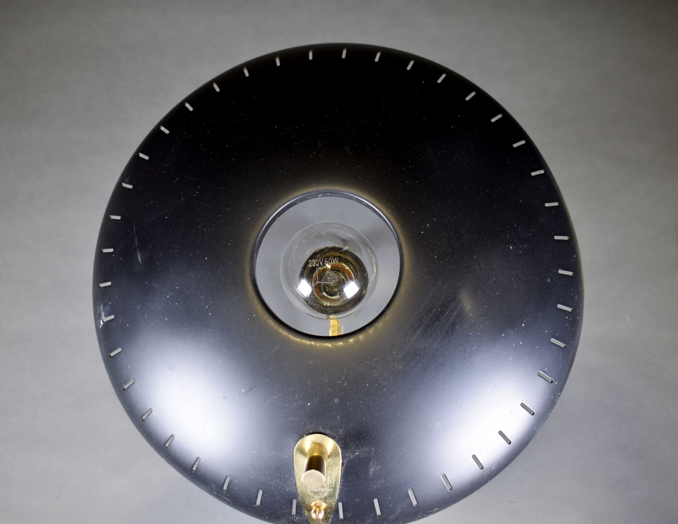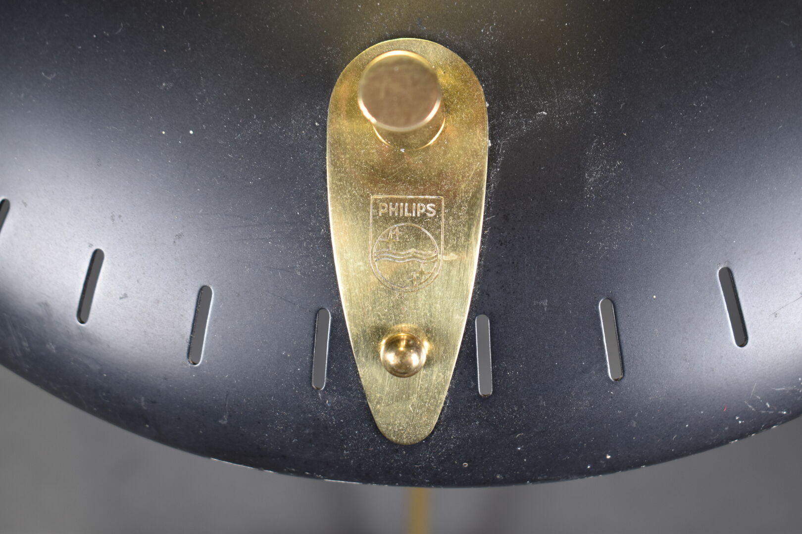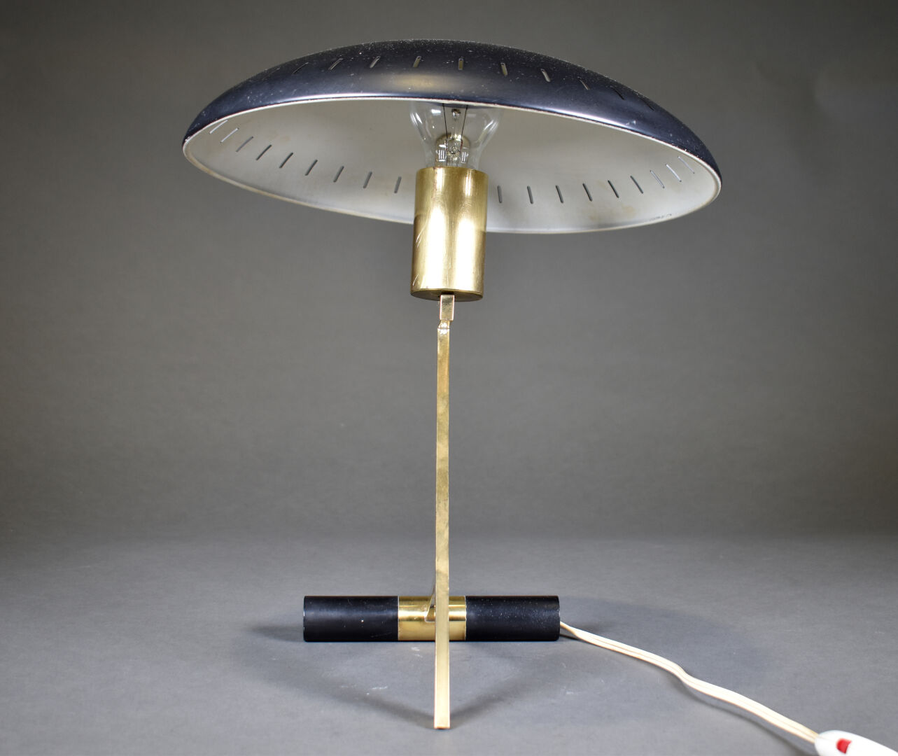 Louis KALFF (1897-1976) pour PHILIPS éditeur. Lampe à poser modèle « Z » en laiton et métal laqué noir (quelques frottements et un petit choc). Haut. : 39 cm.
