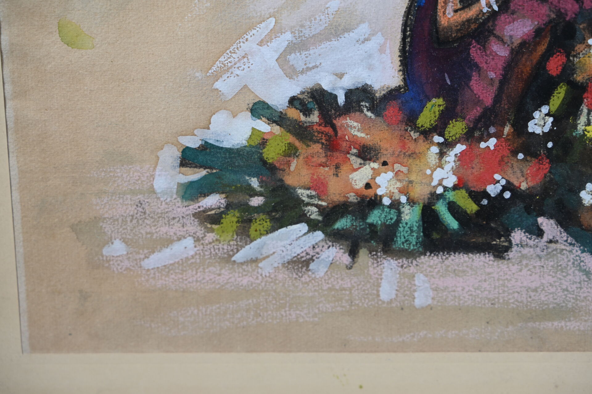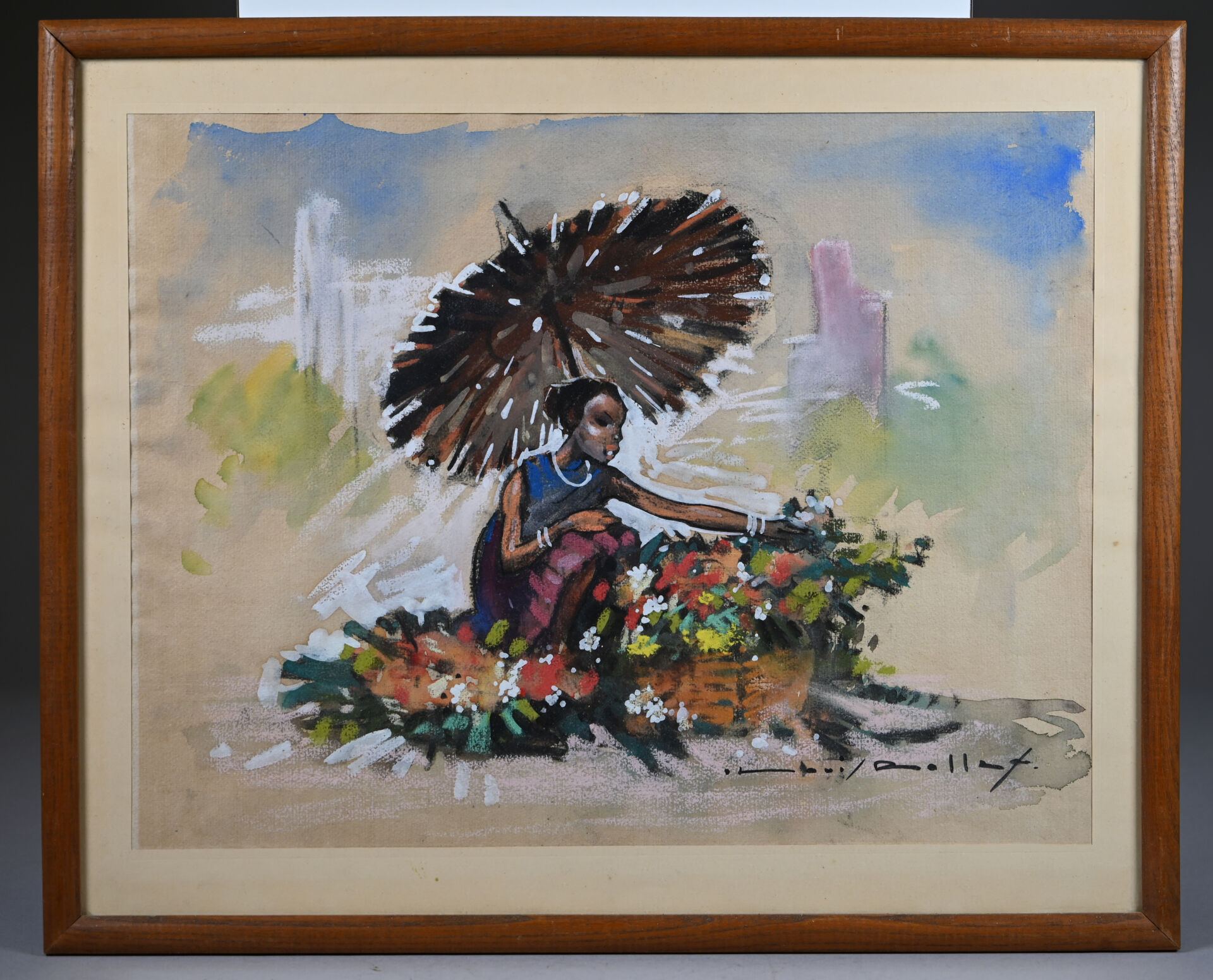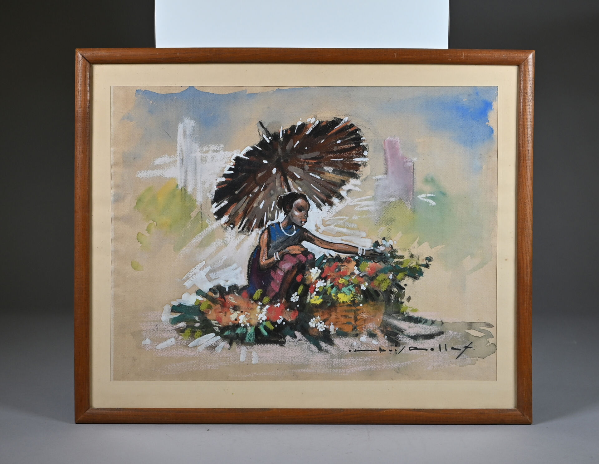 Louis ROLLEY (XXe). Marchande de fleurs (Indochine ?). Technique mixte signée en bas à droite. 35,5 x 45,5 cm.