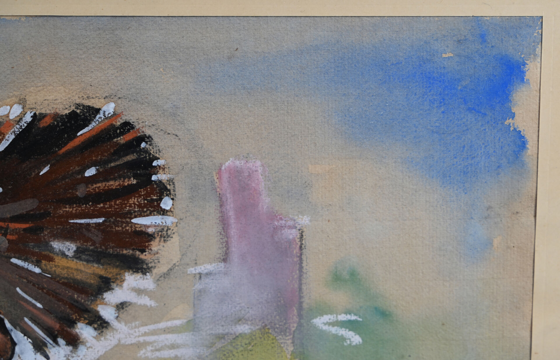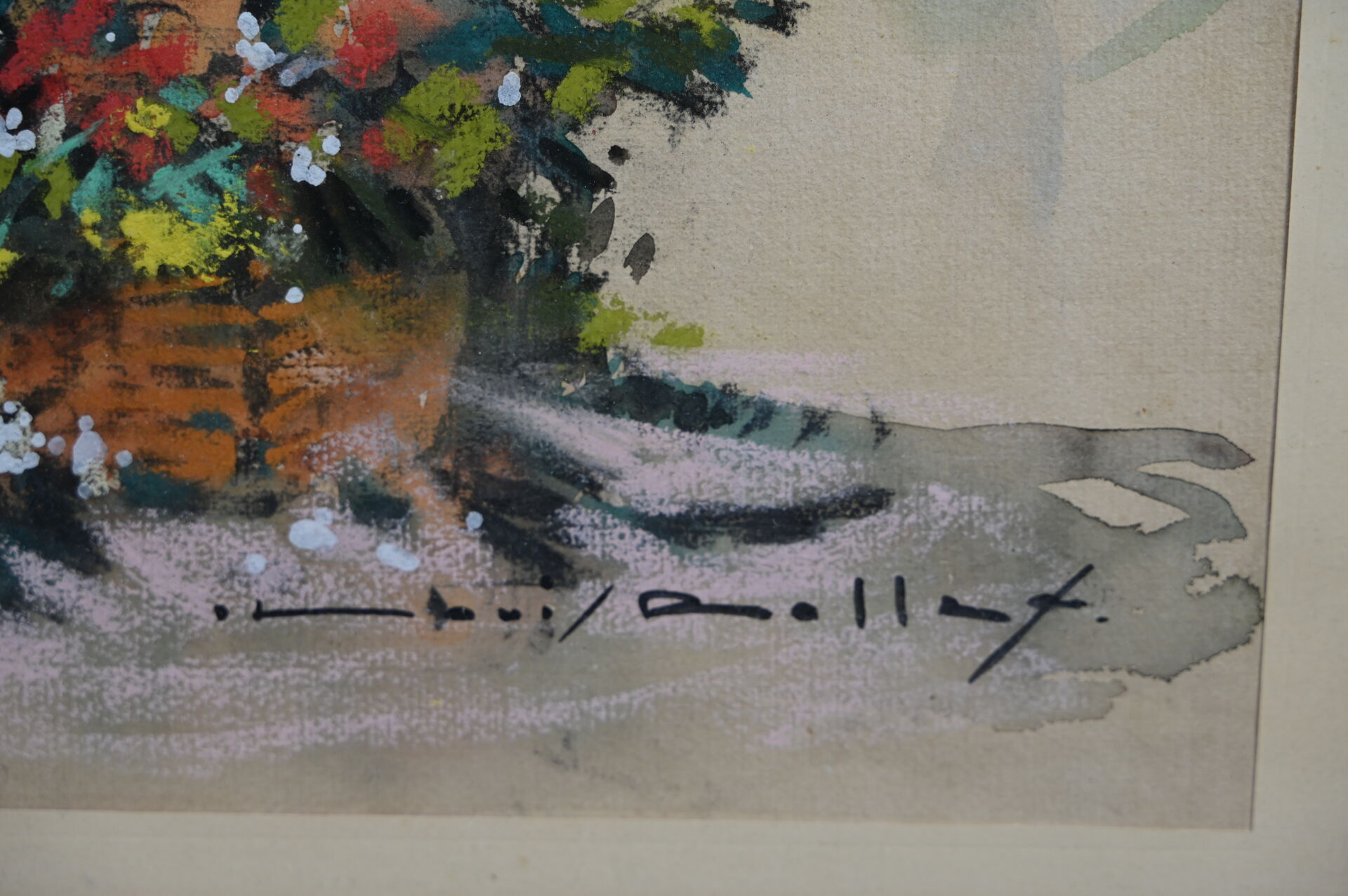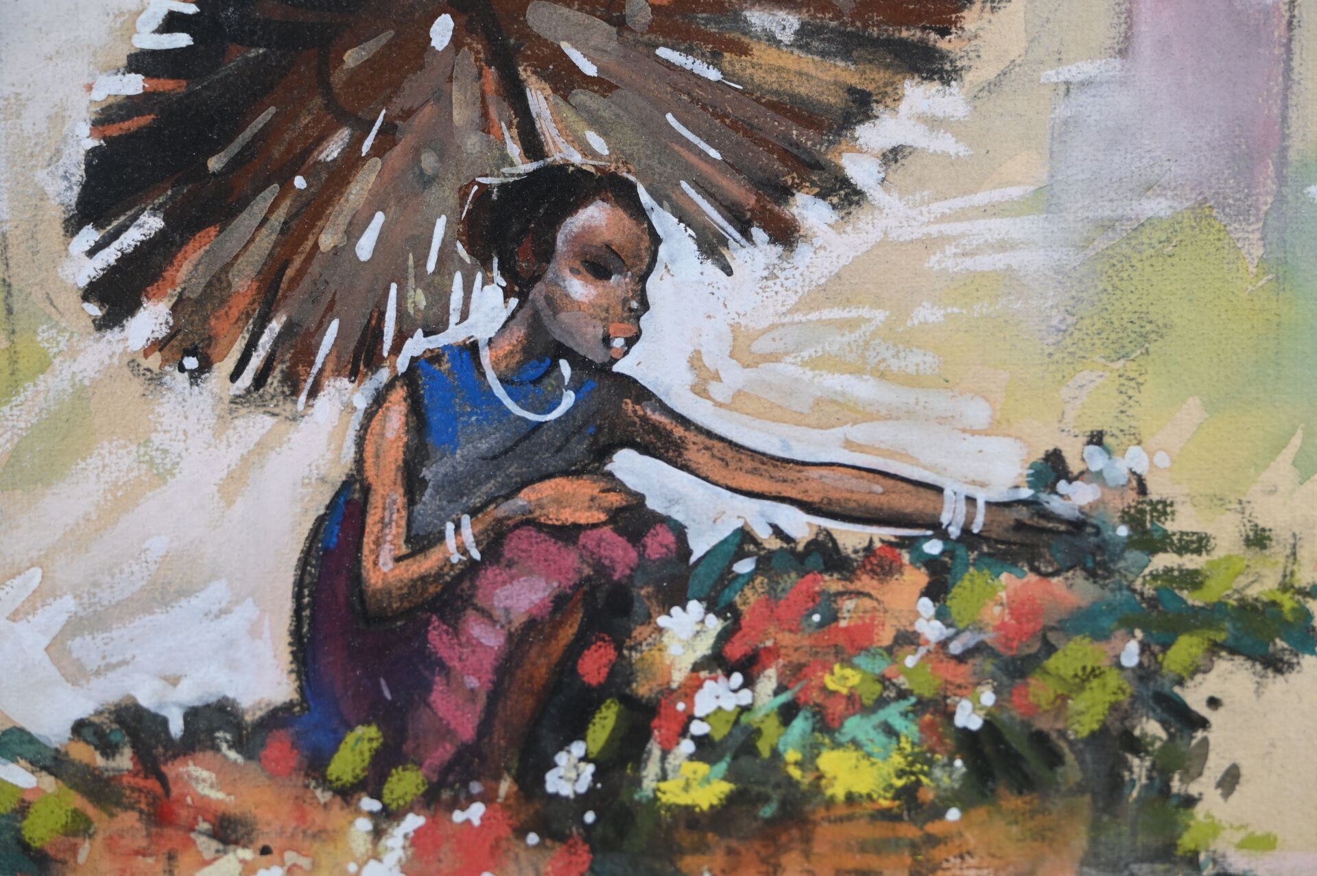 Louis ROLLEY (XXe). Marchande de fleurs (Indochine ?). Technique mixte signée en bas à droite. 35,5 x 45,5 cm.