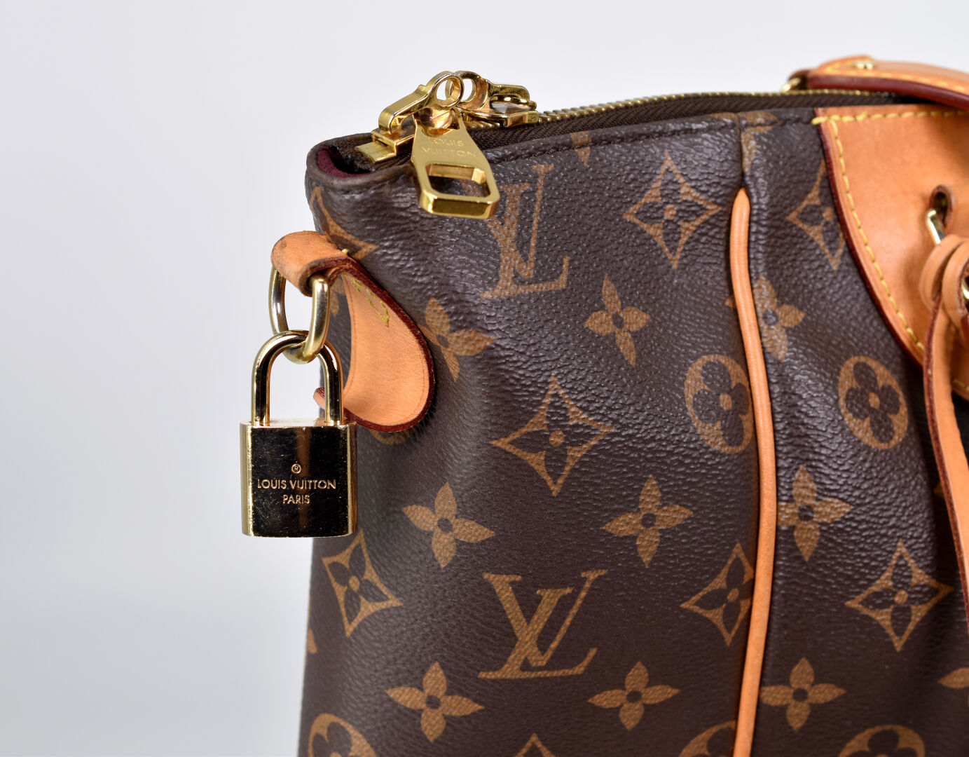 LOUIS VUITTON. Sac à main porté épaule en toile enduite monogrammée et cuir fauve (légères usures). L’intérieur en daim bordeaux (usures, une tache). Avec cadenas, bandoulière, dust bag, carton et sac.