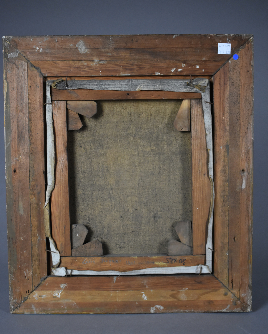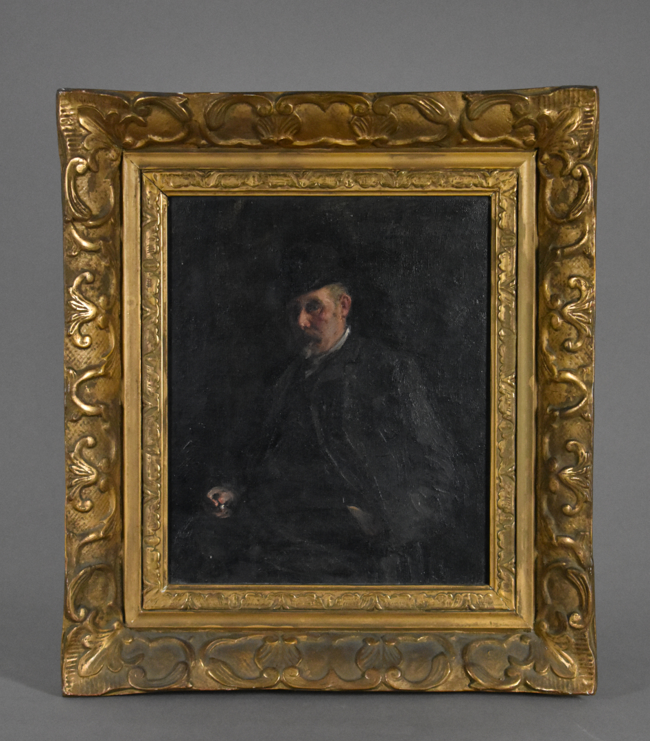 Lucie JACQUART (1882-1956). Portrait d’homme au chapeau melon. Huile sur toile signée et datée 1907 en haut à droite. 30 x 25 cm.