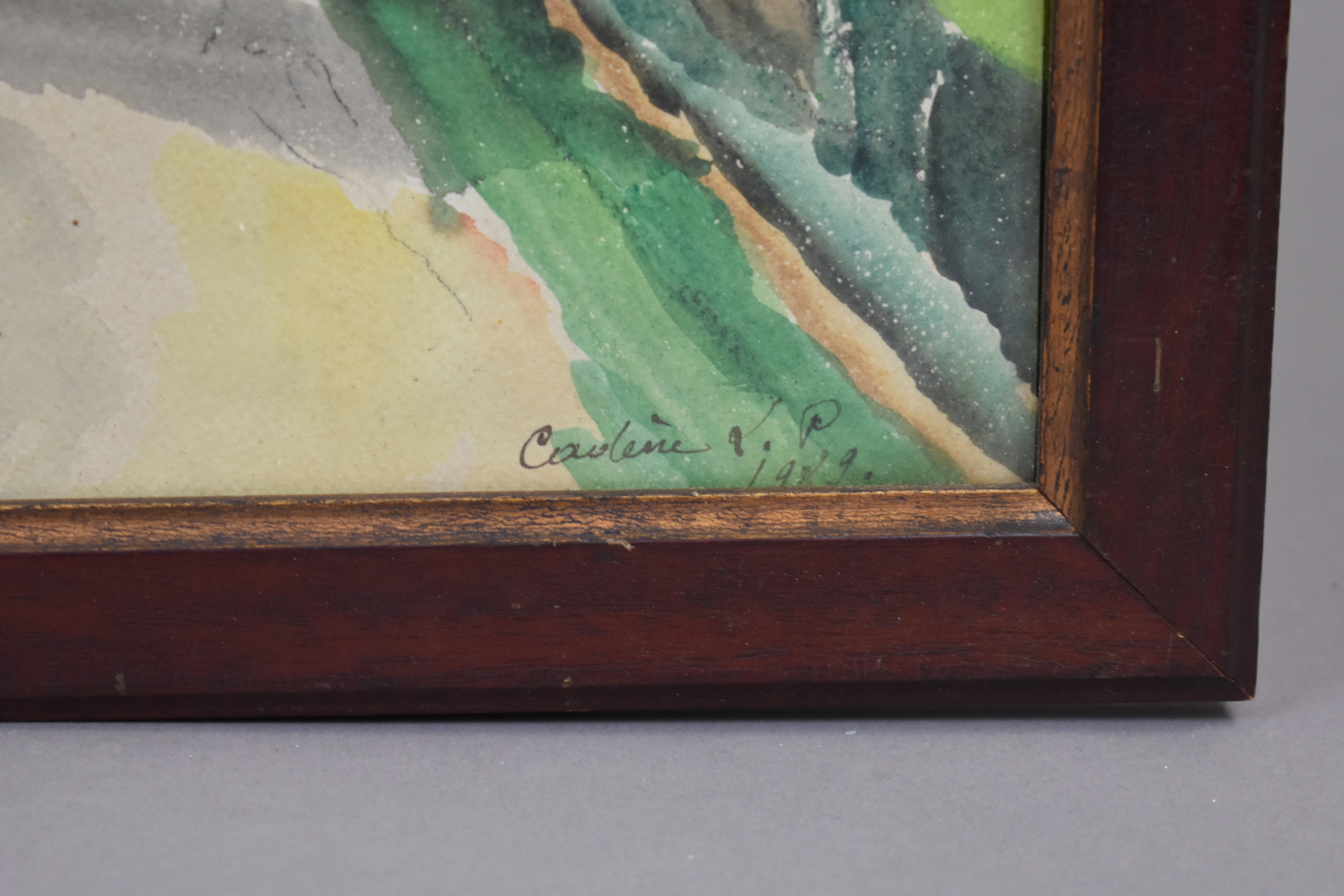 Dessin à l’aquarelle sur papier Montgolfier, signé et daté 1929.