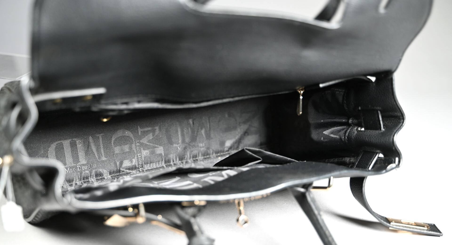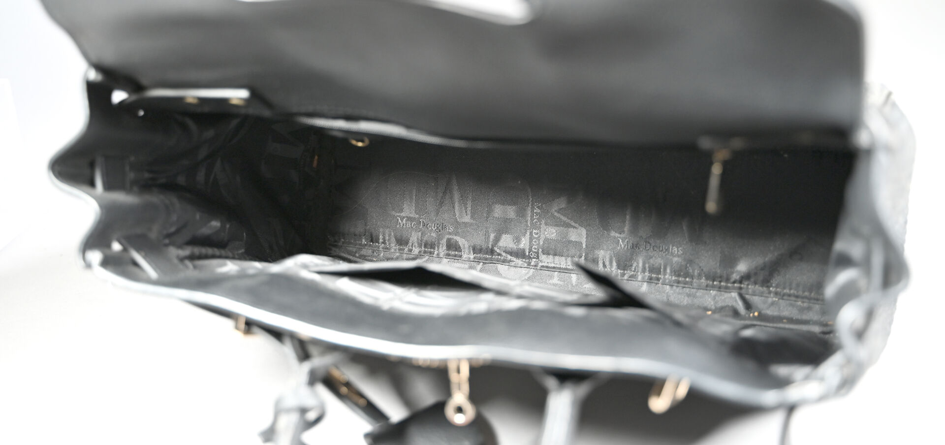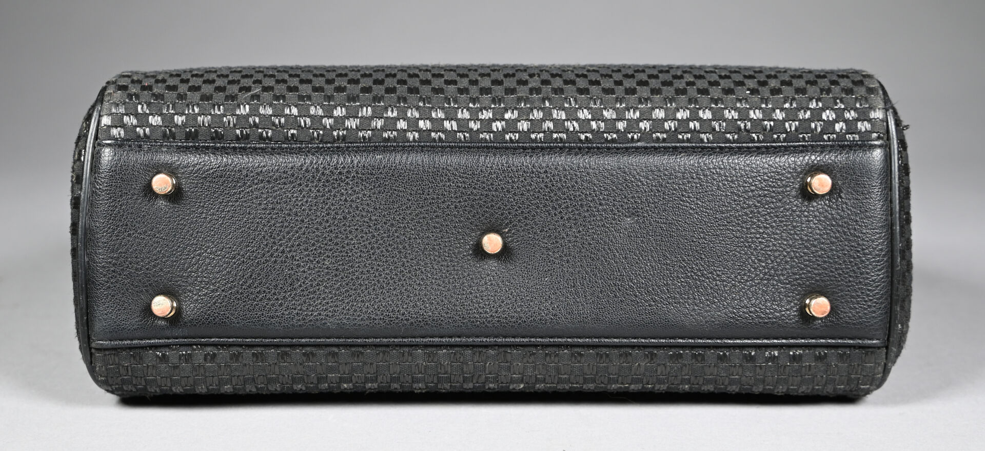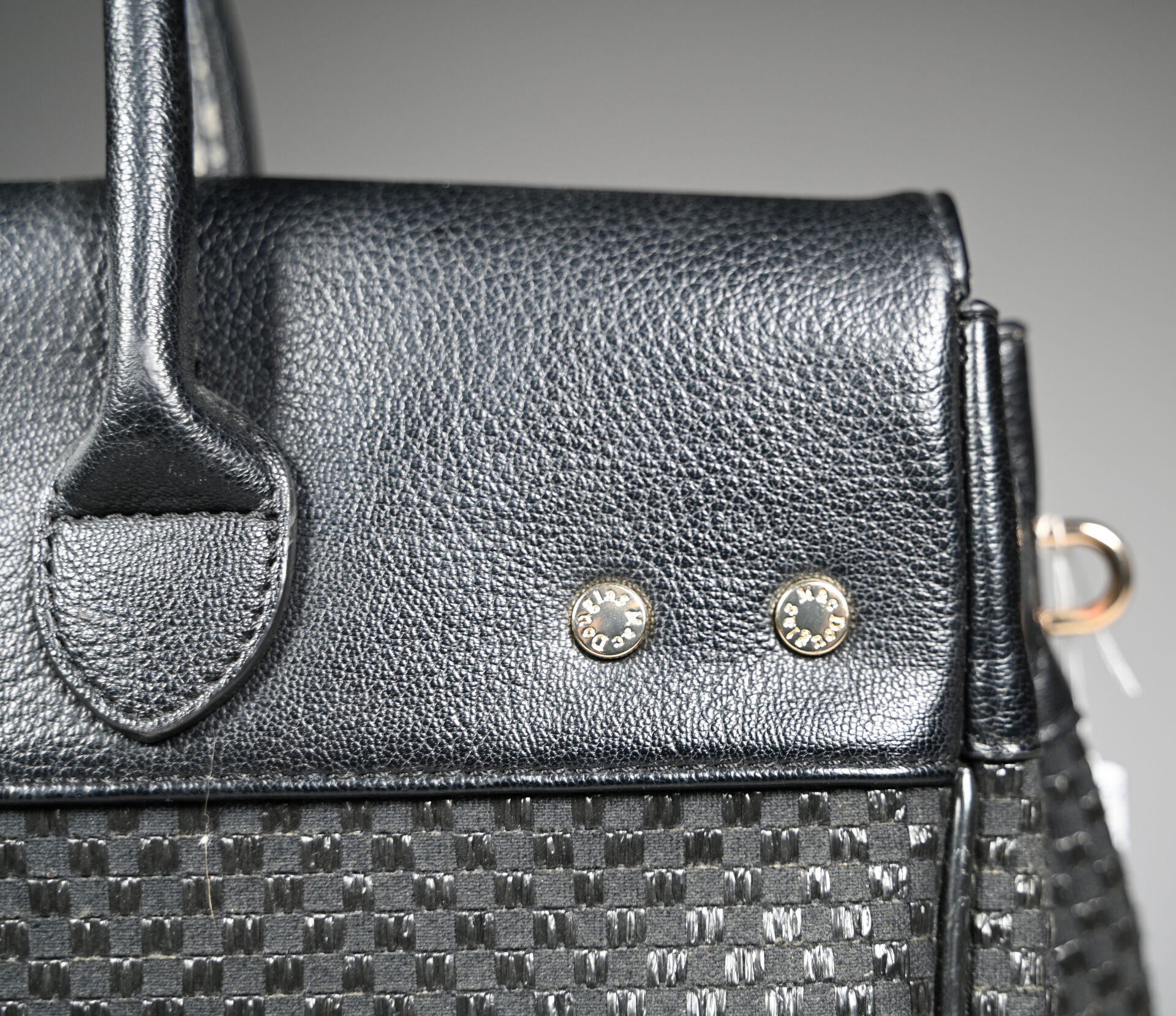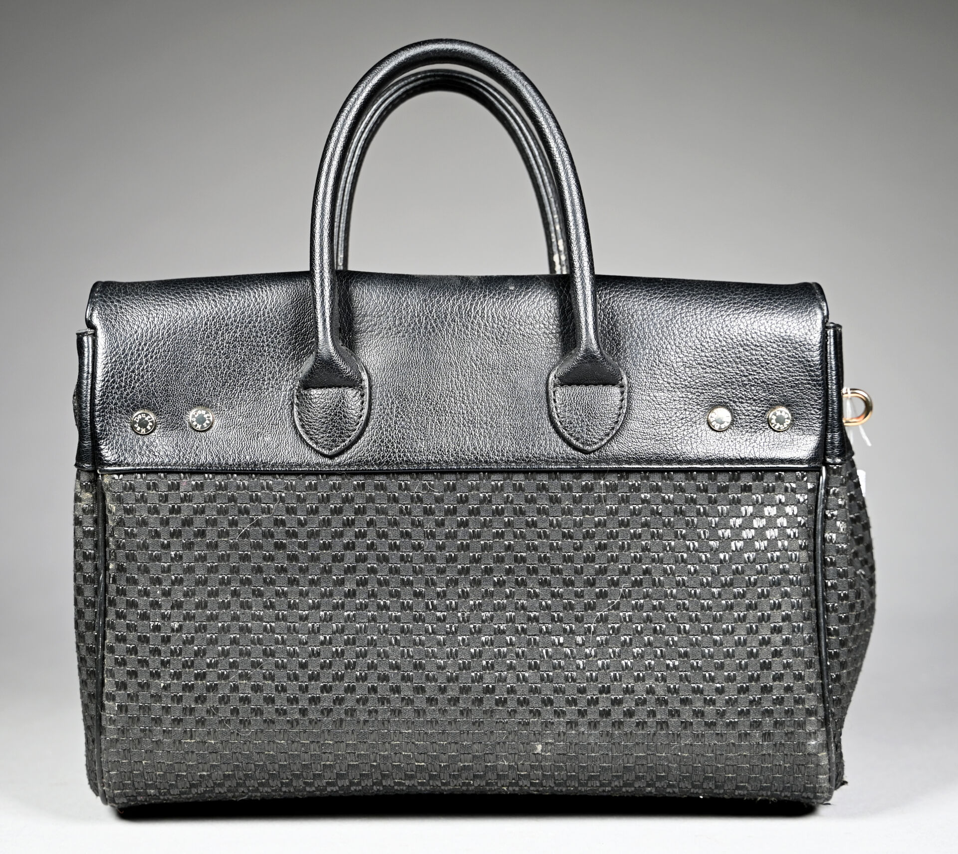 MAC DOUGLAS. Sac à main en cuir grainé et tressé dans le goût du Kelly (cadenas accidenté). Haut. : 25,5 cm – Larg. : 34 cm Prof. : 14 cm.