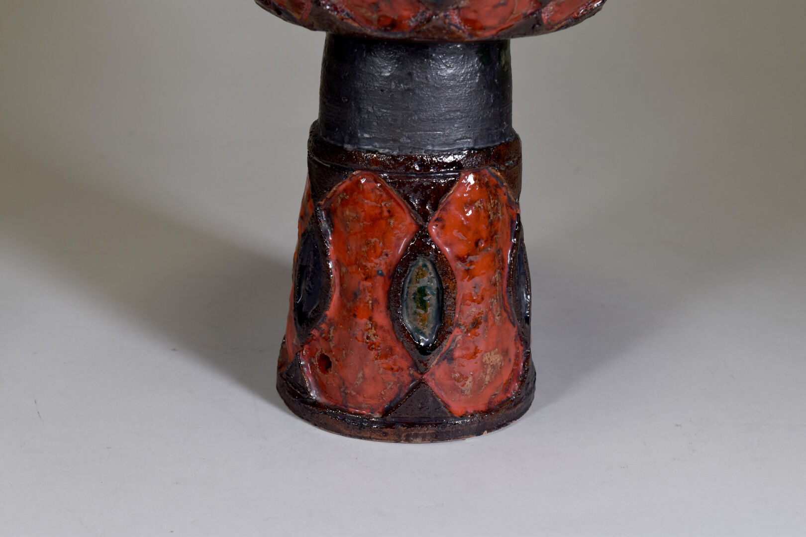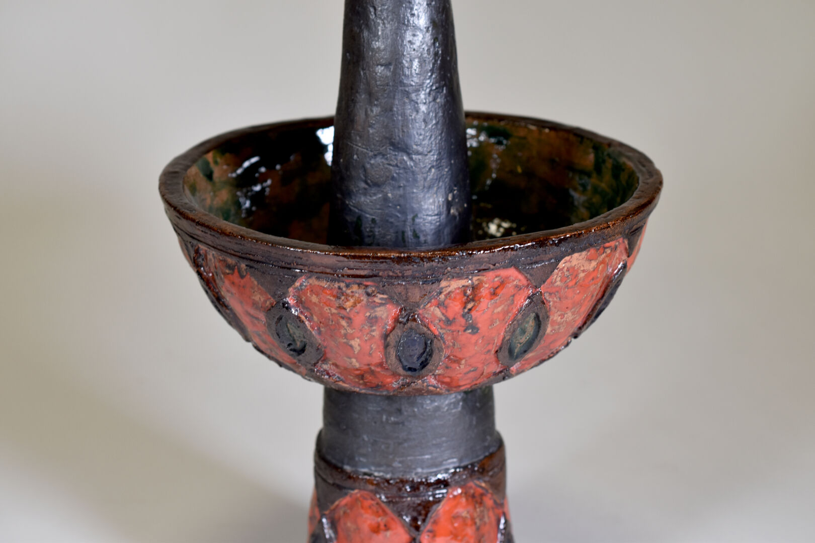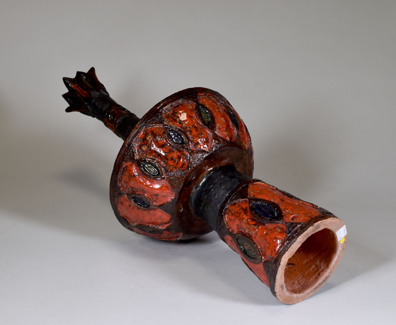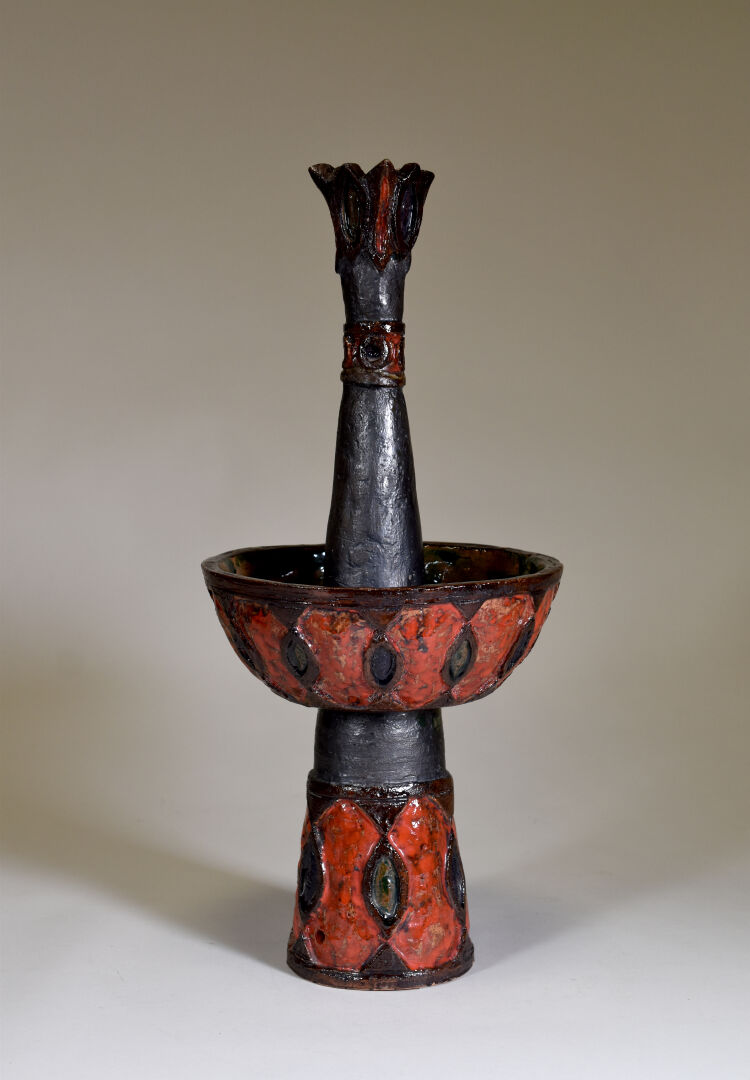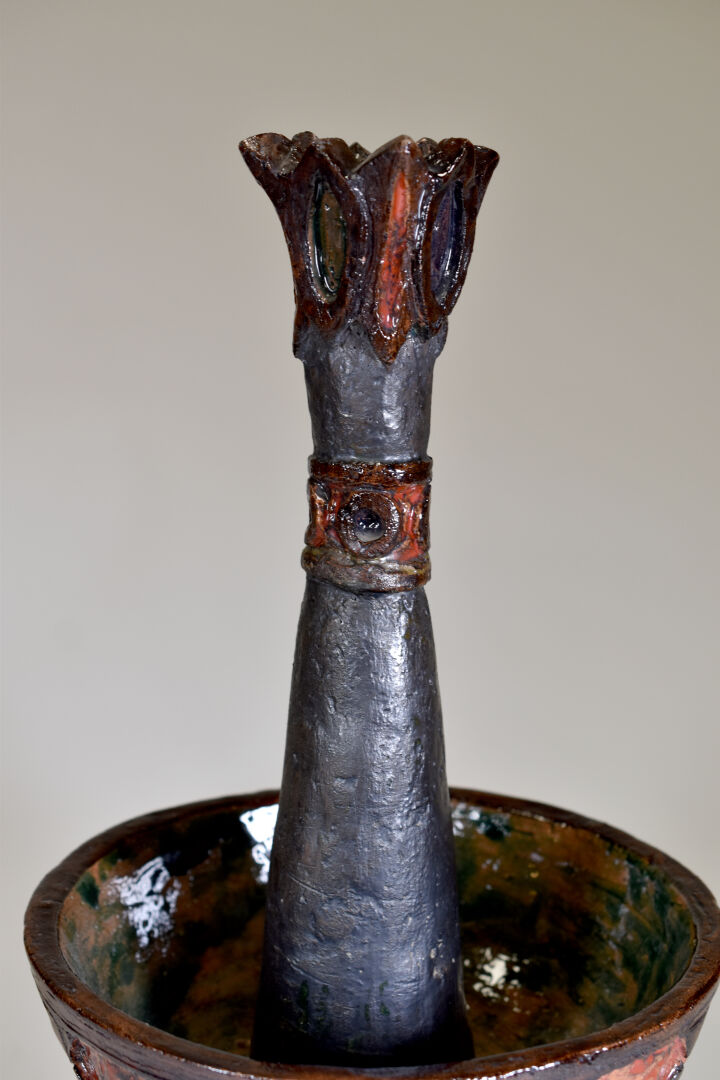 MARYKAL (XXe siècle). Epi de faitage en terre cuite émaillée rouge et brun. Haut. : 54 cm.