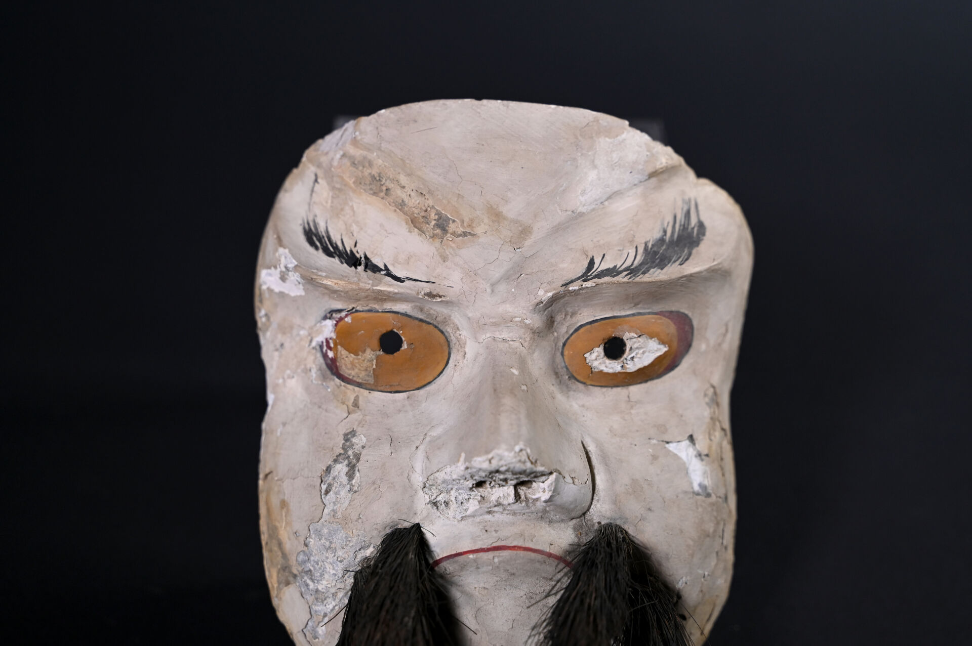 Masque fantaisie de théâtre No. en papier mâché ou carton bouilli (?). Dimensions : 25 x 15 x 9,5 cm.