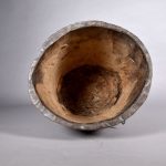 Masque Mende, Sierra Leone. Seconde moitié du XXe siècle. Bois. Masque heaume représentant un visage en losange surmonté d’une coiffe tressée. A noter l’absence des trous sur le pourtour du masque qui servent habituellement à fixer un costume en raphia. Haut. : 35,5 cm. Expert : M. Nicolas ROLLAND.
