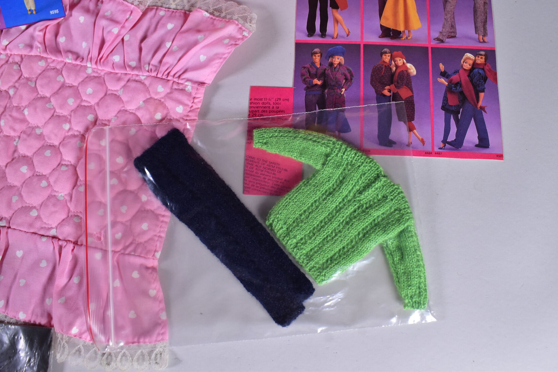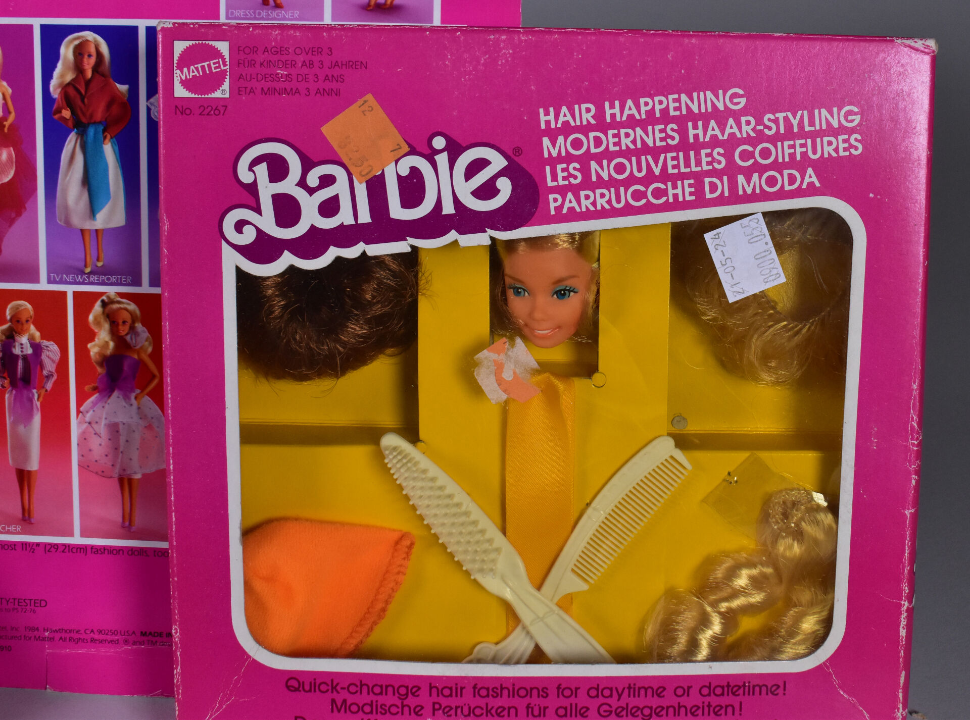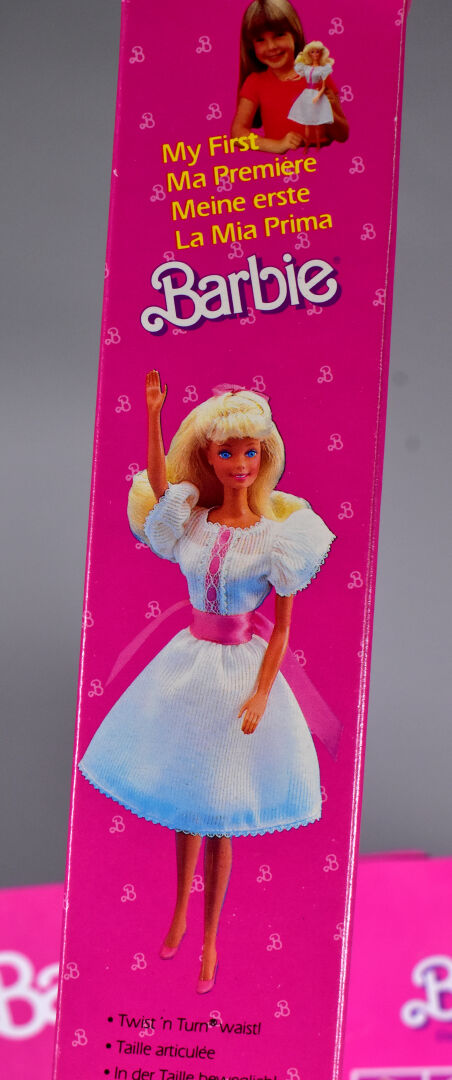 Mattel Barbie 1978/80 lot de 2 blisters cartonnage en état d’usage Barbie ma première réf 1875 et Hair Happening ref 2267 on y joint un petit lot de vêtements, dessus de lit etc…
