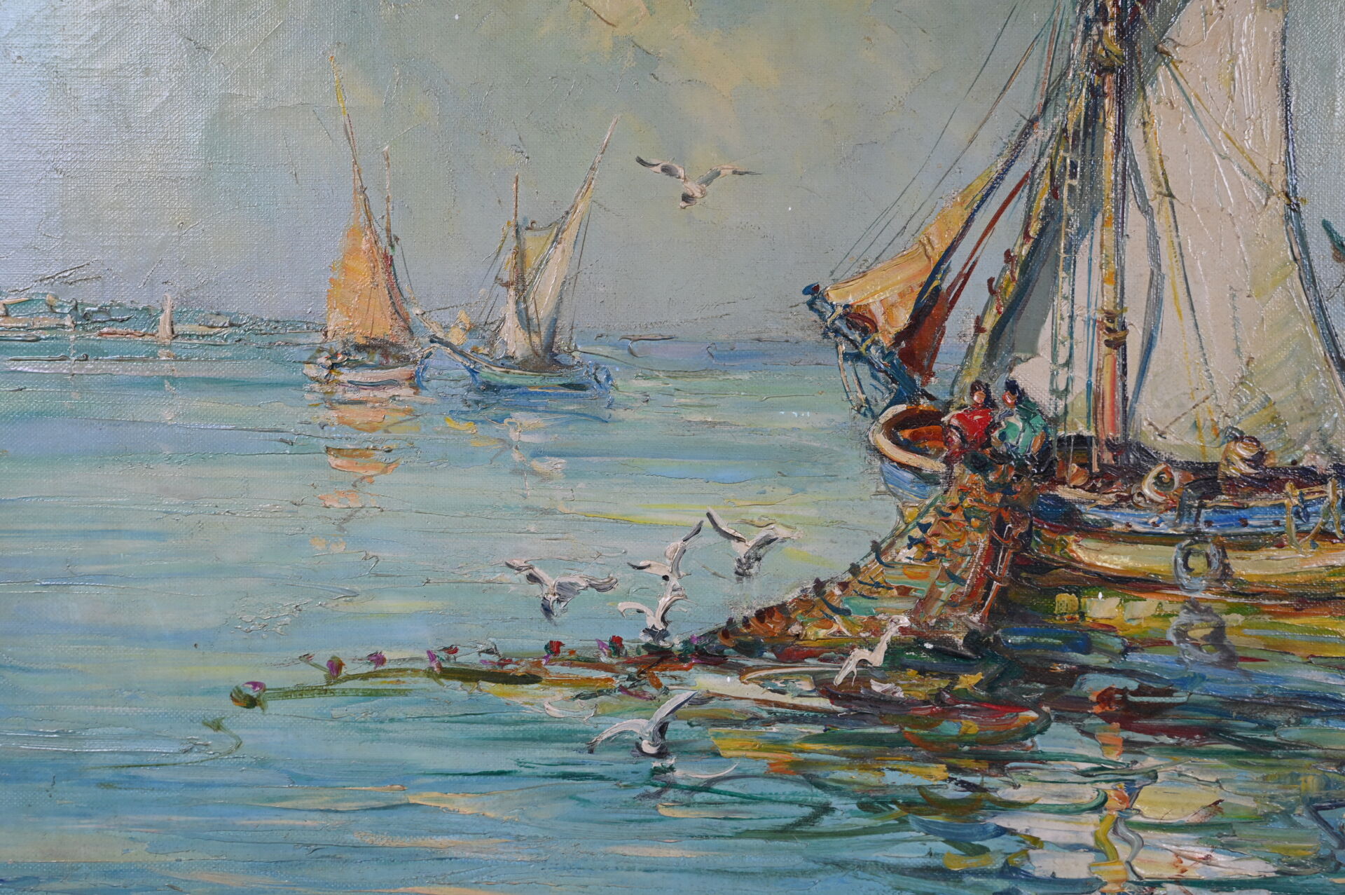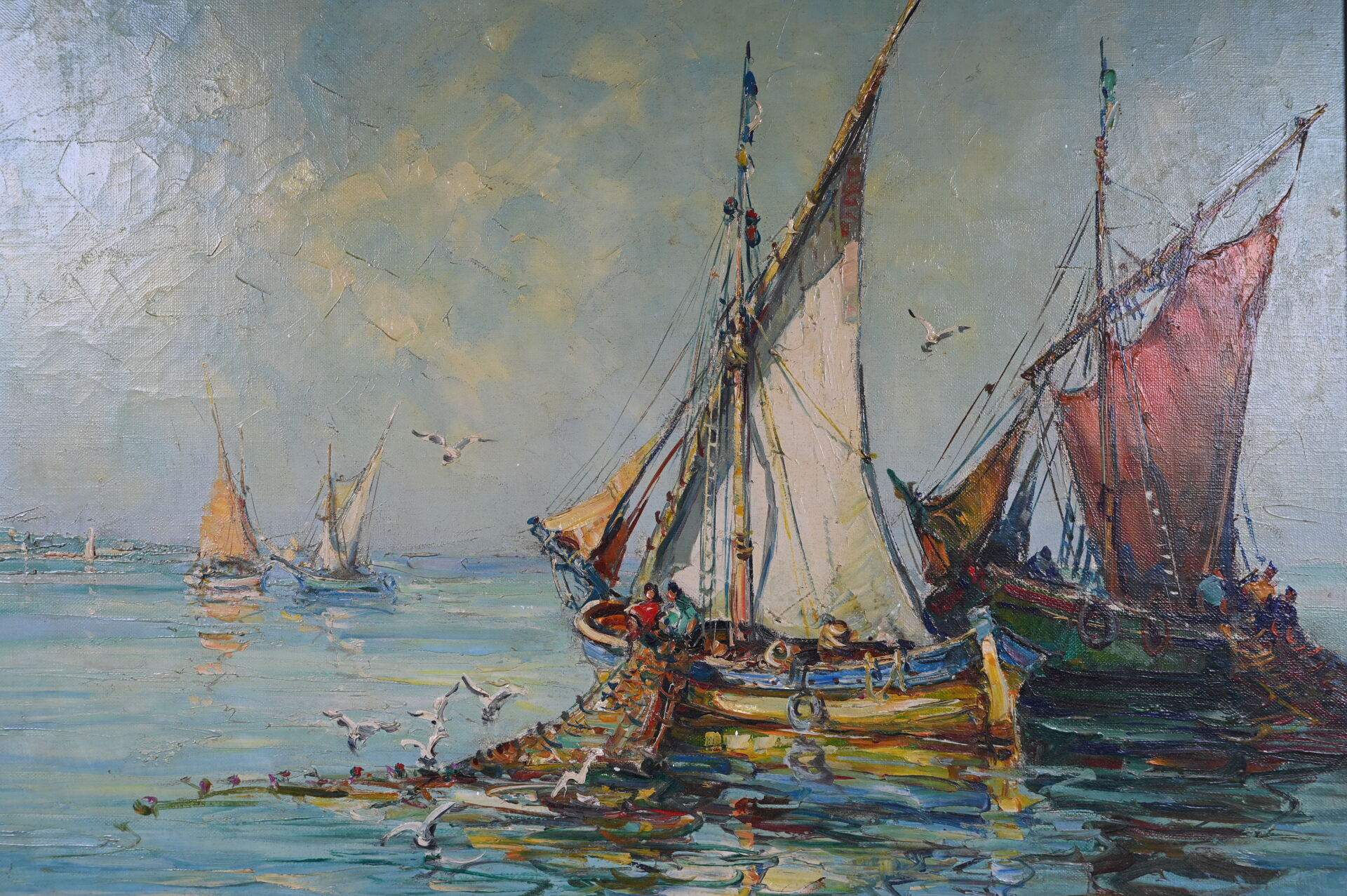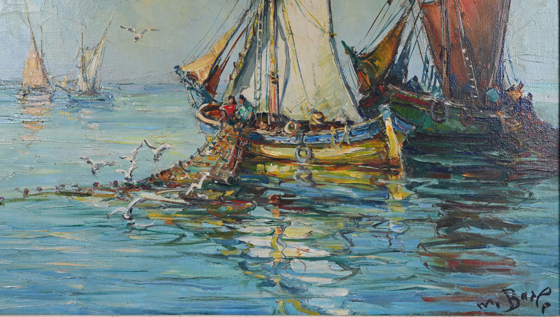 Maurice BARLE (1903-1961). Bateaux en méditerranée. Huile sur toile signée en bas à droite. 50 x 61 cm.