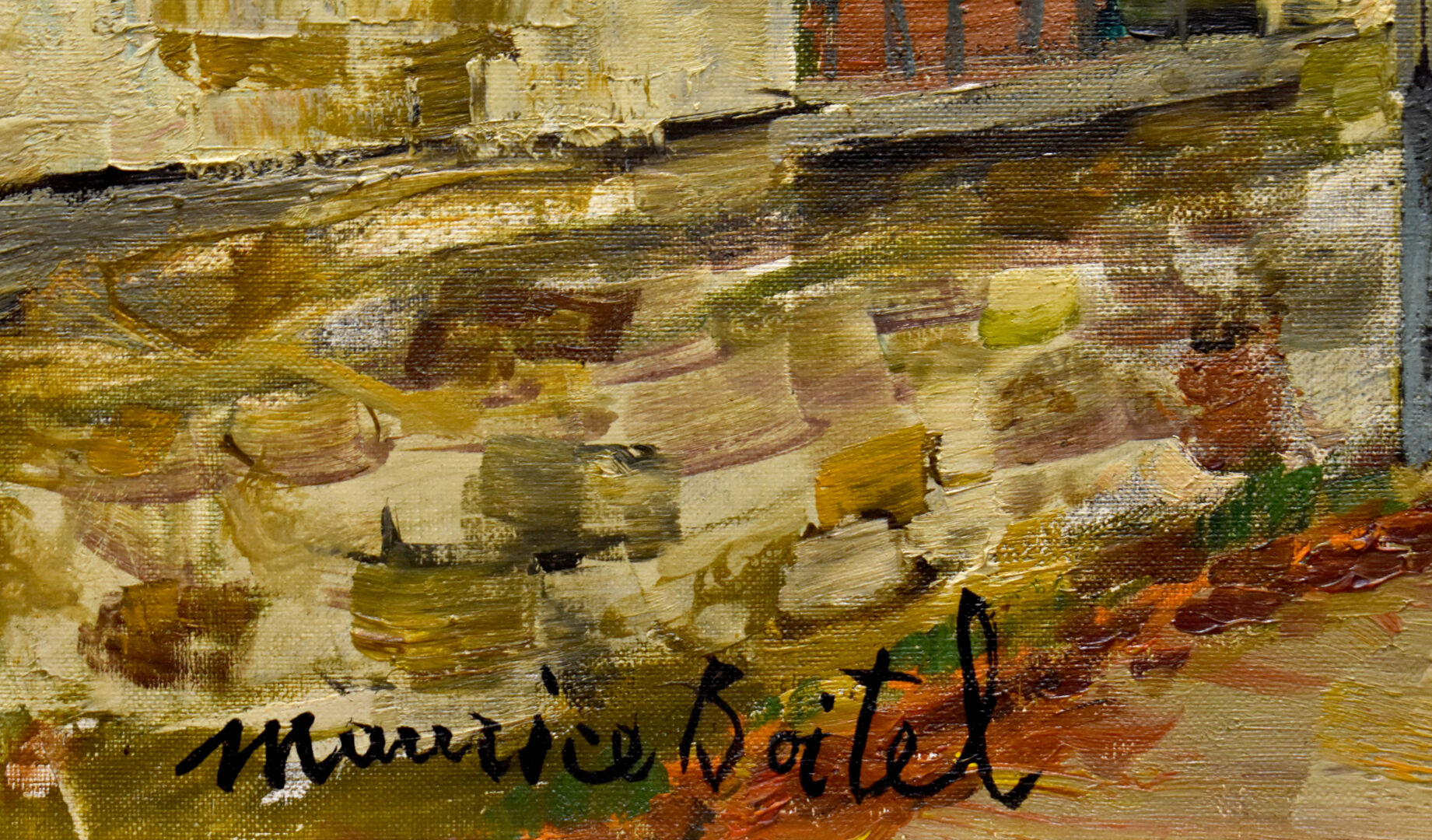 Maurice BOITEL (1919-2007). « Chemin en automne à Deuil (Seine et Marne). Huile sur toile signée en bas à droite, contre signé, situé et daté 1966-1967 au dos. 65 x 100 cm.