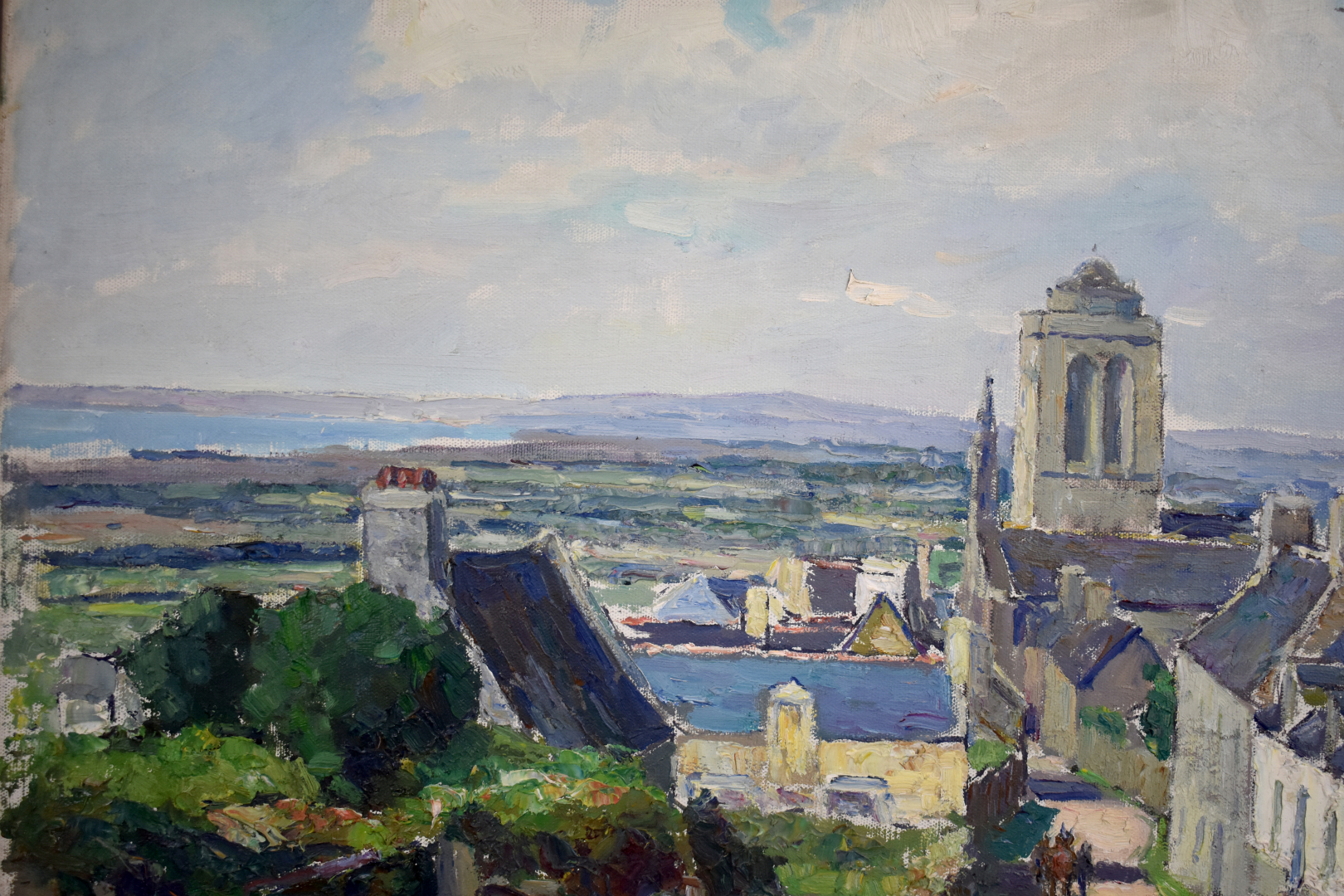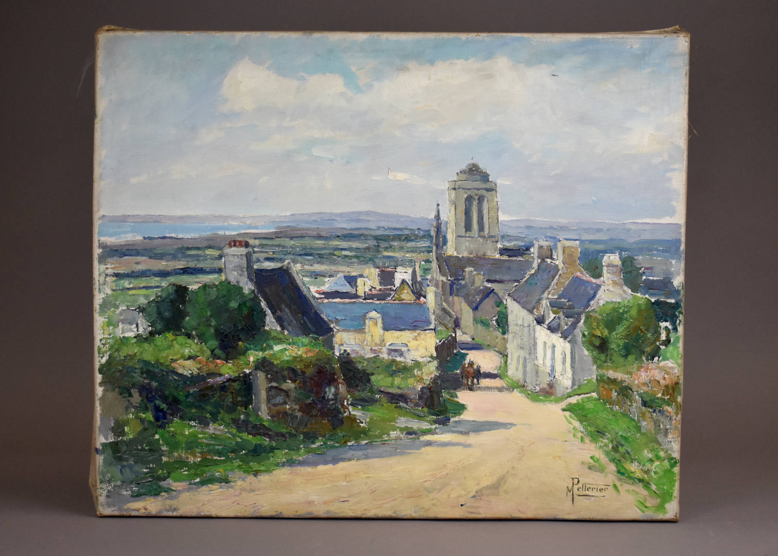 Maurice PELLERIER (Né en 1875). «Locronan». Huile sur toile signée en bas à droite, située au dos. 54 x 65 cm.