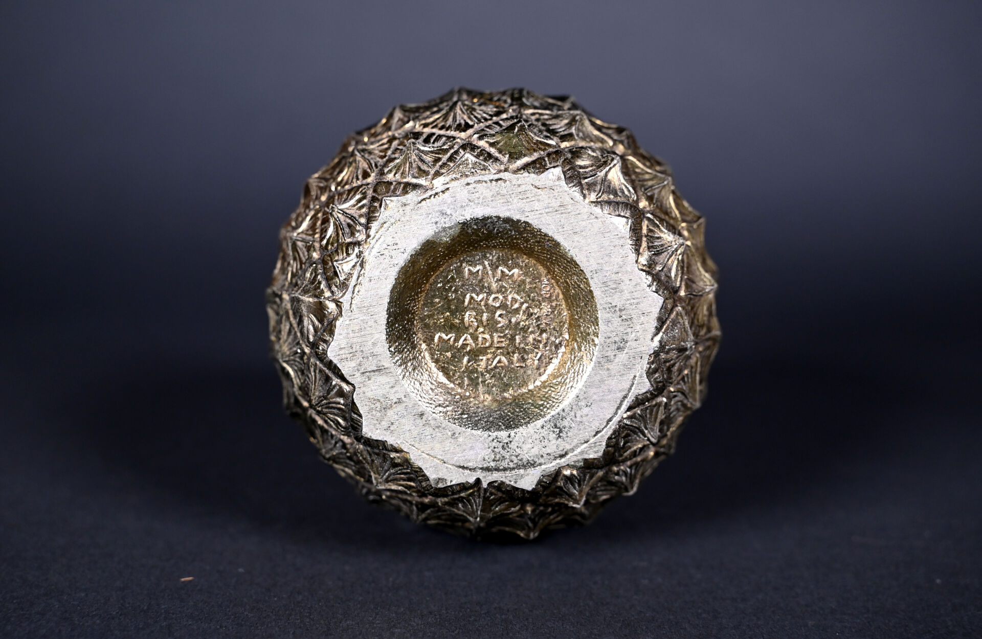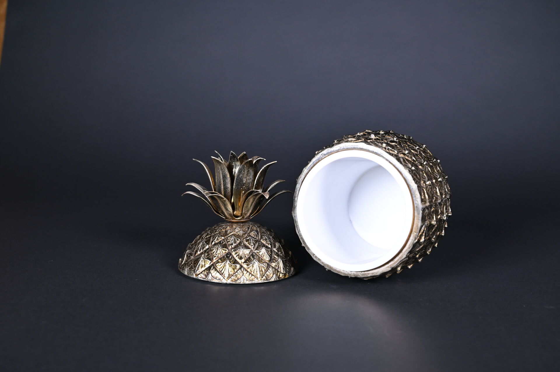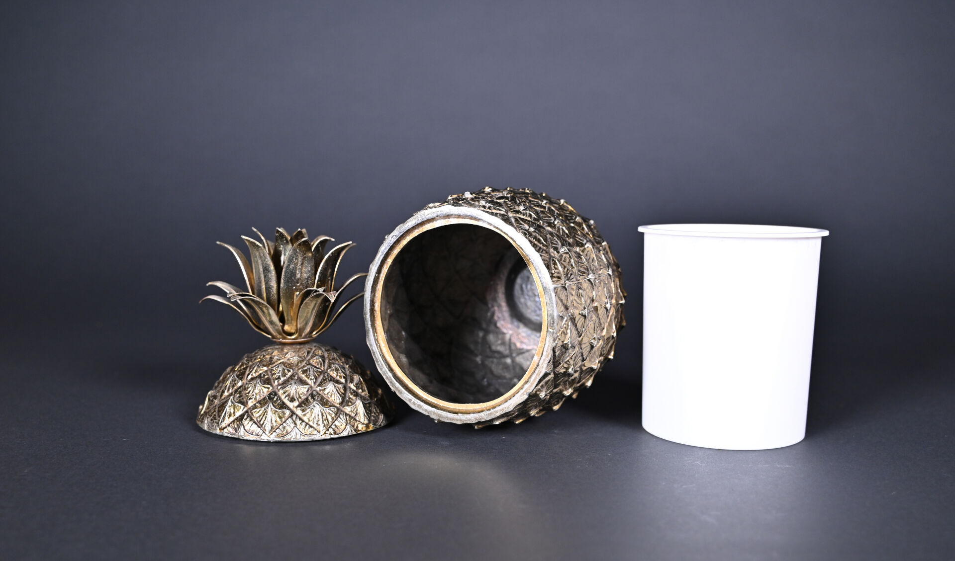 Mauro MANETTI (né en 1946). Seau à glaçons « ananas » en métal patiné bronze doré. L’intérieur en plastique blanc. Marqué au dessous. Haut. : 25 cm.