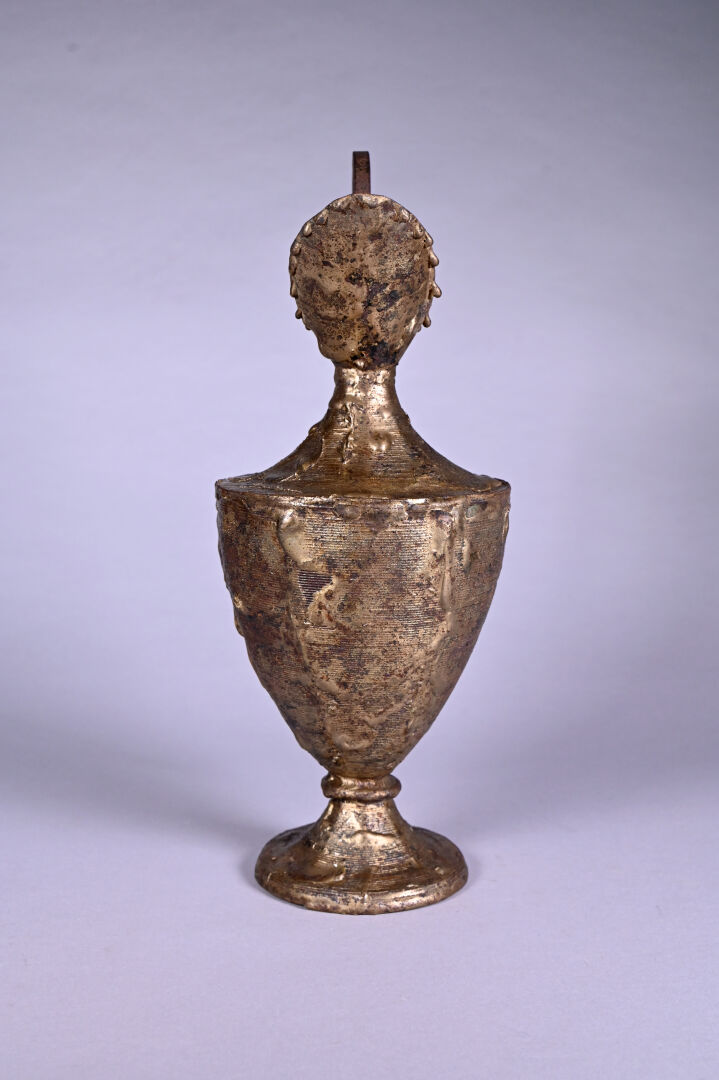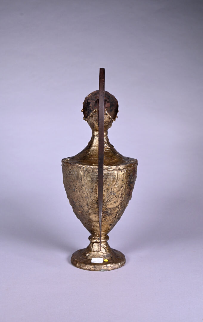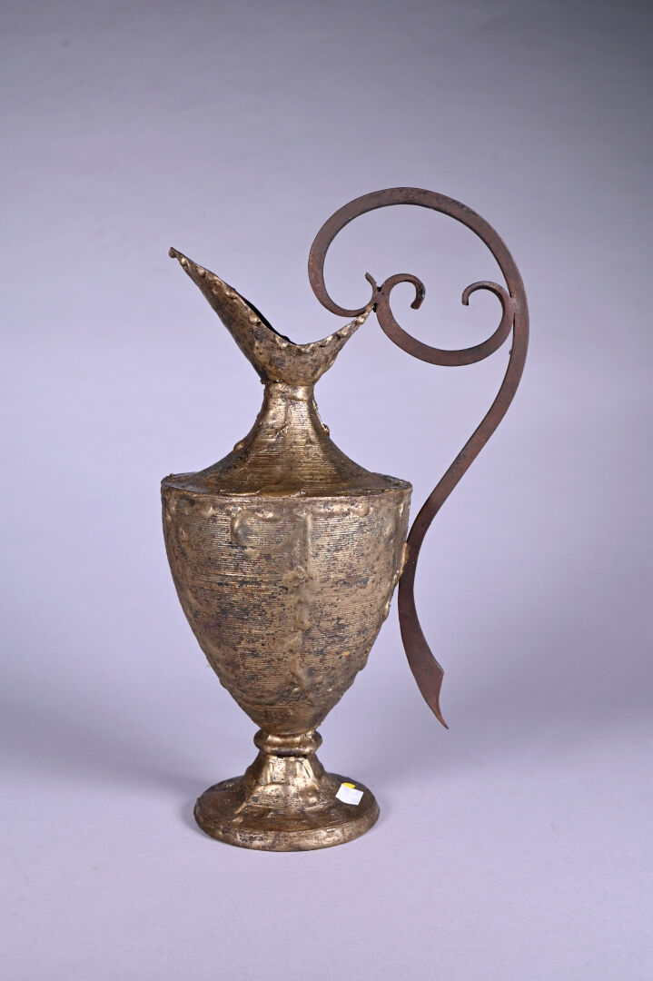 Max BRE ( XXeme siècle). Aiguière en métal patiné partiellement doré. Signée. Haut. : 42 cm.