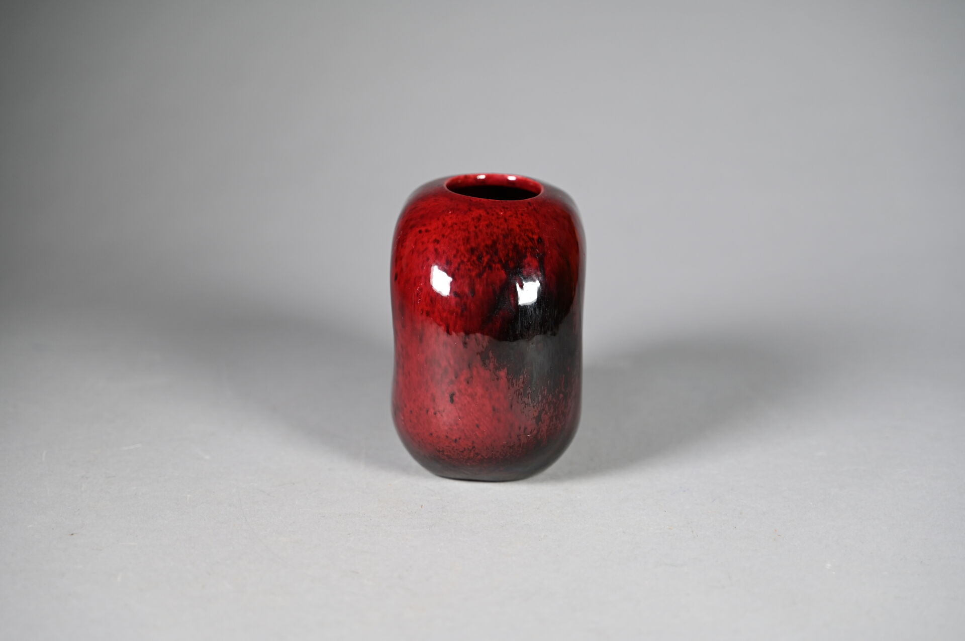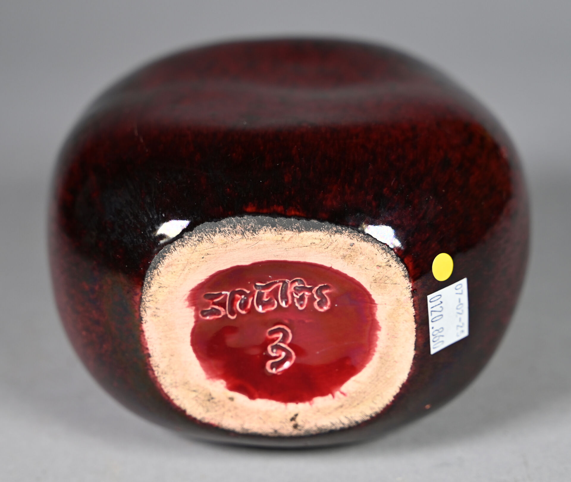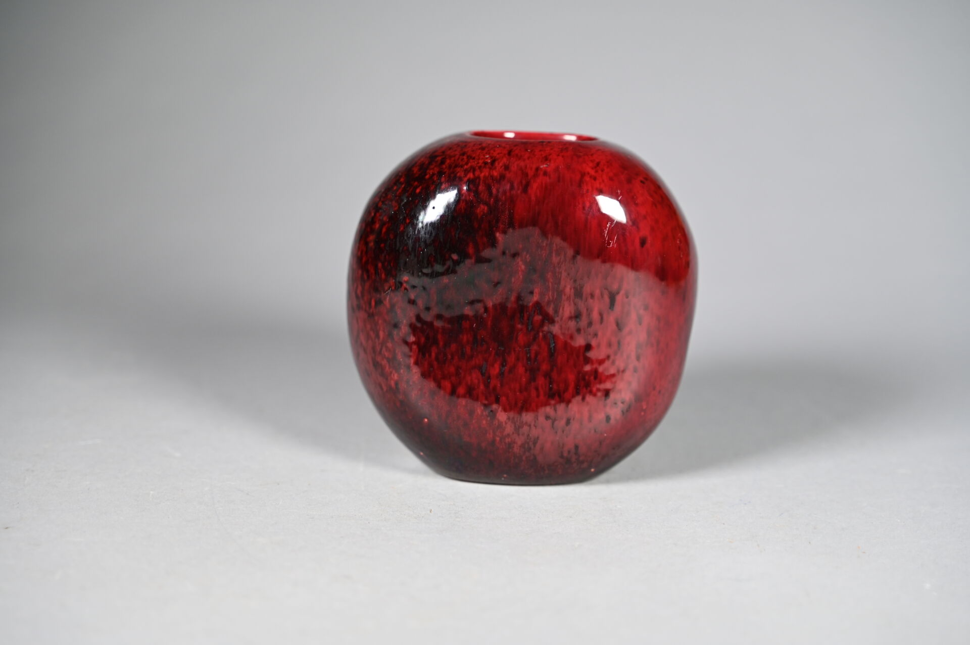 Max IDLAS (1932-2020). Vase boule à panse aplatie en céramique émaillée rouge sang de boeuf. Signé au dessous. Haut. : 17 cm.