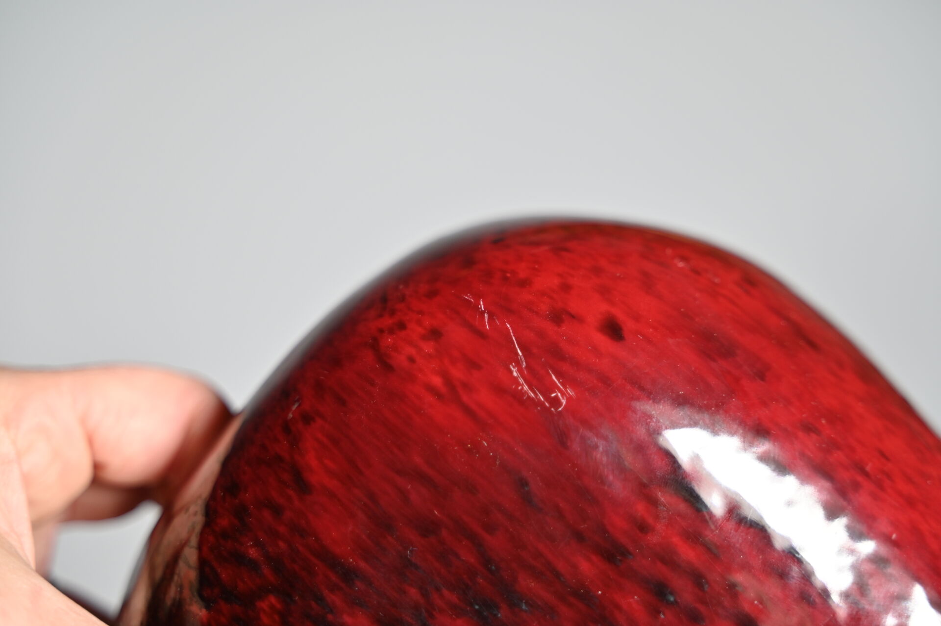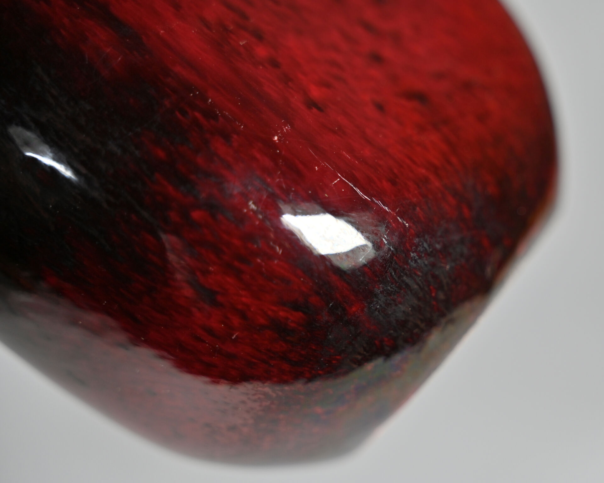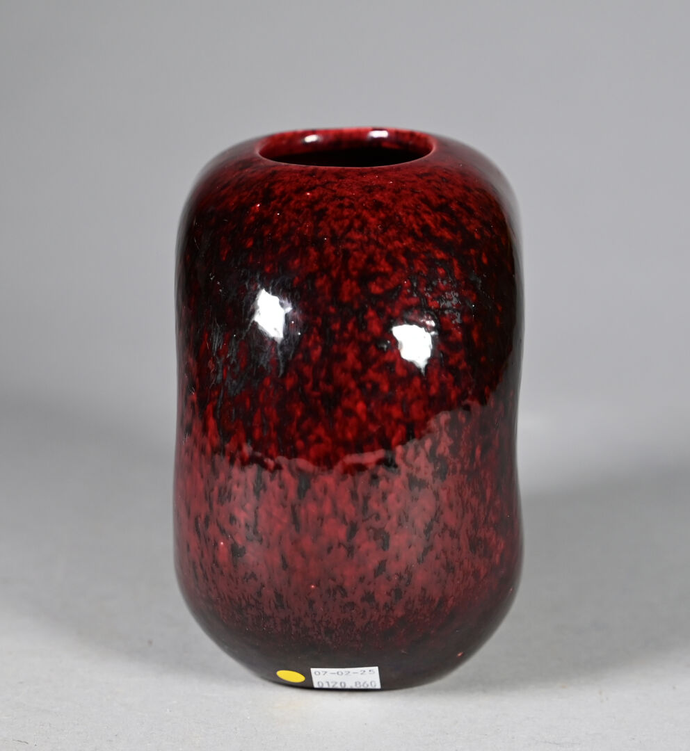 Max IDLAS (1932-2020). Vase boule à panse aplatie en céramique émaillée rouge sang de boeuf. Signé au dessous. Haut. : 17 cm.