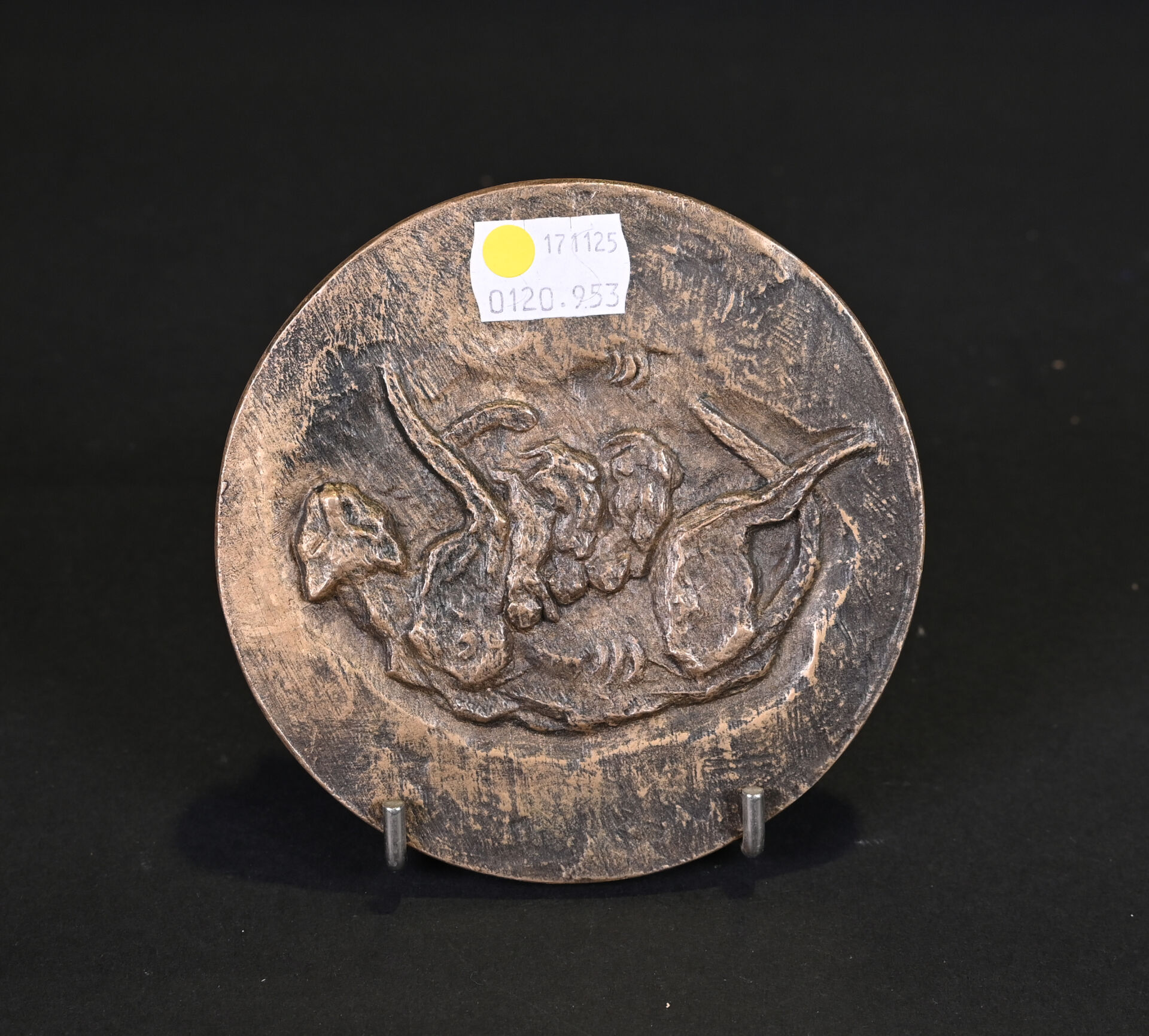 Médaille en bronze « chats » bi face. Numérotée 15/100 et daté 1967 sur la tranche. Diam. : 11,8 cm.