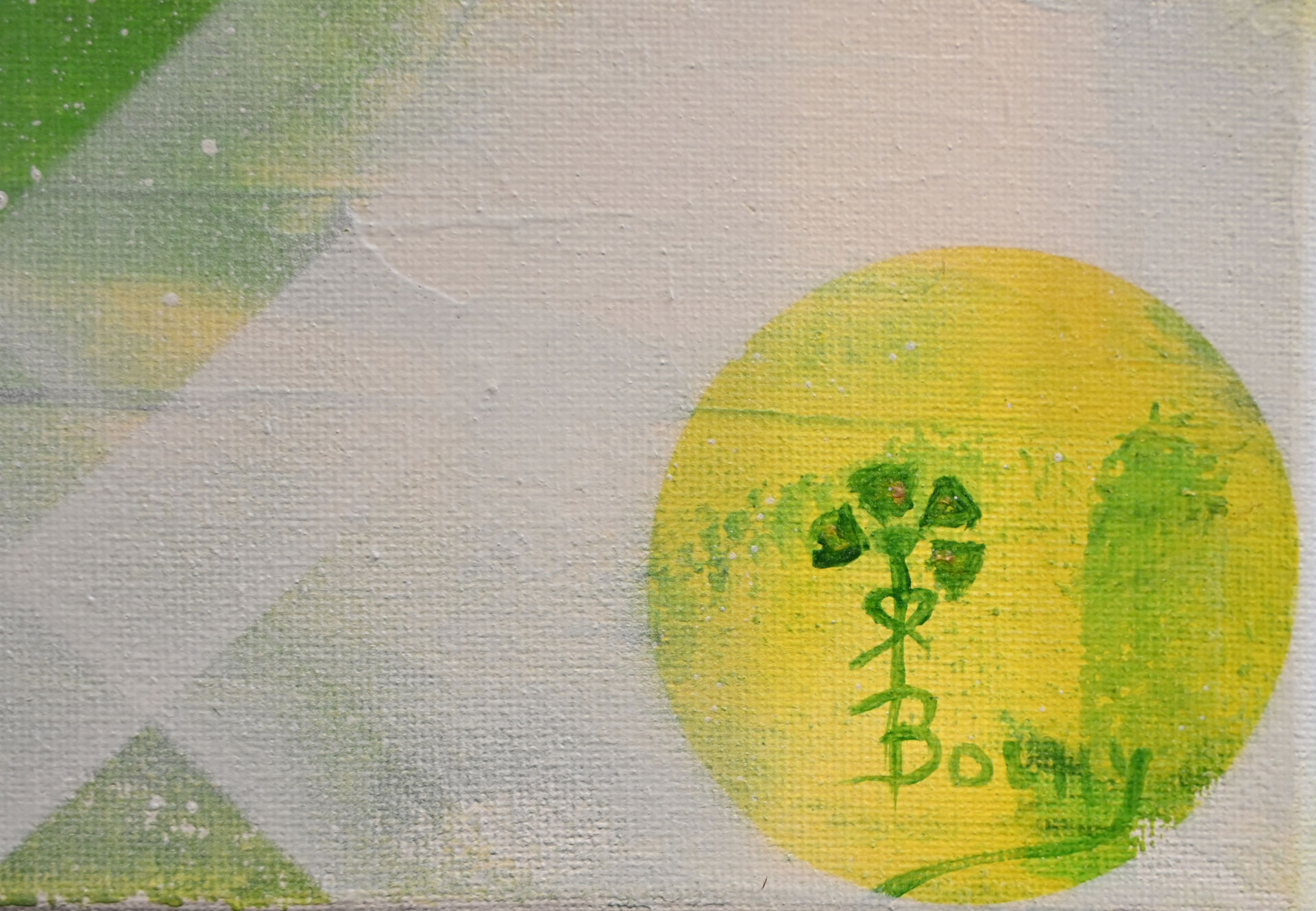 Michèle BOHLY (XXe siècle). « Éclaircie ». Huile sur toile signée en bas à droite, contre signée et titrée au dos. 40 x 40 cm.