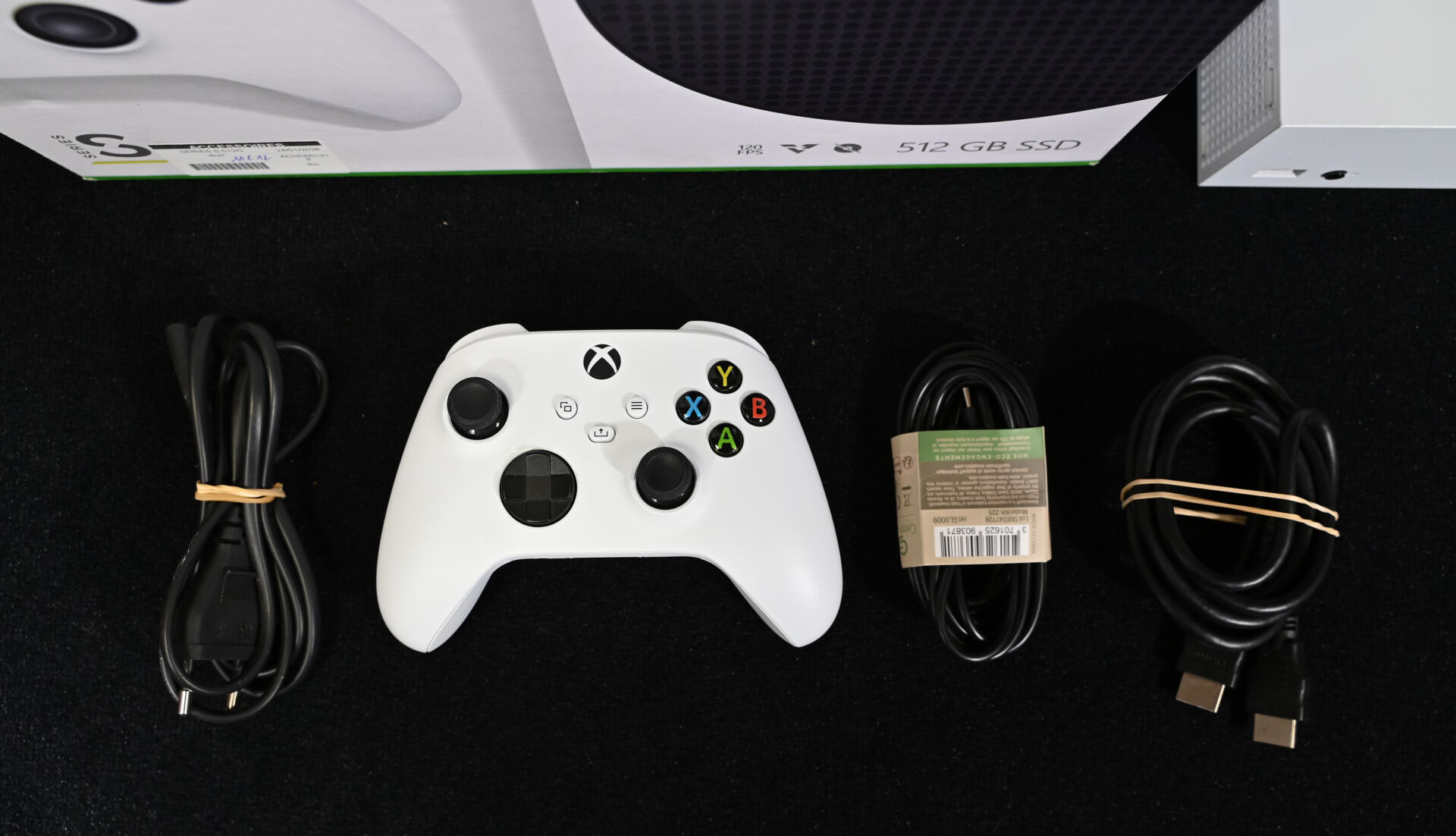 * MICROSOFT – XBOX Console XBOX SERIES S – 1883. SKU : RRS-00079 SN : 184916223617 512GB Avec câbles, manette et boîte.