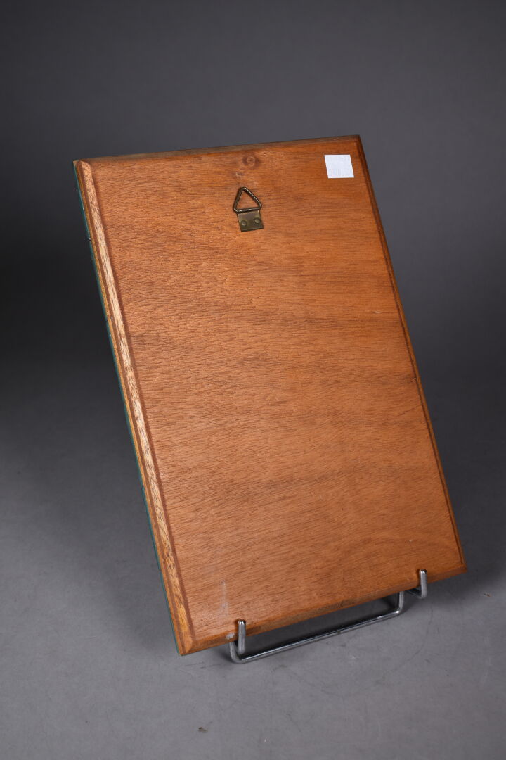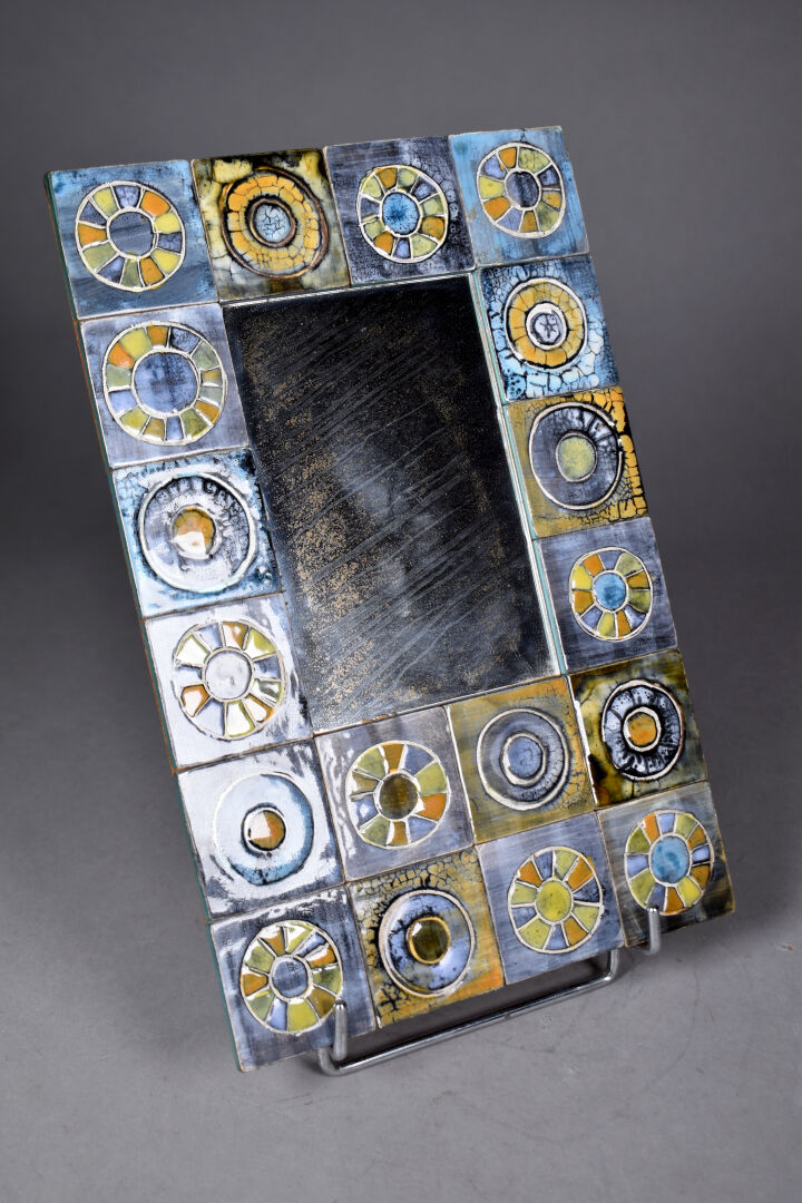 Miroir en céramique émaillée dans le goût de Vallauris. Haut. : 31 cm – Larg. : 21 cm.