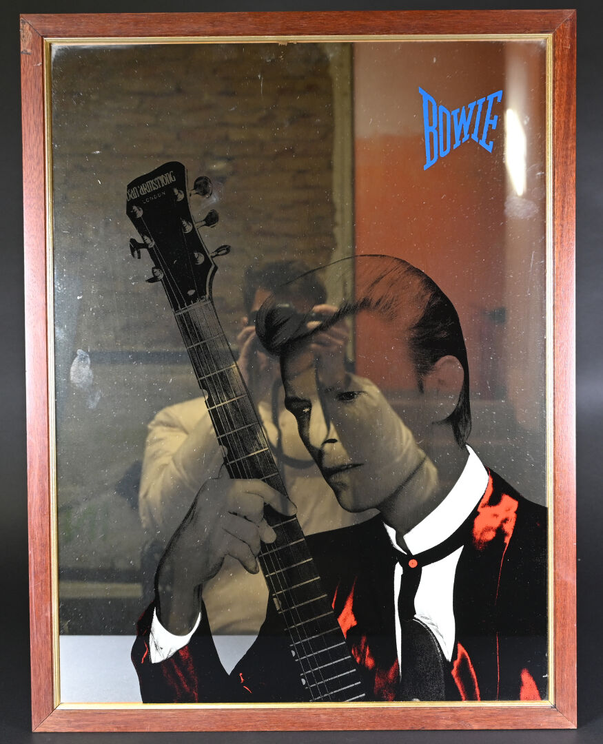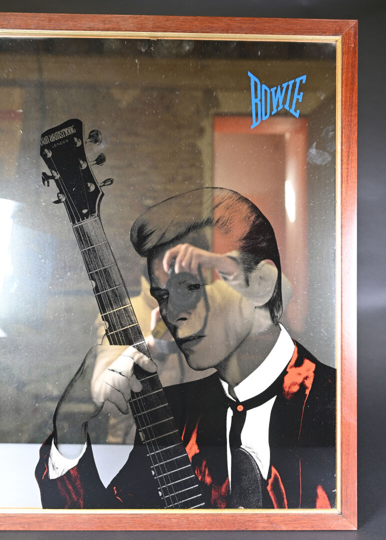 Miroir lithographié à l’effigie de David BOWIE jouant de la guitare. 65 x 50 cm.
