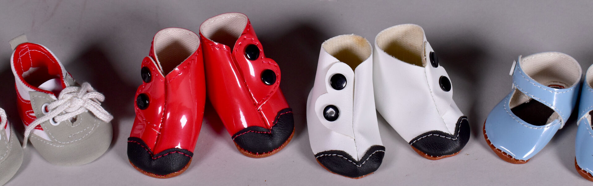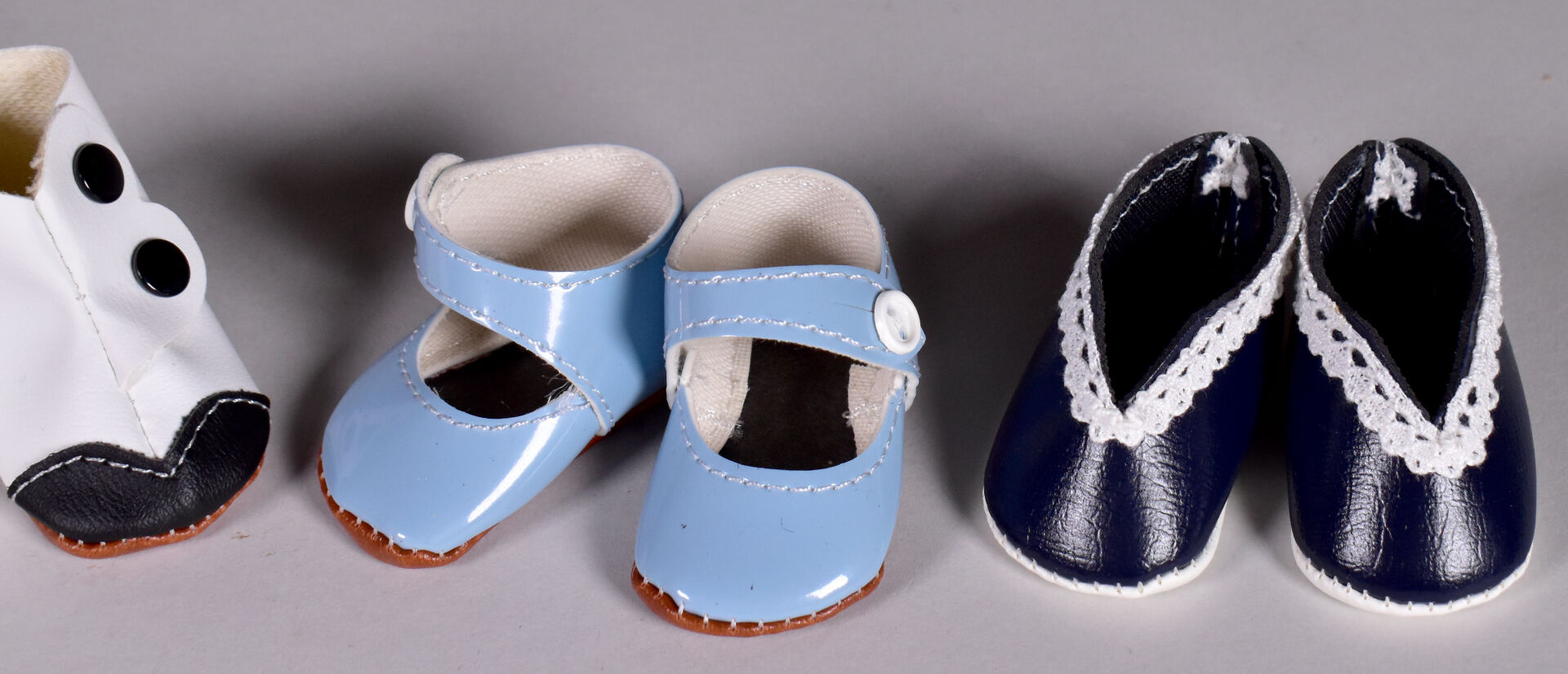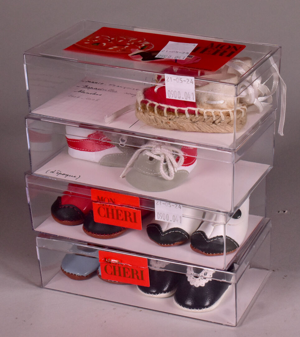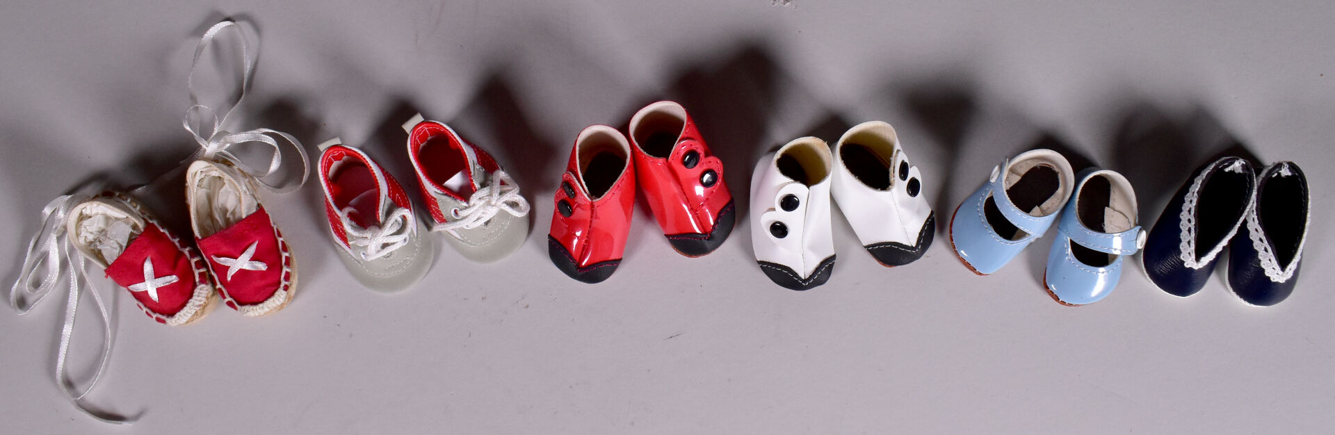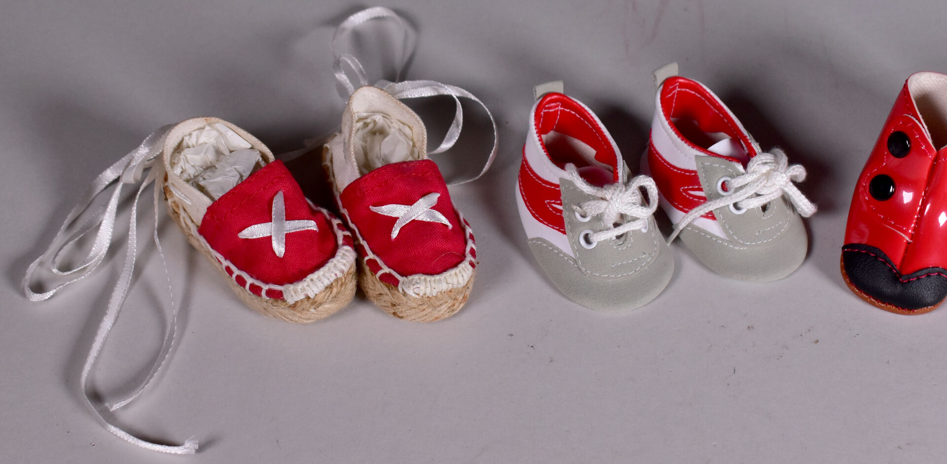 Mode et Travaux Marie Françoise ou Françoise et Emilie lot de 6 paires de chaussures de diverses années de mode et travaux dont espadrille, basquet, bottines à pressions