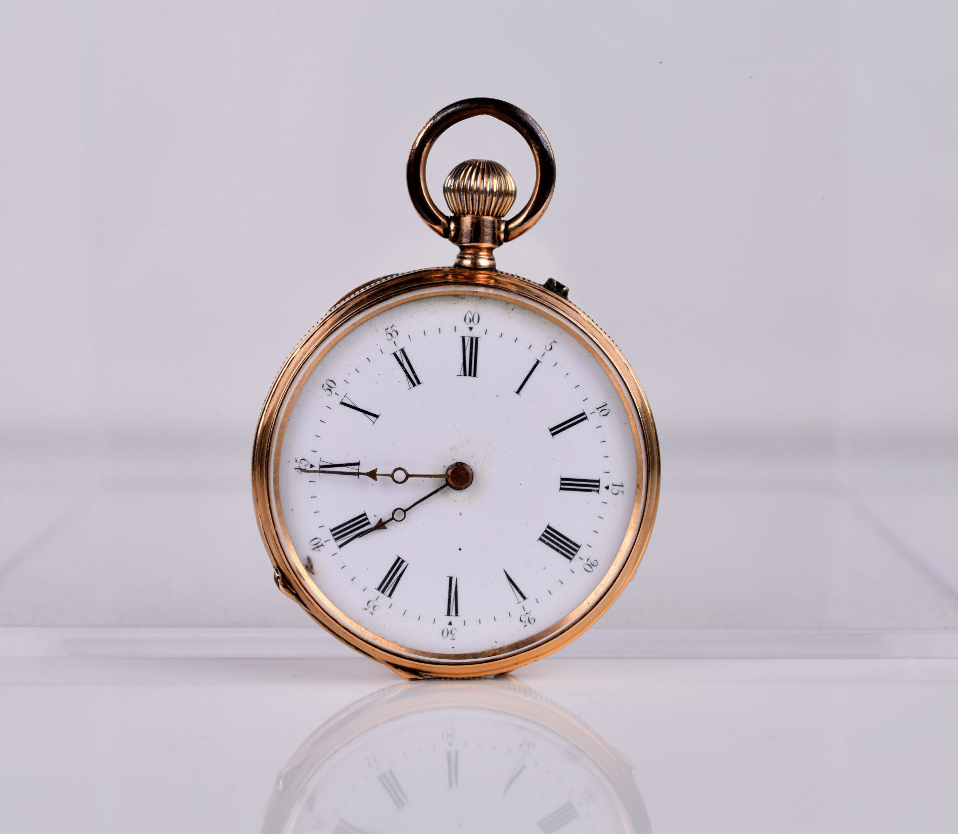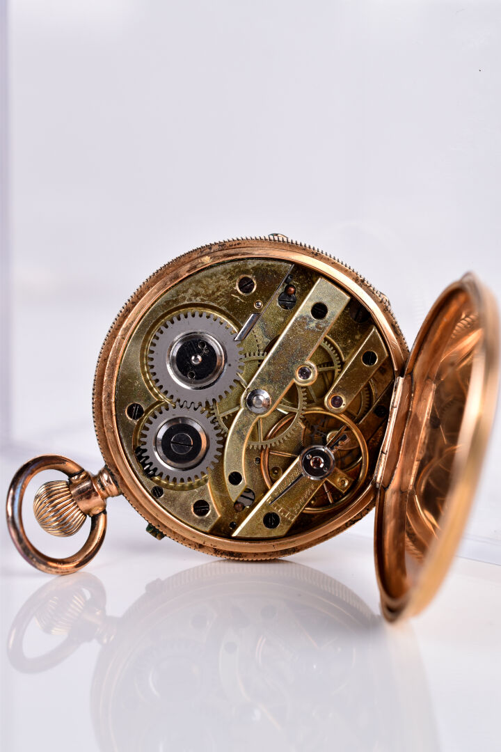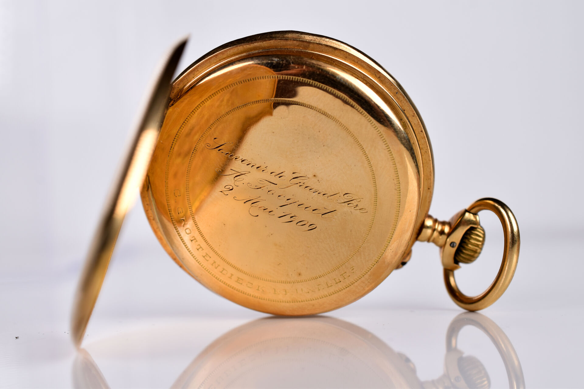Montre à gousset « Chs.Grottendieck (chocs au cadran, cache poussière en or) et une montre de col en or 18k 750/1000e (cache poussière en or). Poids brut : 103g
