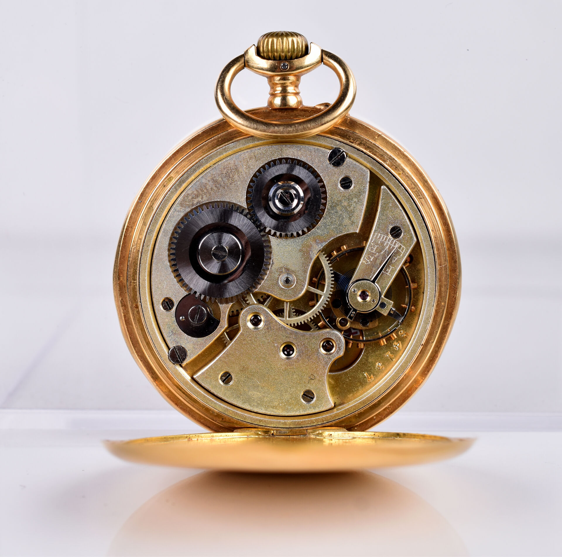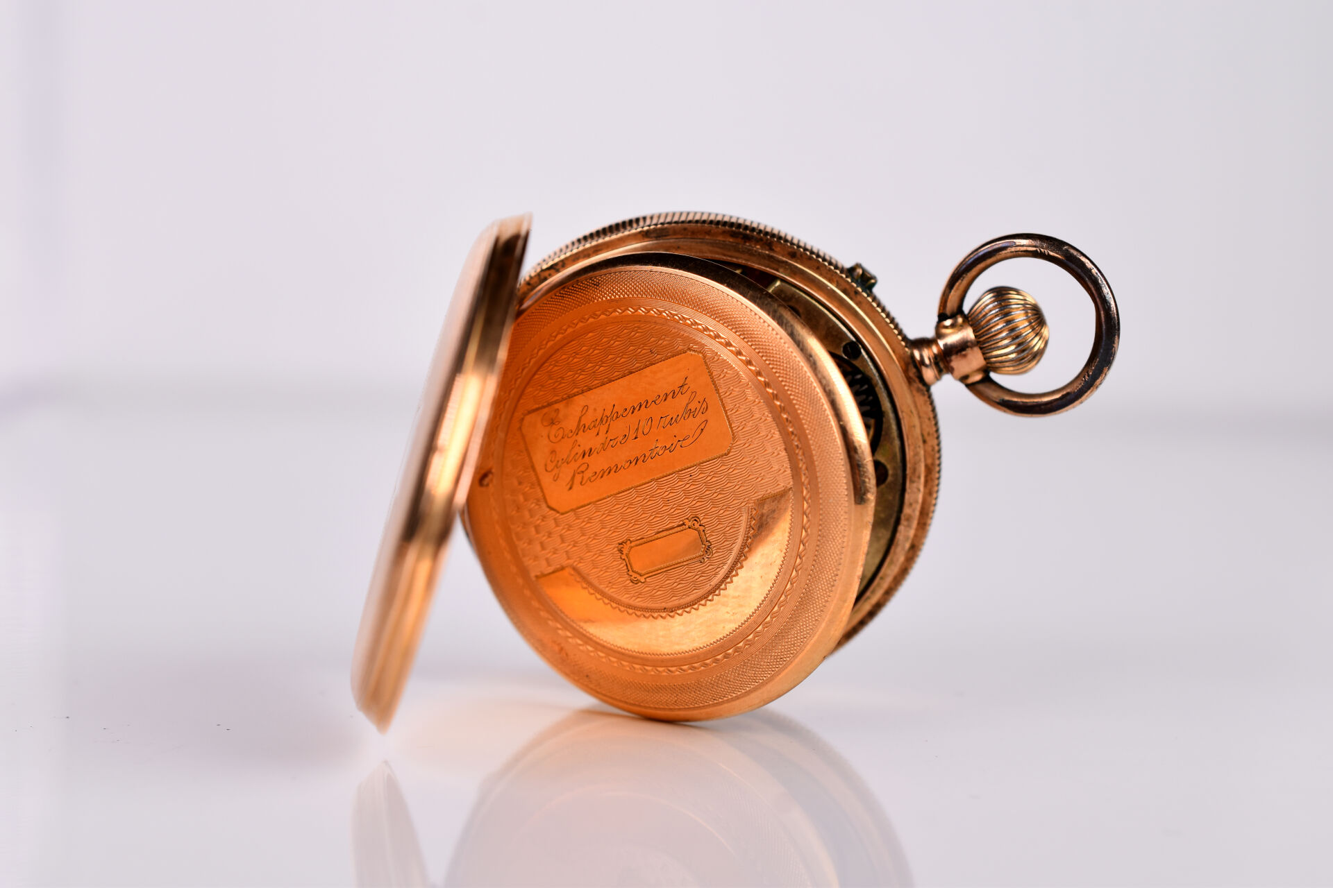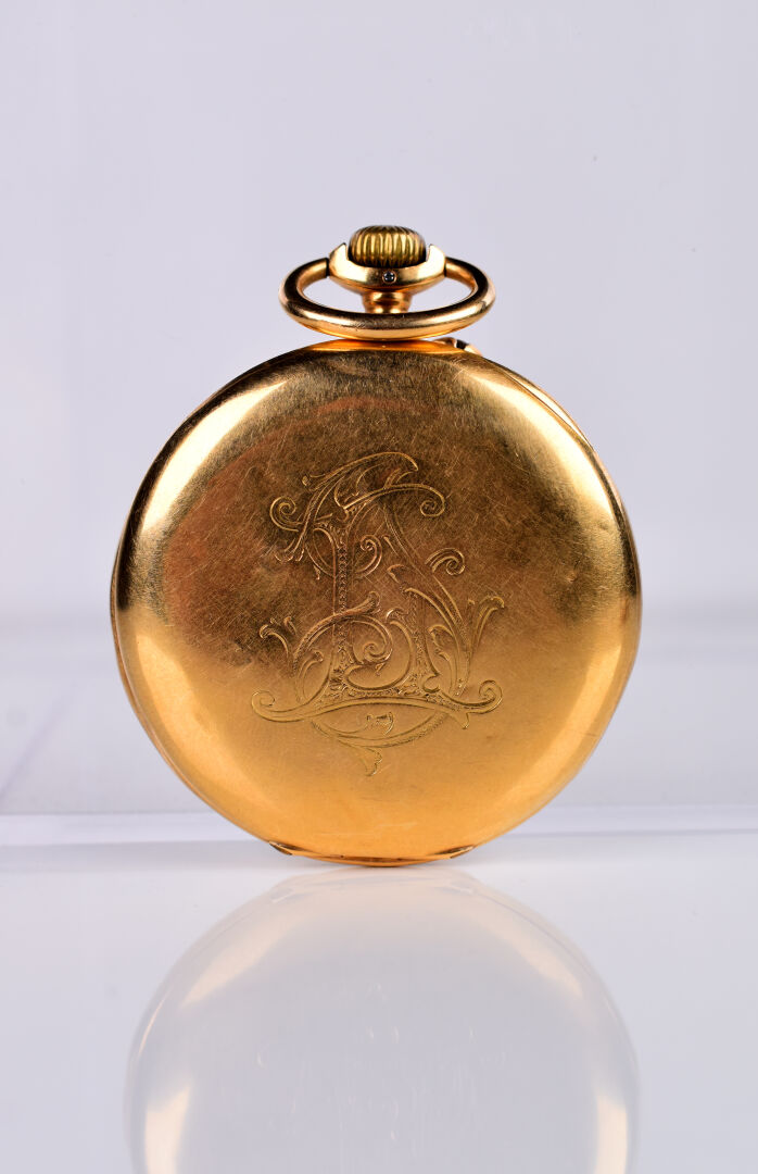 Montre à gousset « Chs.Grottendieck (chocs au cadran, cache poussière en or) et une montre de col en or 18k 750/1000e (cache poussière en or). Poids brut : 103g