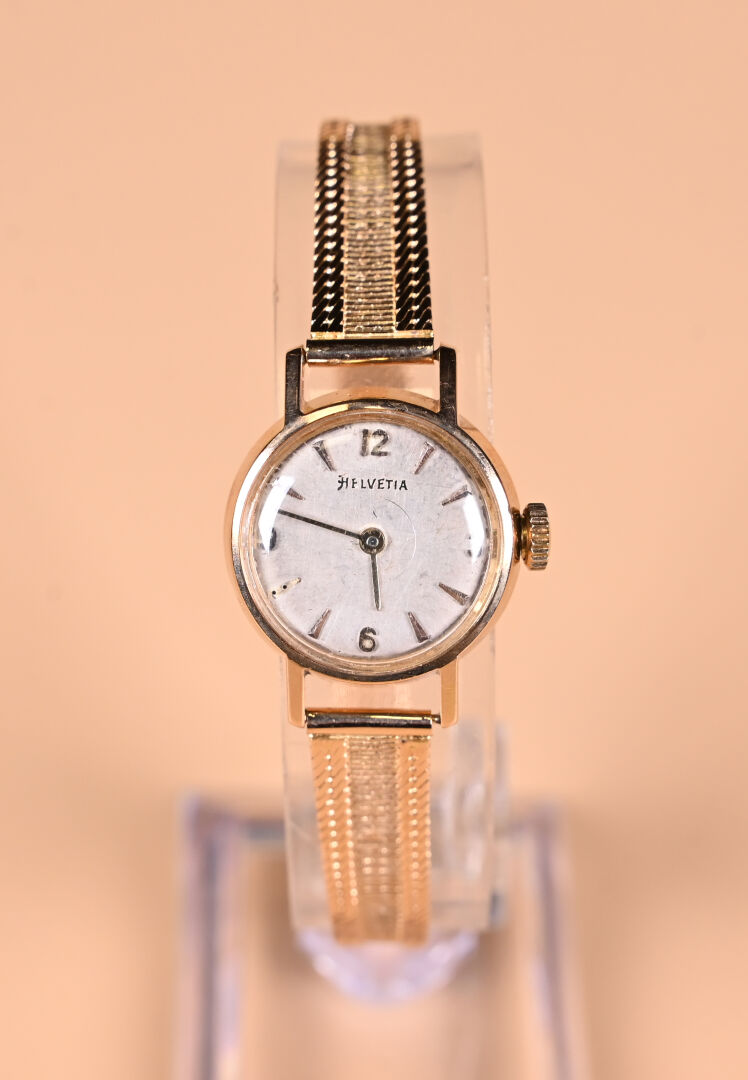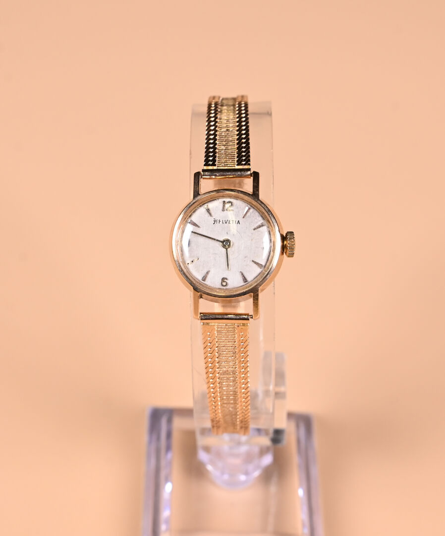 Montre bracelet de dame en or jaune 18K 750/1000e. Cadran signé HELVETIA. Poids brut : 23,17 g.