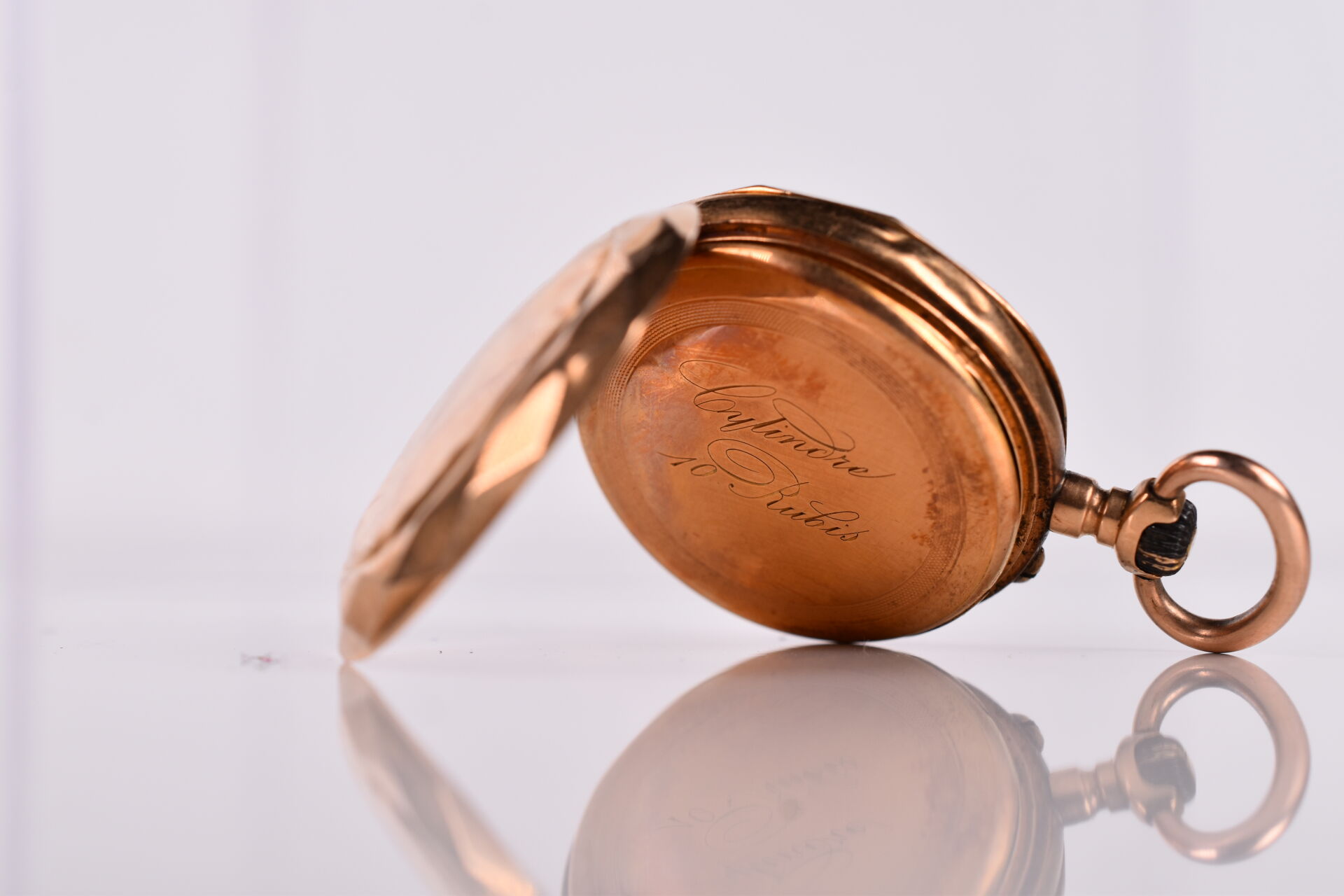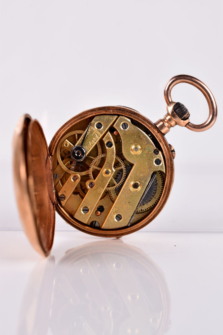 Montre de col en or jaune 18K 750/1000e, cache poussière en or (chocs). Poids brut. : 21,3 g.