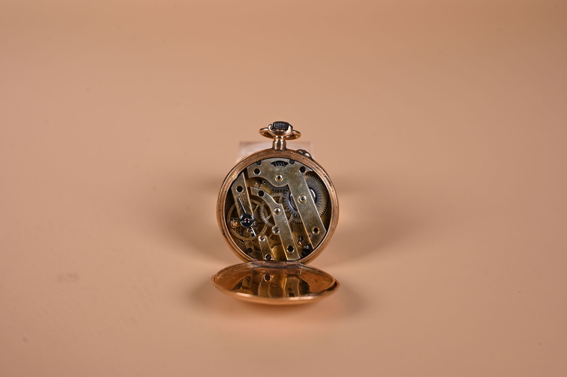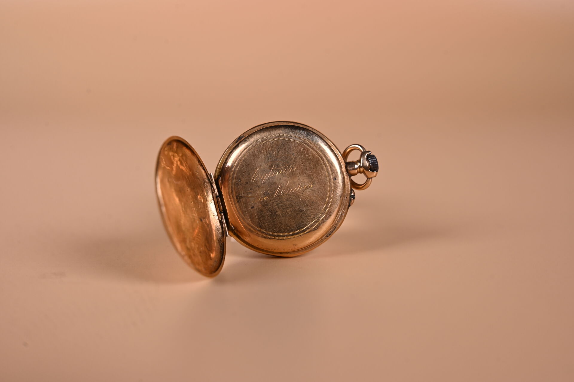Montre de col en or jaune 750 millièmes (18k). Fin XIXème siècle. Accidents au cadran. Chocs. Fonctionne. Poids brut : 21 g (cache-poussière en or).