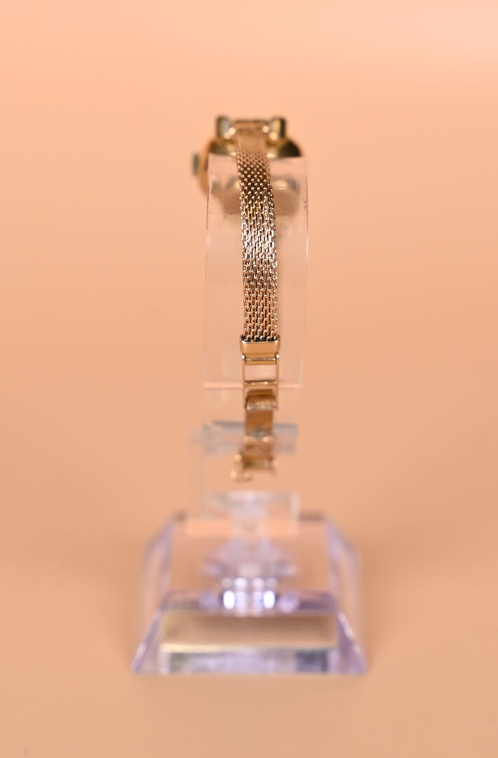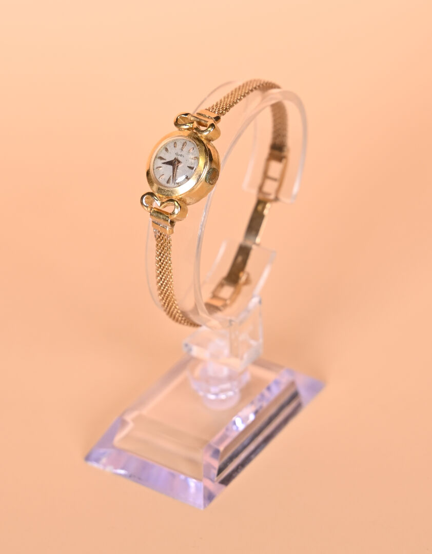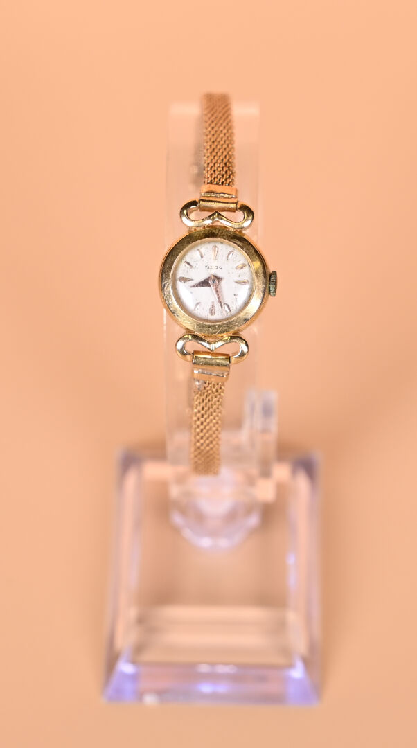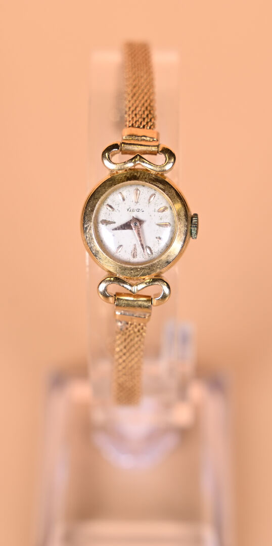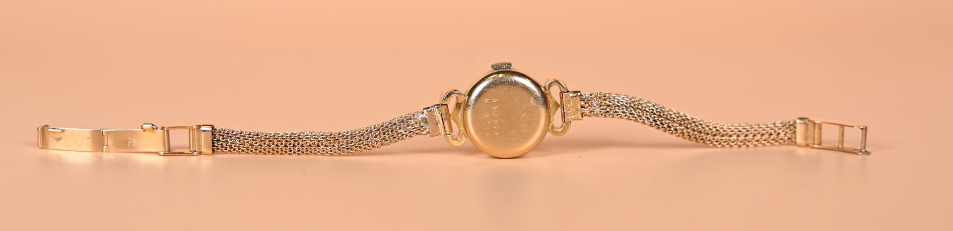 Montre de dame tout en or 18K 750/1000e. Remontoir métal. Poids brut : 19,7 g.