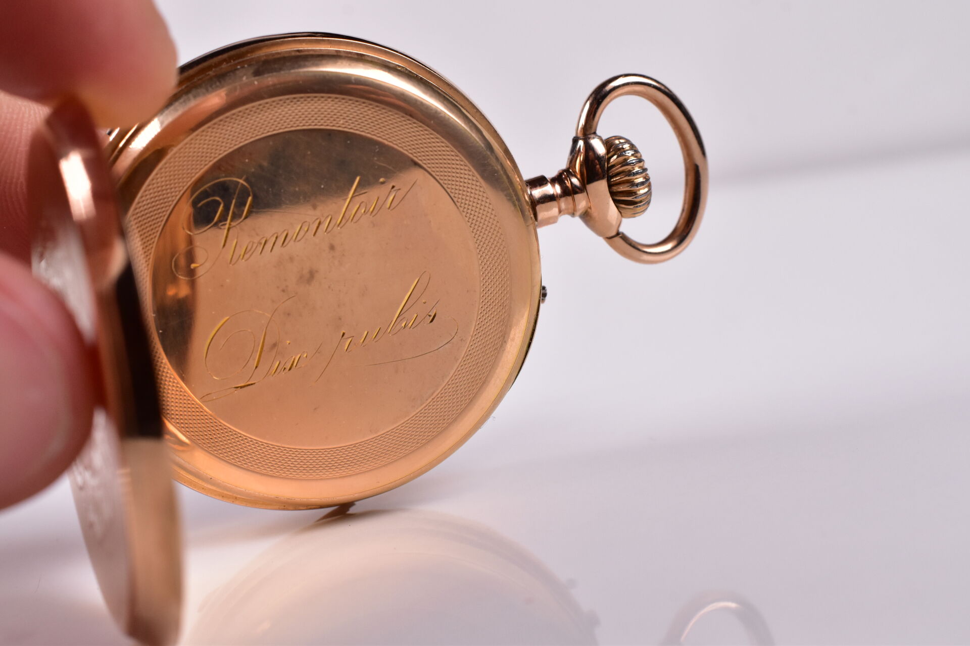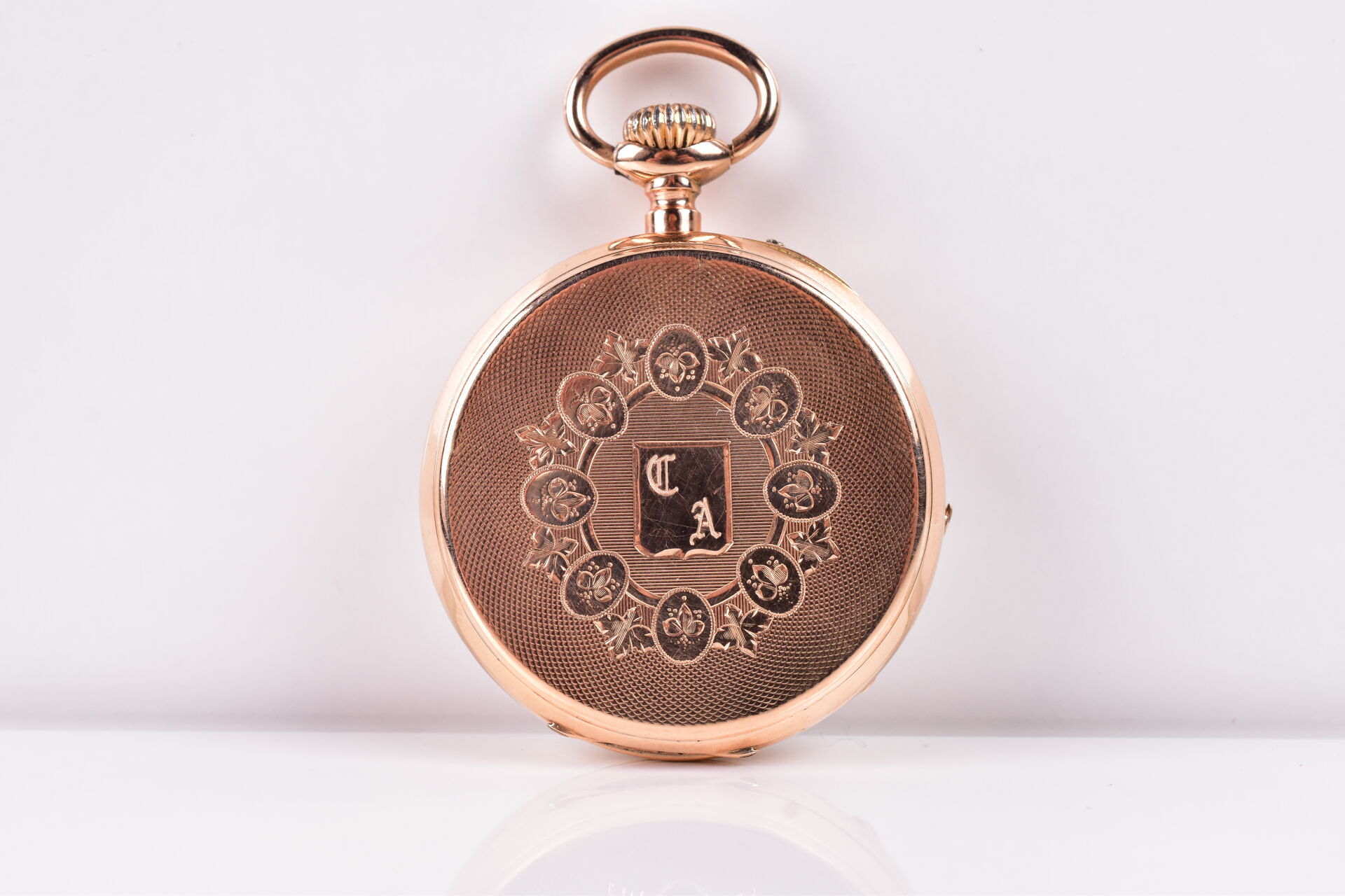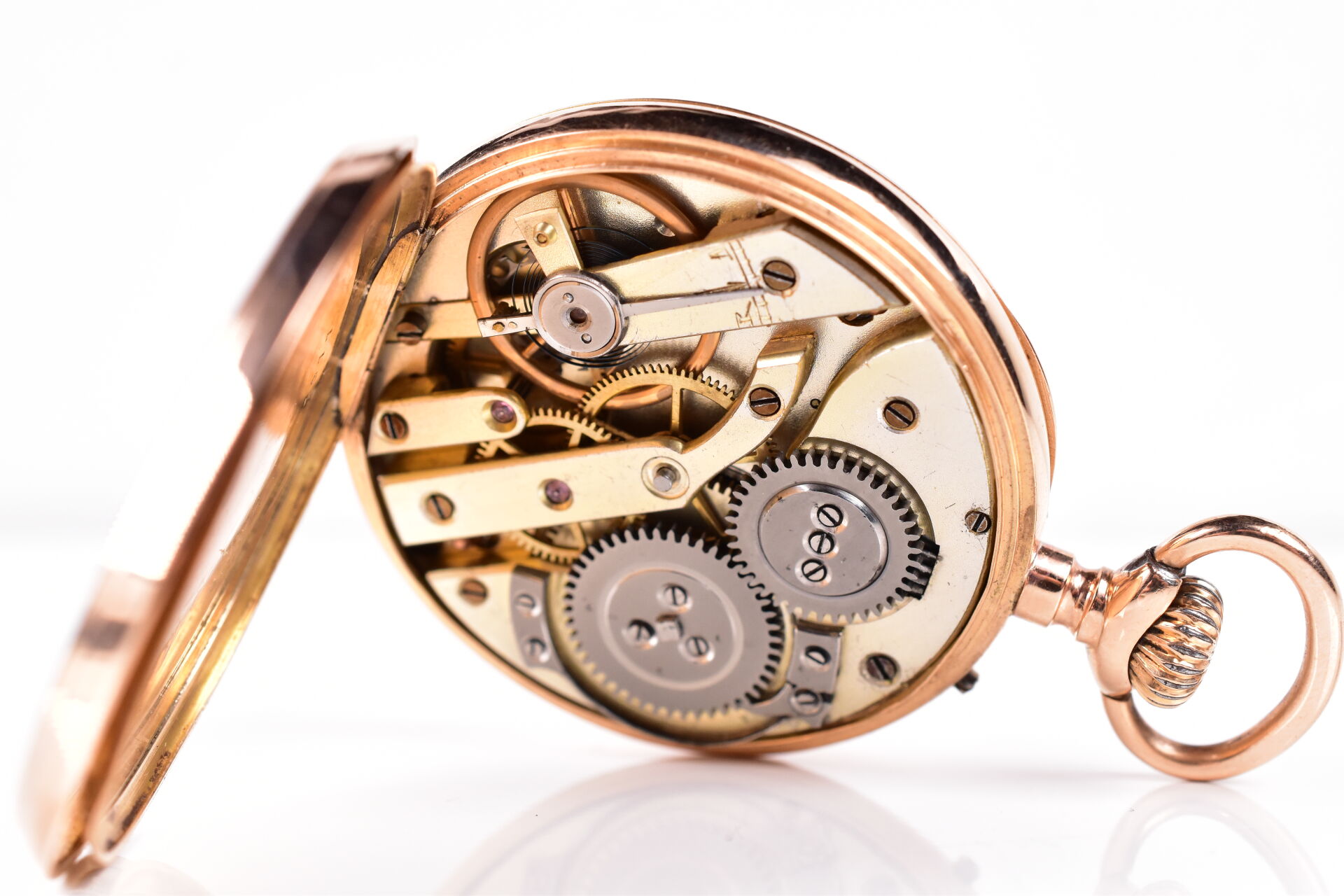 Montre de gousset en or jaune 18K 750/1000e, cache poussière or (chocs). Vers 1910. Poids brut. : 61,6 g.