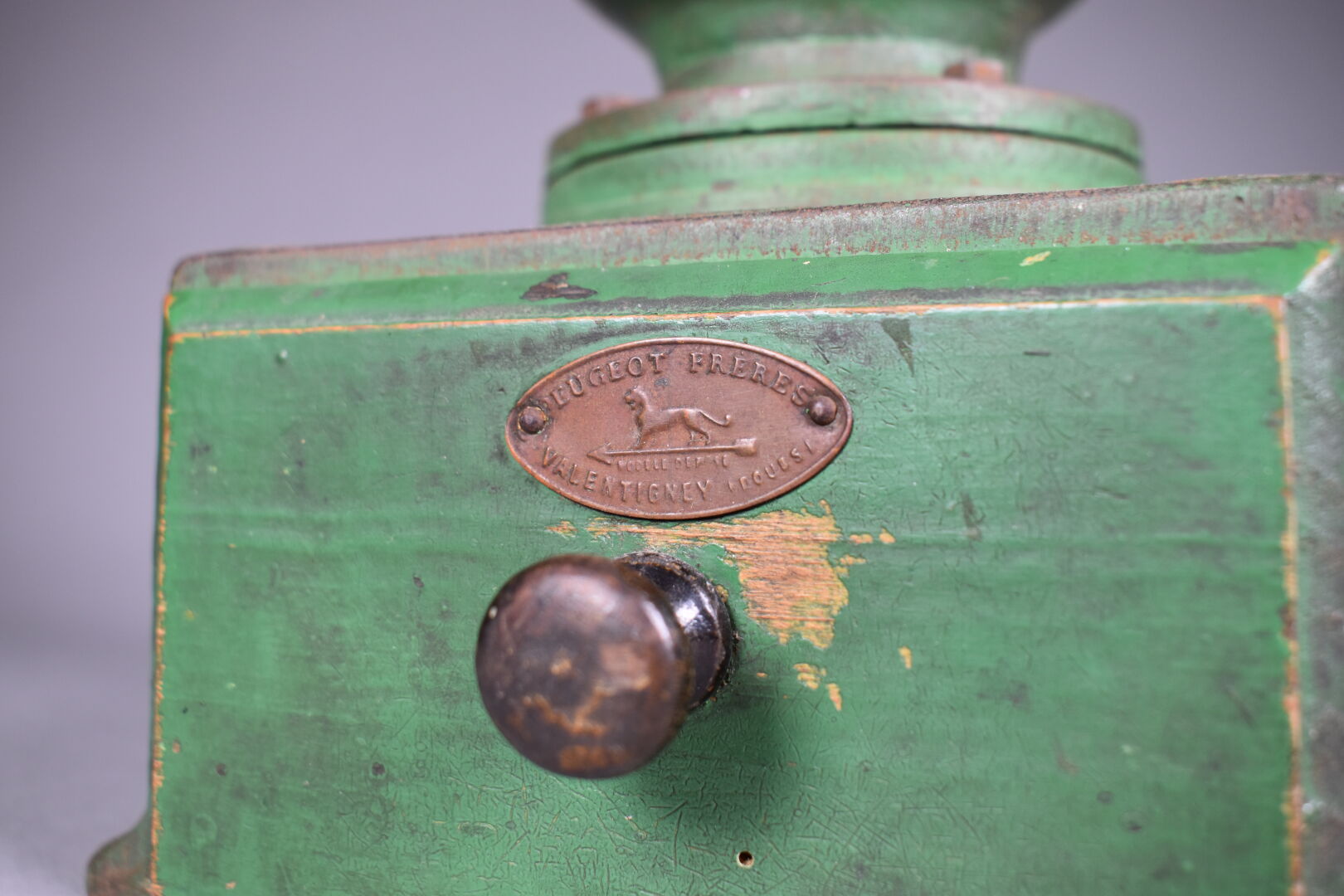 Moulin à café Peugeot breveté SGDG avec plaque PEUGEOT. Haut. : 31 cm.