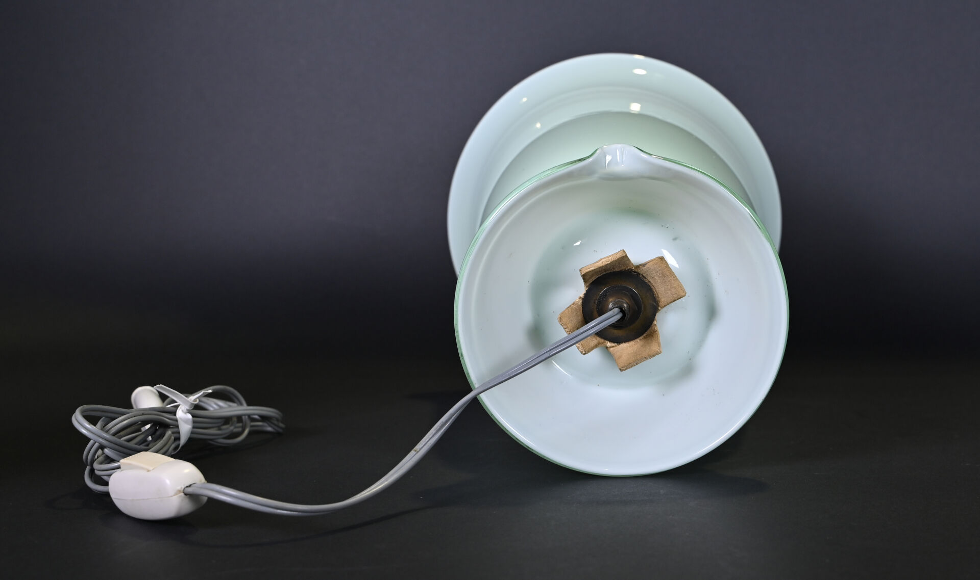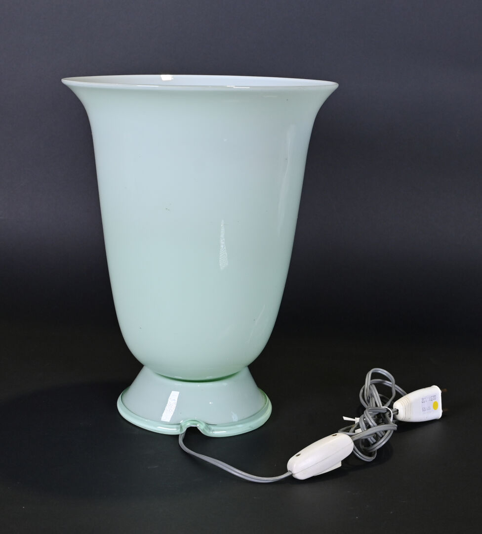 MURANO. Lampe à poser en verre légèrement céladon. Vers 1940/1960. Haut. : 31,5 cm.