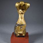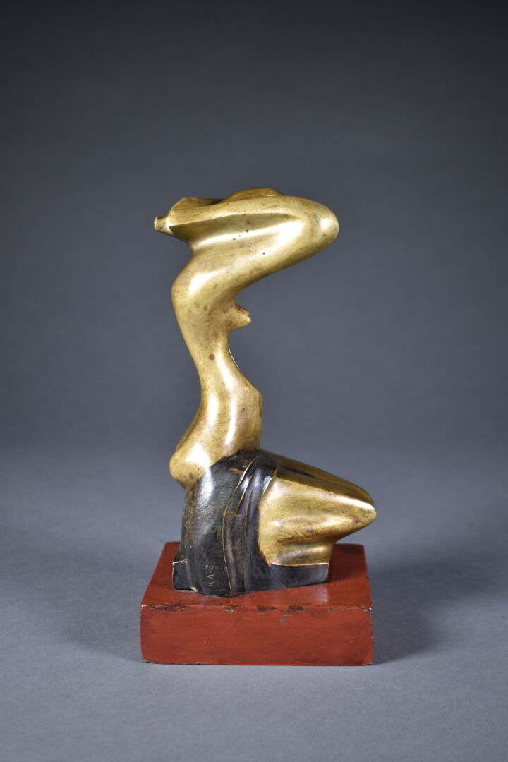 Nathaniel KAZ (1917-2010). Femme à genoux. Bronze partiellement patiné brun. Signé au dos. Haut. : 25,5 cm.