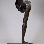 NICK (XXe siècle). Bronze à patine brun figurant un buste et un bras féminin. Signé. 58 cm. Socle de marbre noir.