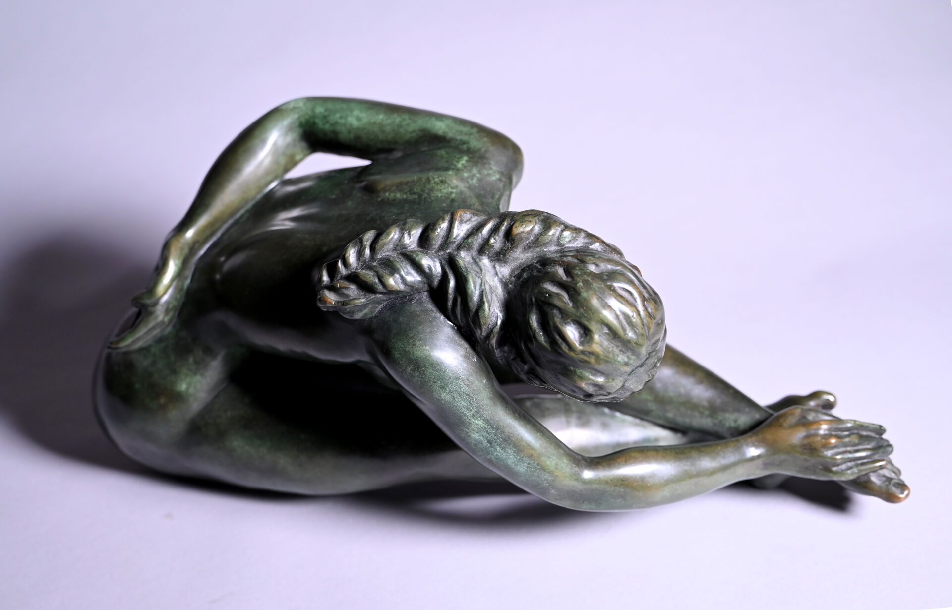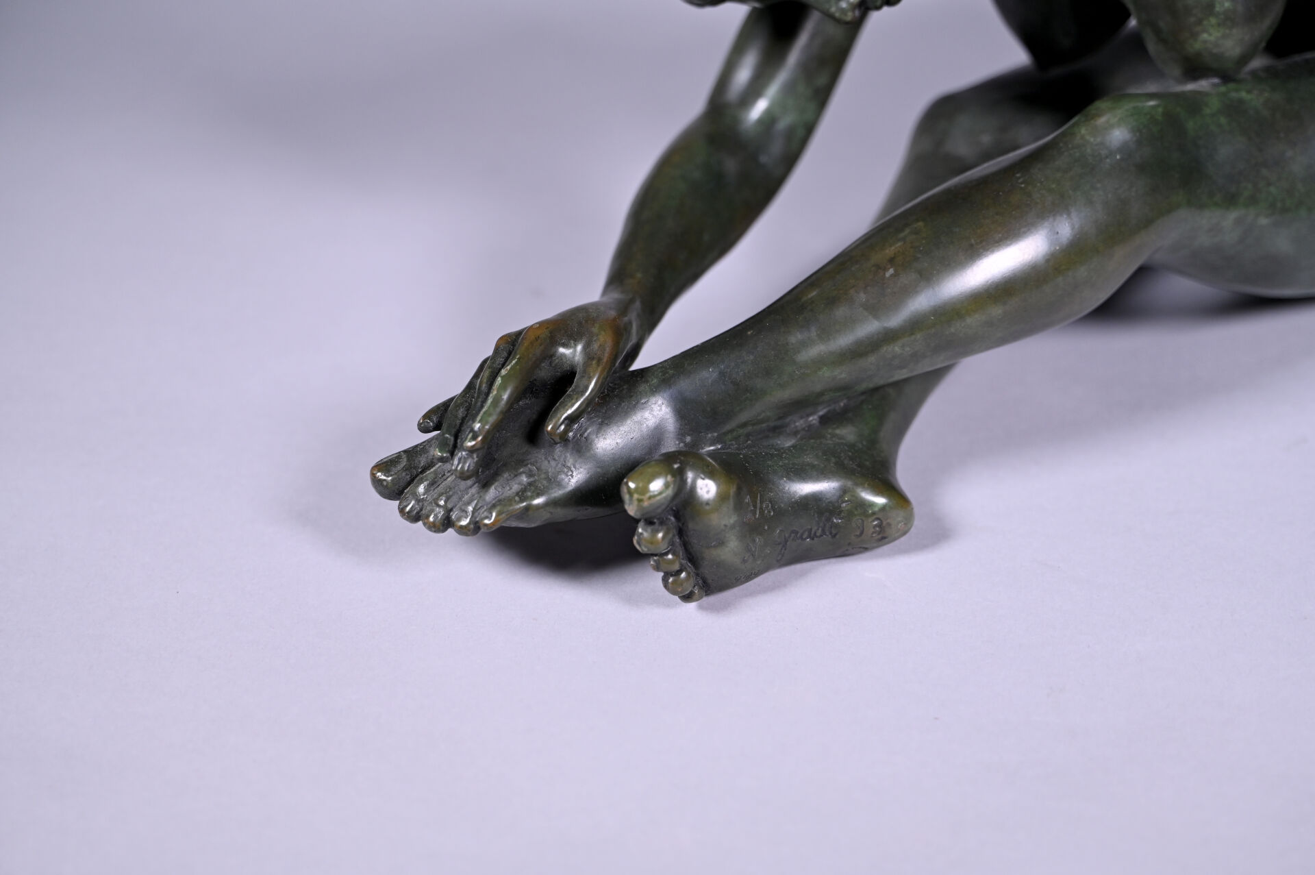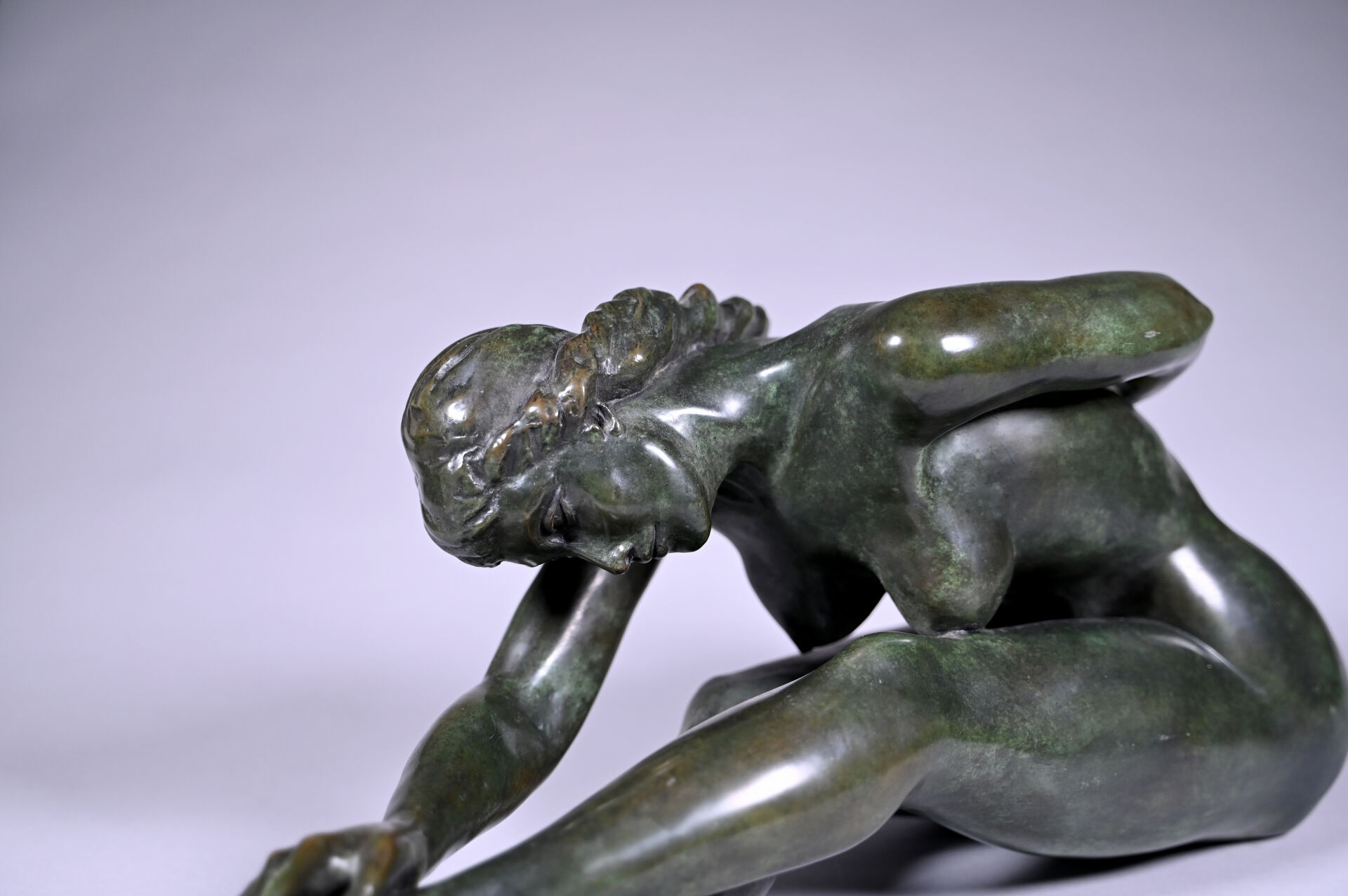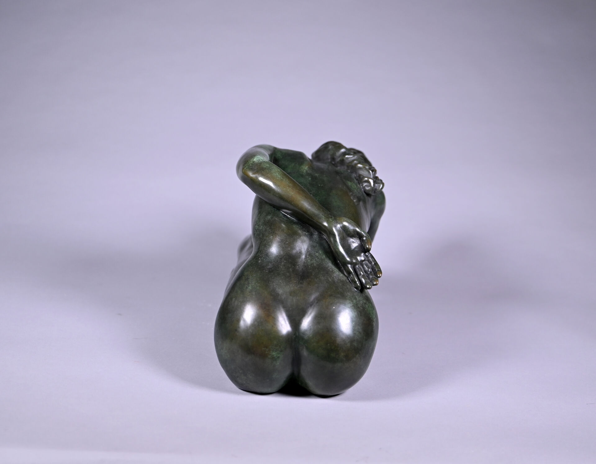 Nicole GRADT (XXe siècle). Nu féminin assis les mains dans le dos. Bronze patiné vert signé et numéroté 1/8 sous le pied, fonte à la cire perdue. Haut. : 26 cm.
