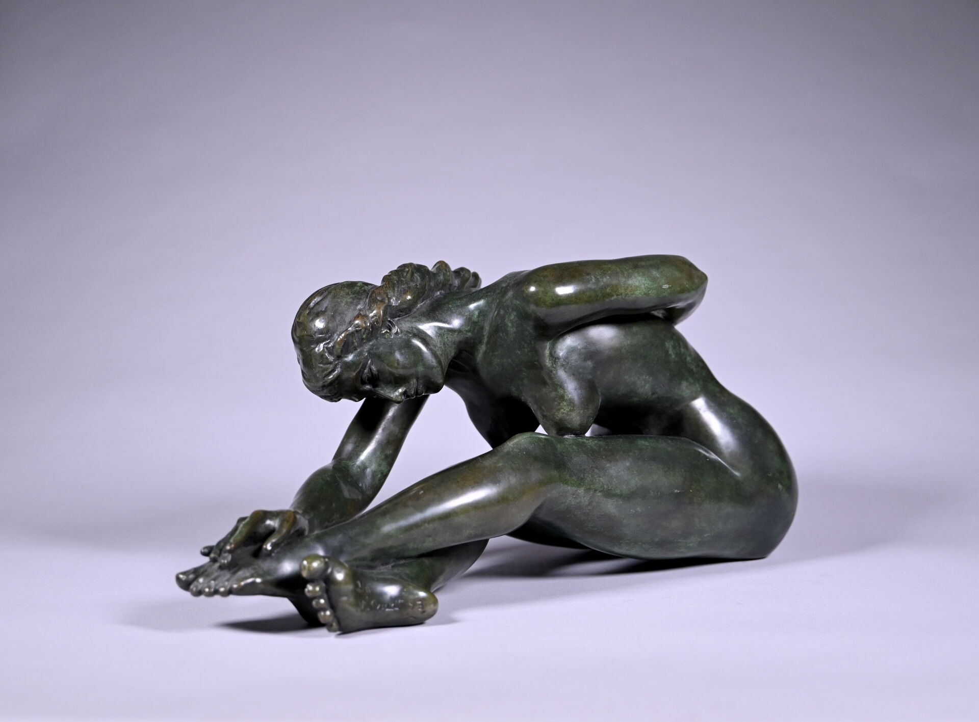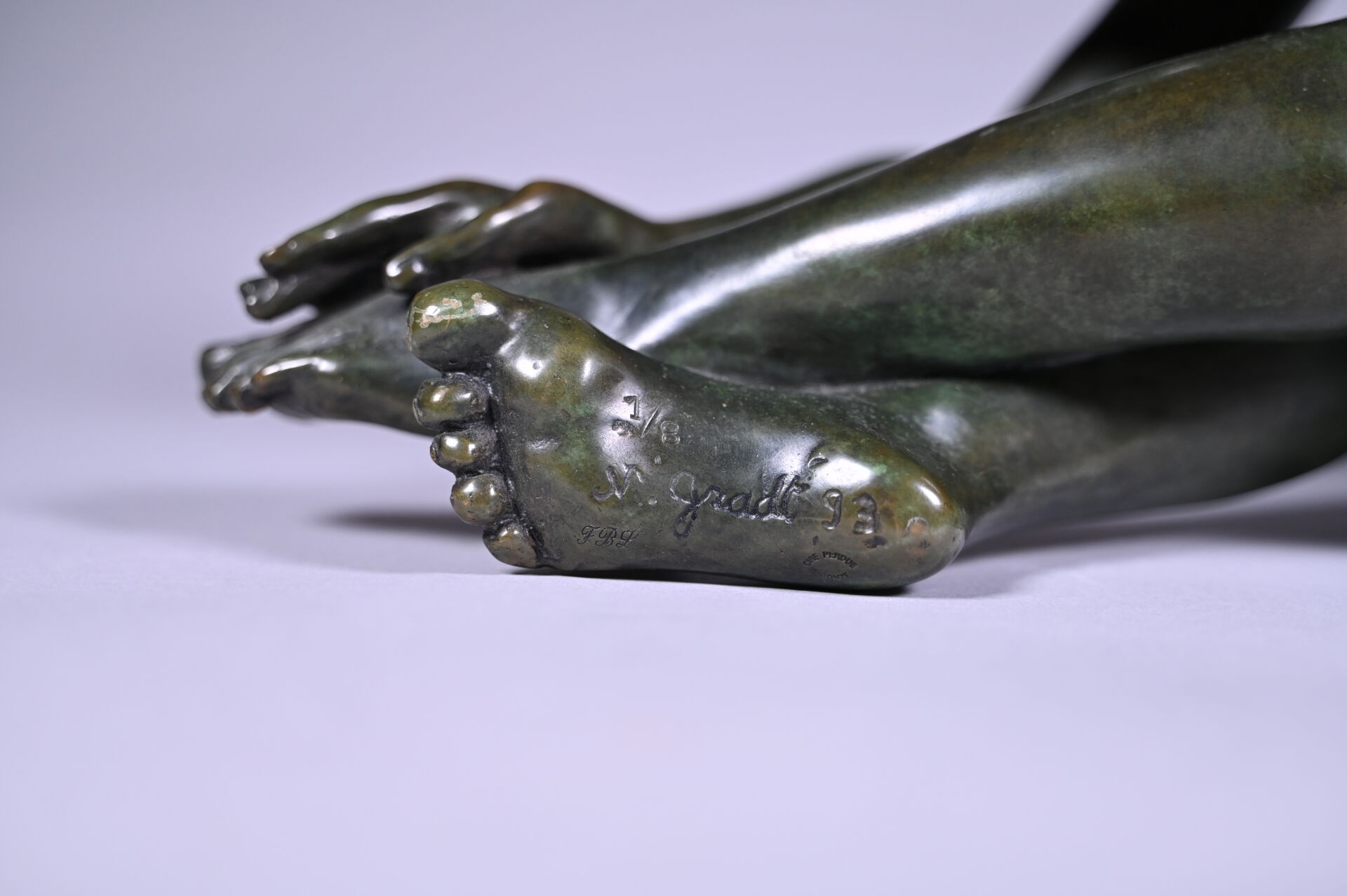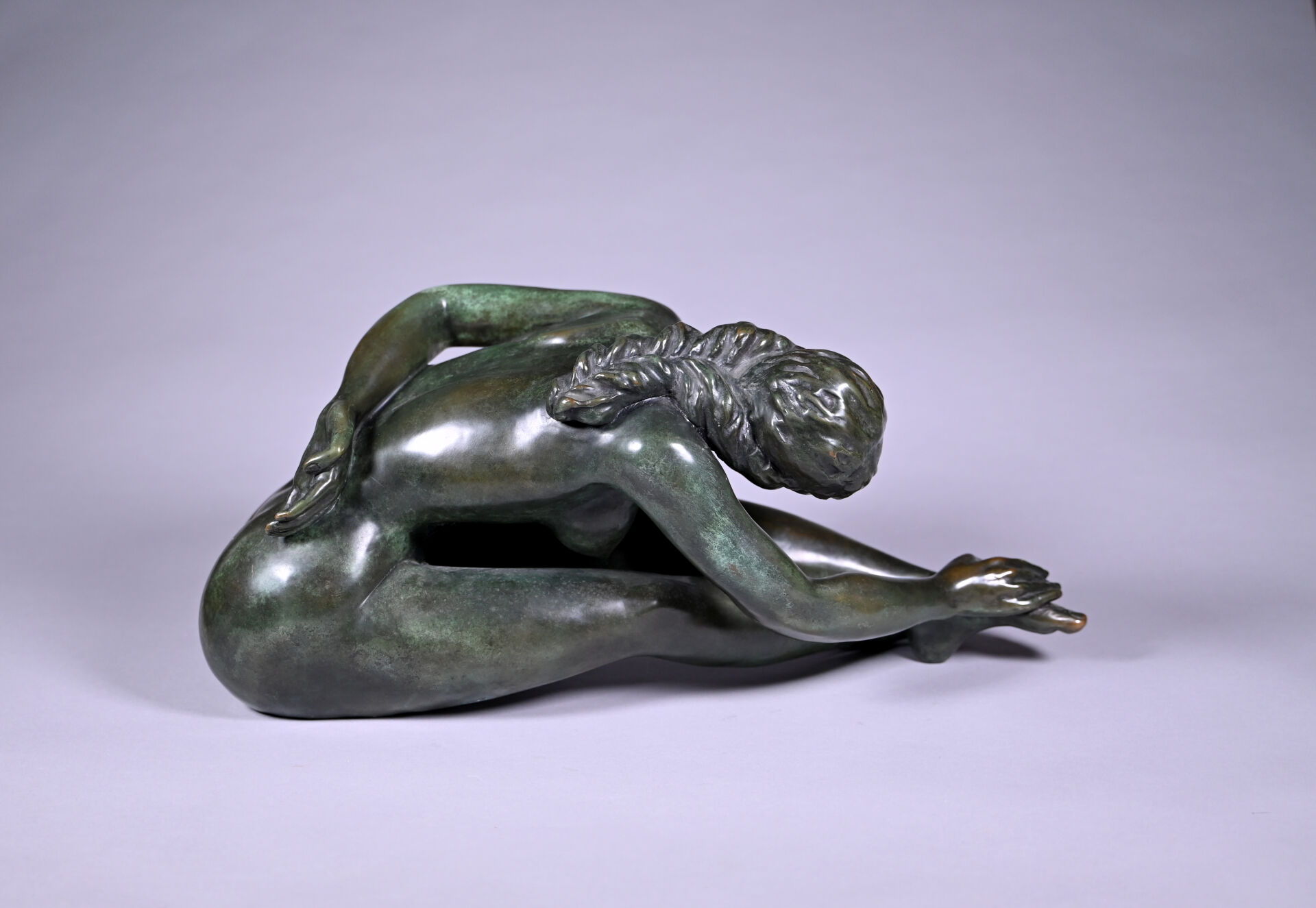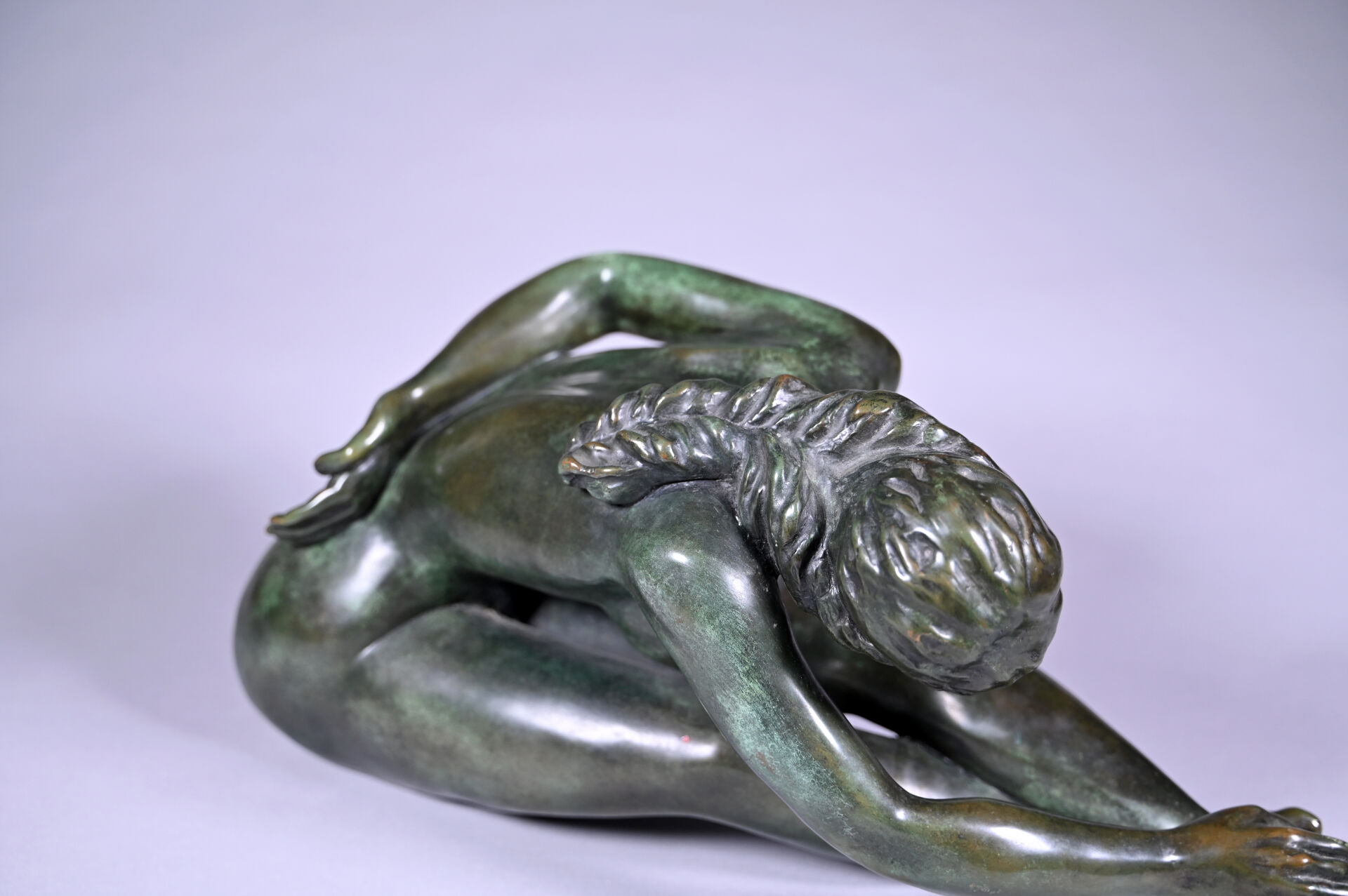 Nicole GRADT (XXe siècle). Nu féminin assis les mains dans le dos. Bronze patiné vert signé et numéroté 1/8 sous le pied, fonte à la cire perdue. Haut. : 26 cm.